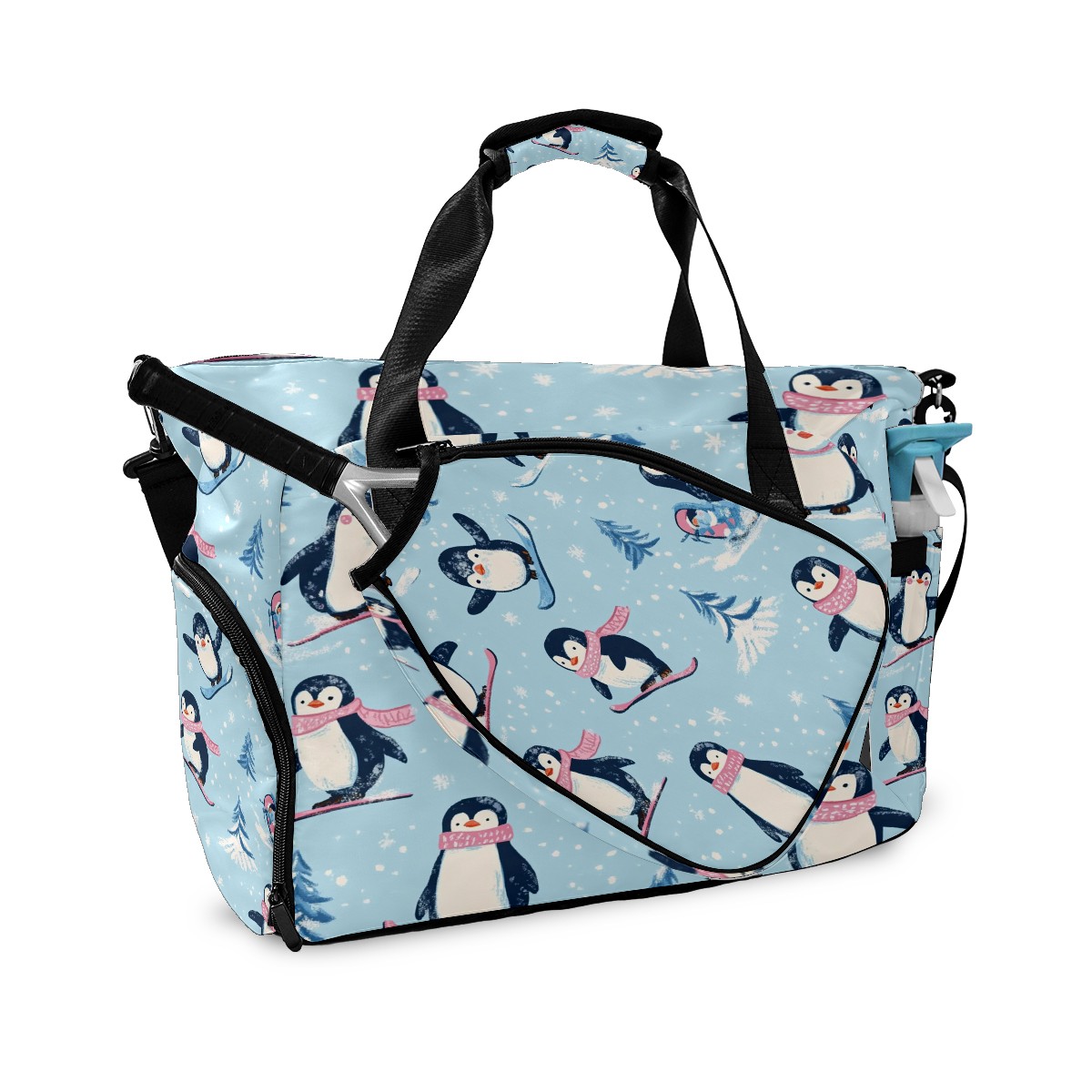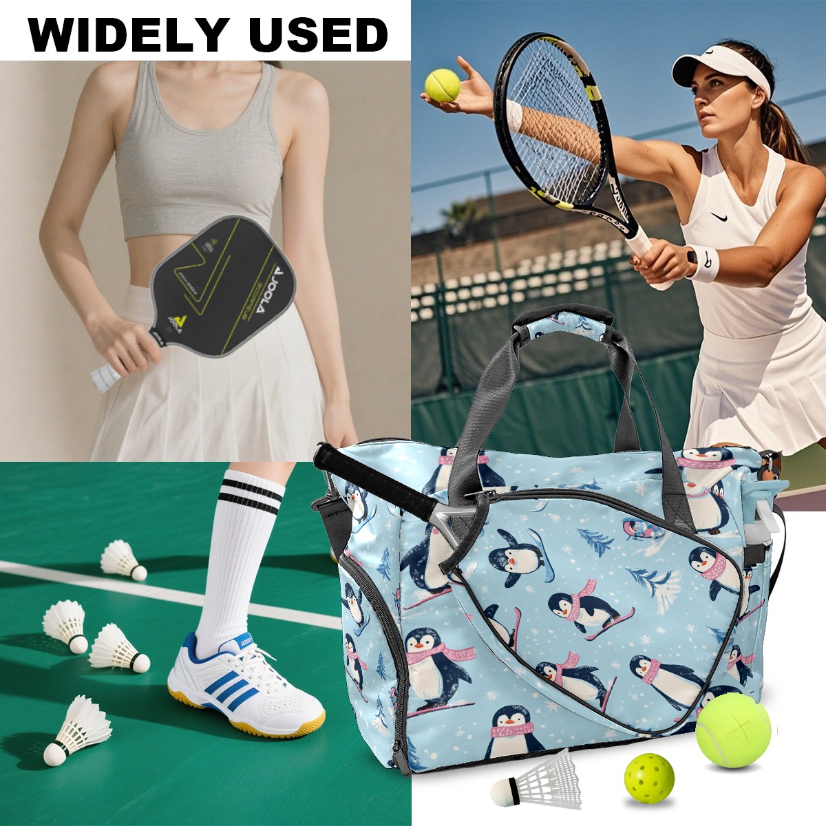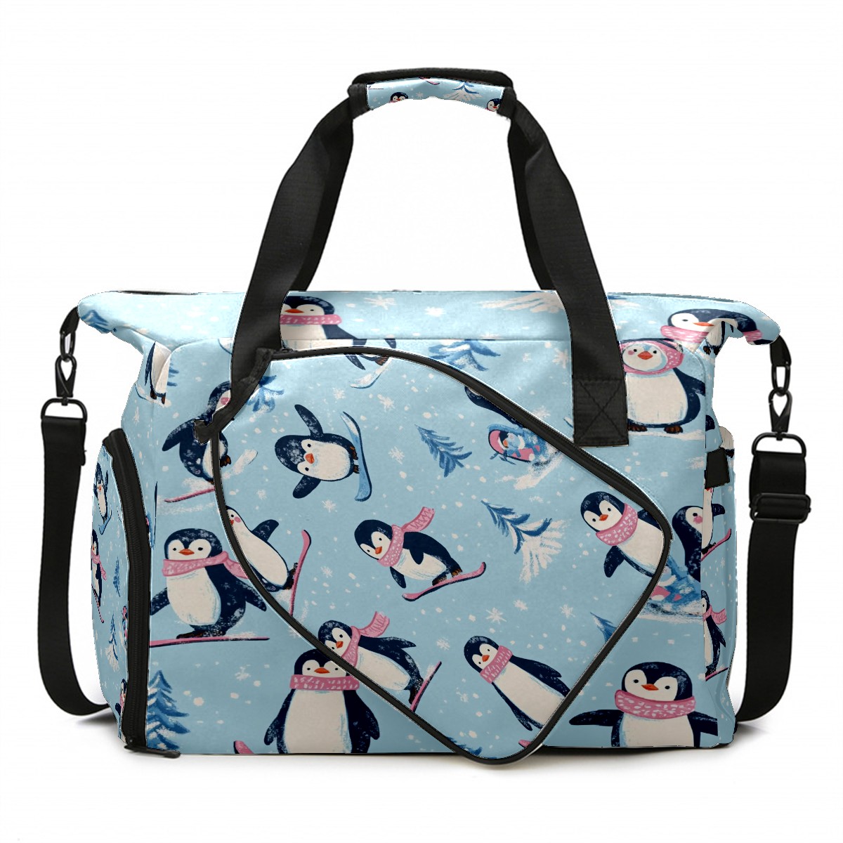 Pickleball Tote Bag Carryall for Paddles Balls and Accessories, Portable Lightweight Gear Bag for Players(Playful Penguins)