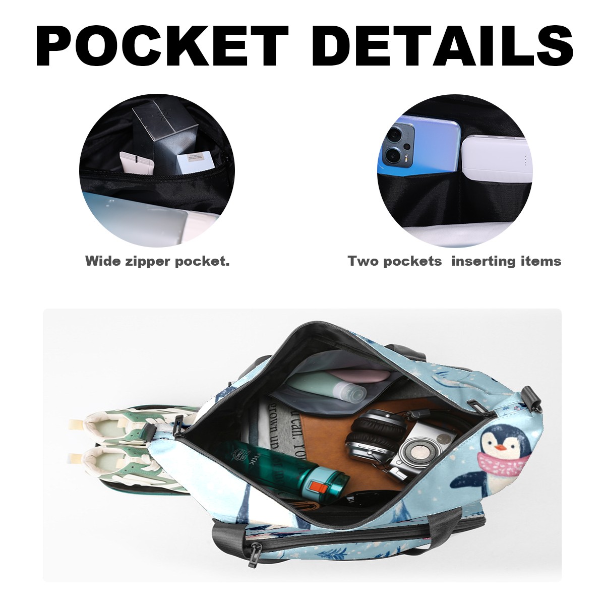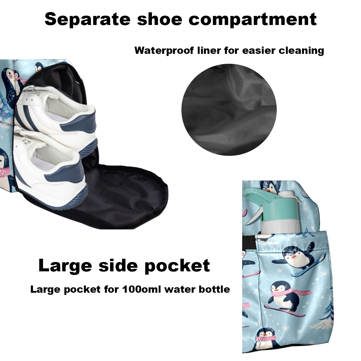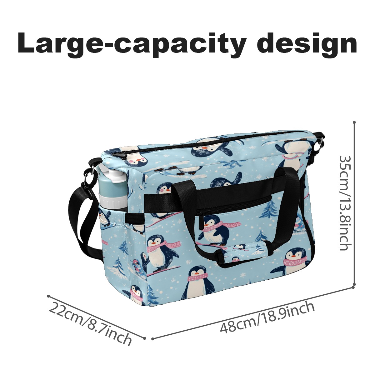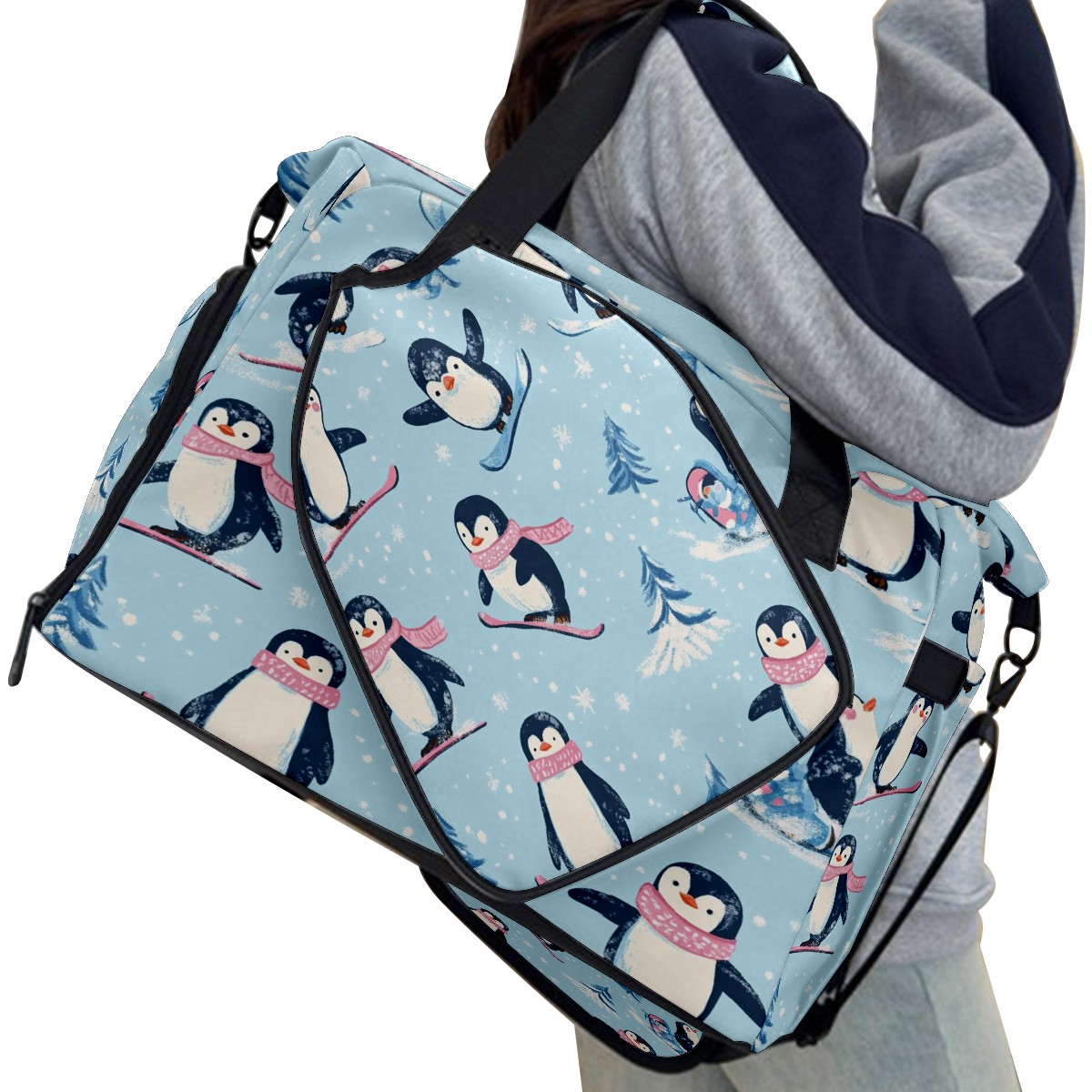Pickleball Tote Bag Carryall for Paddles Balls and Accessories, Portable Lightweight Gear Bag for Players(Playful Penguins)