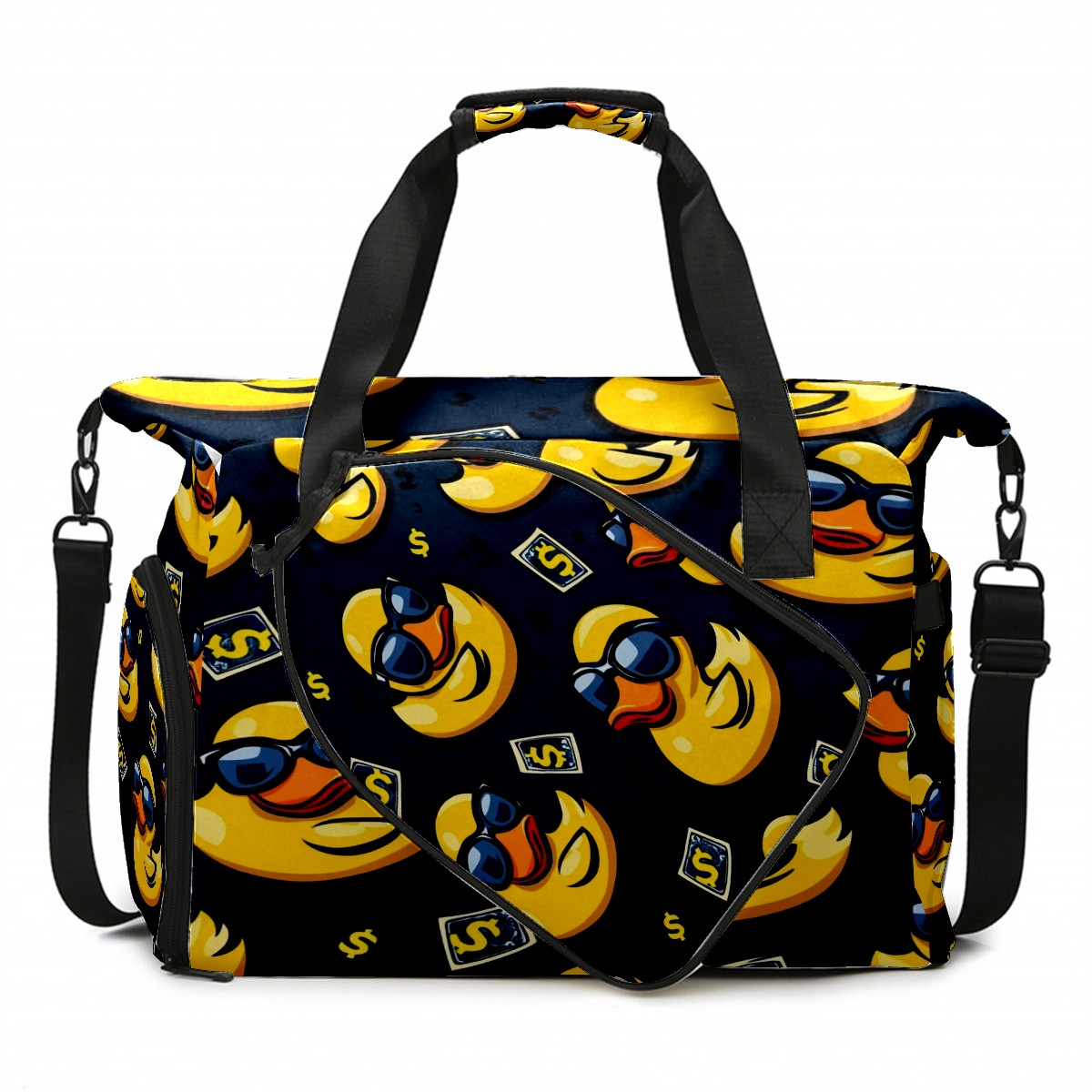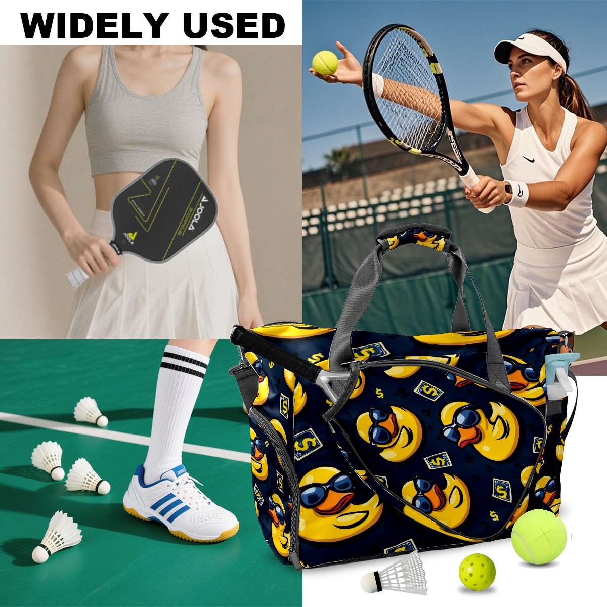 Pickleball Tote Bag Carryall for Paddles Balls and Accessories, Portable Lightweight Gear Bag for Players(Ducks Wearing Sunglasses)