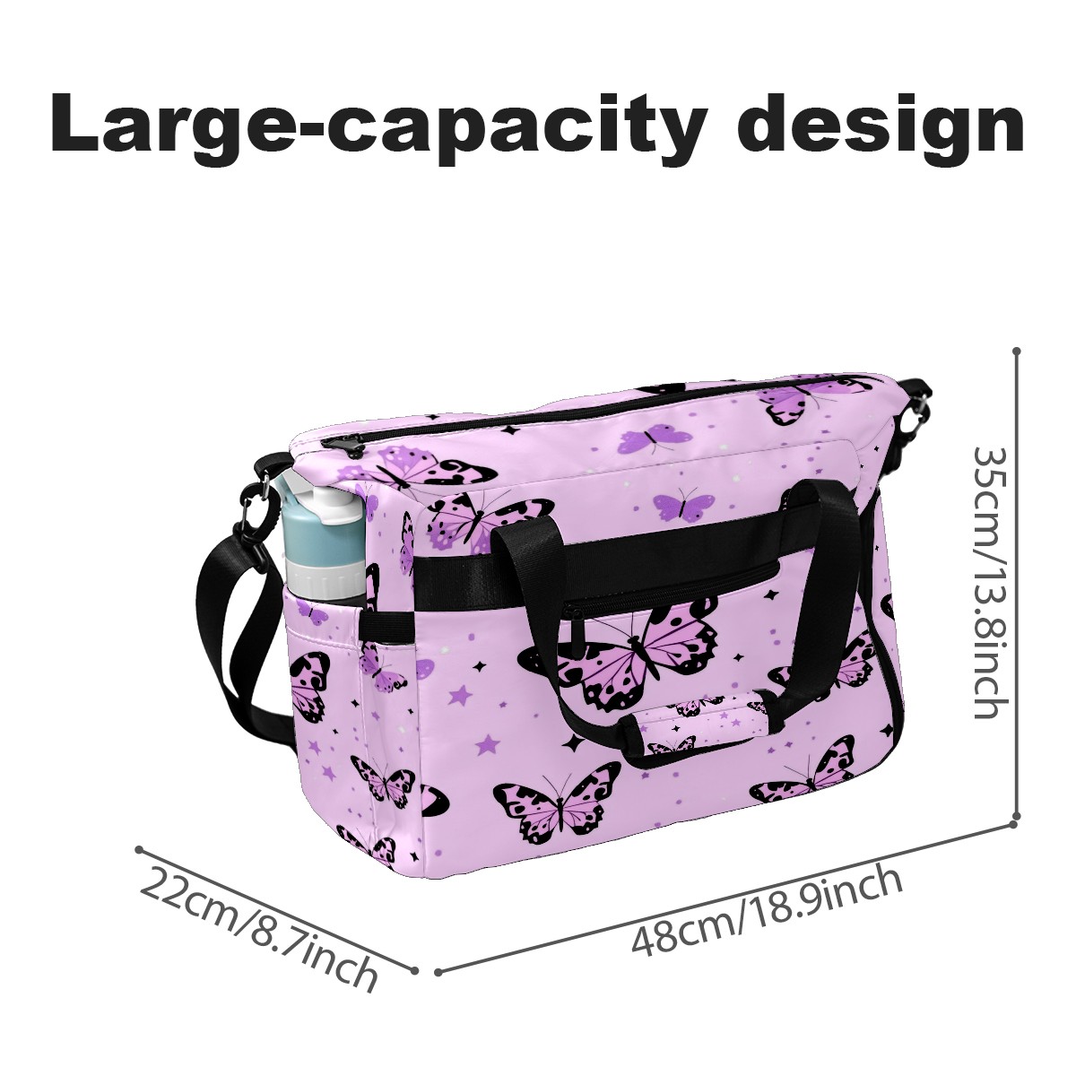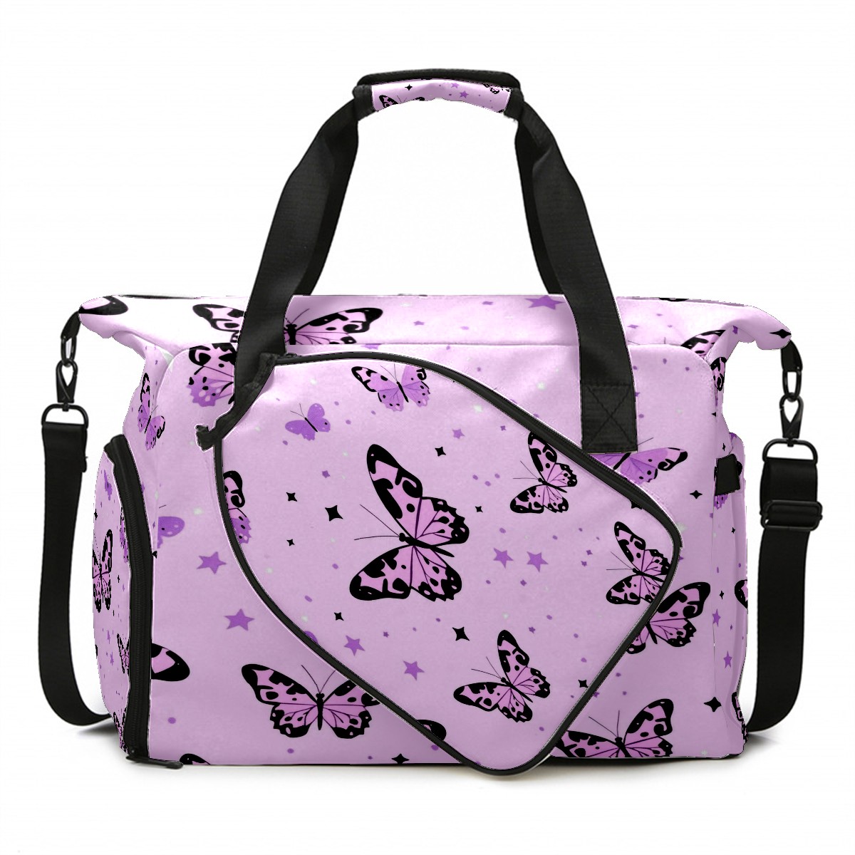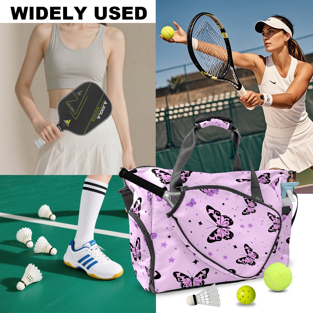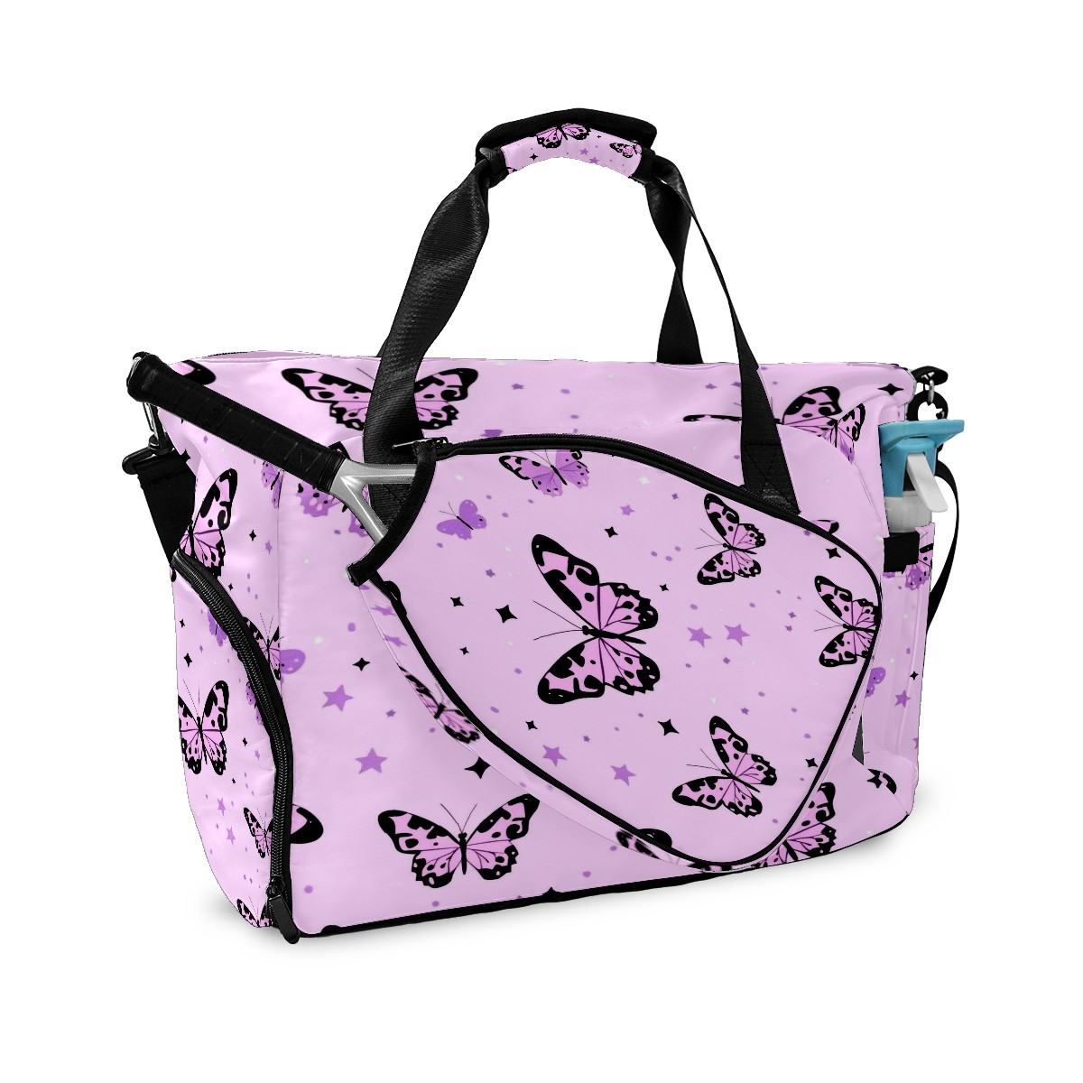 Pickleball Tote Bag Carryall for Paddles Balls and Accessories, Portable Lightweight Gear Bag for Players(Pink Leopard-print Butterflies)