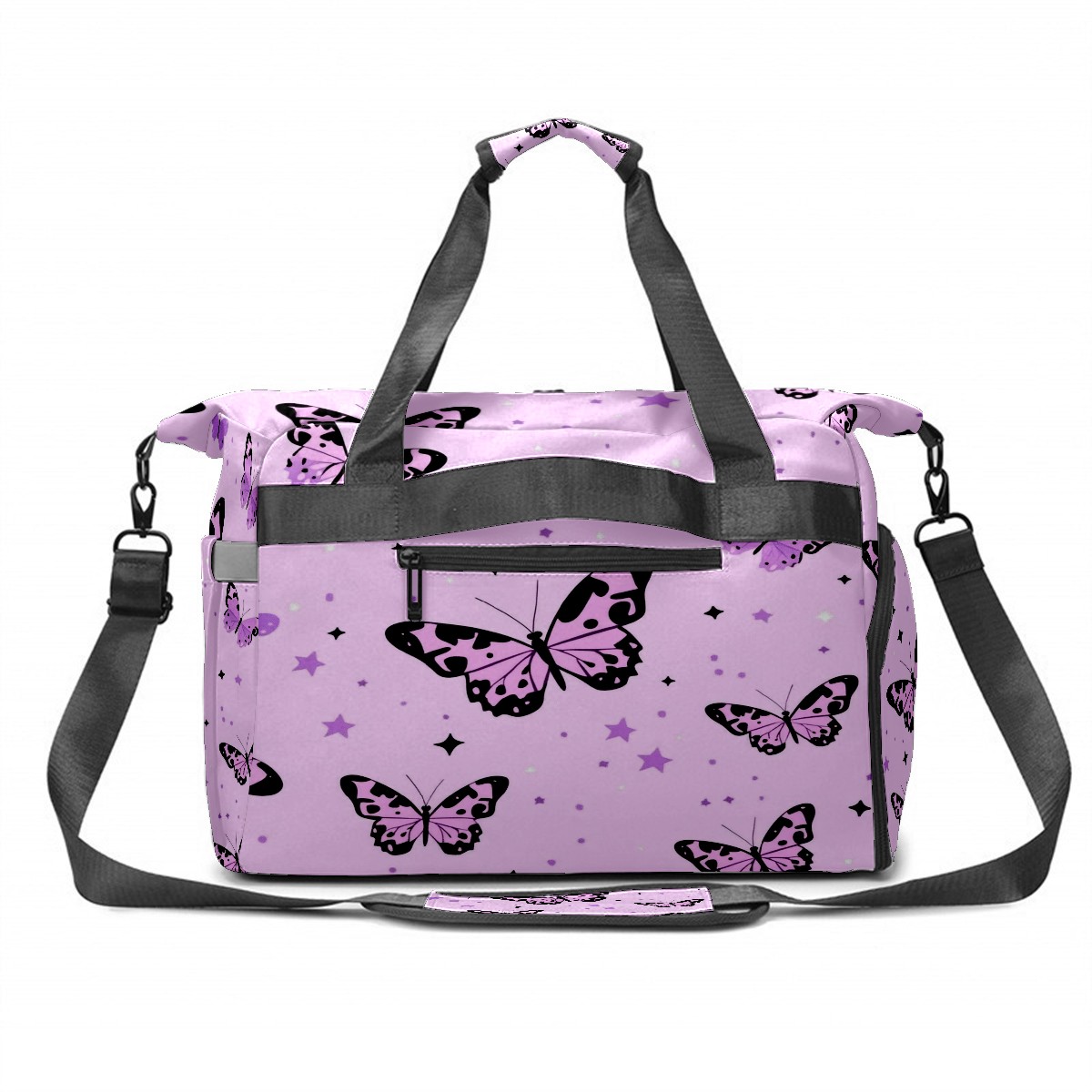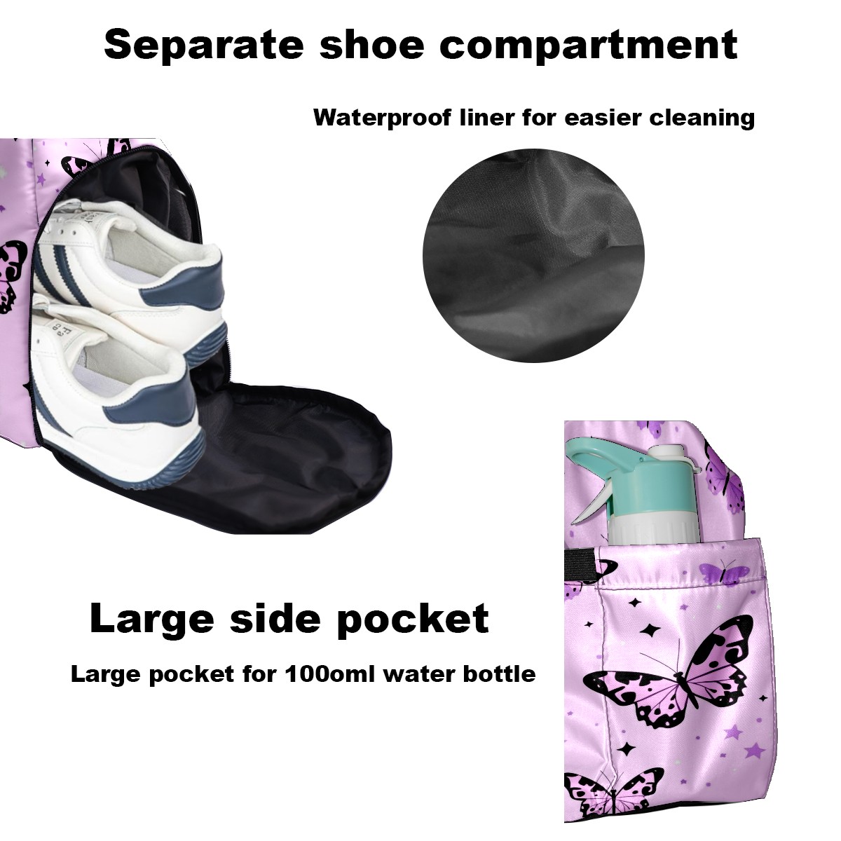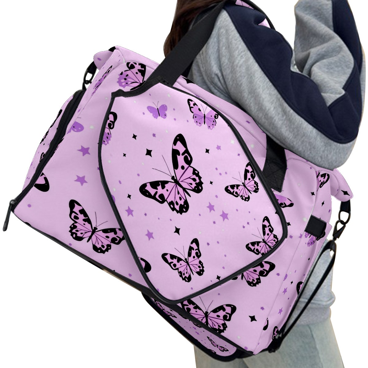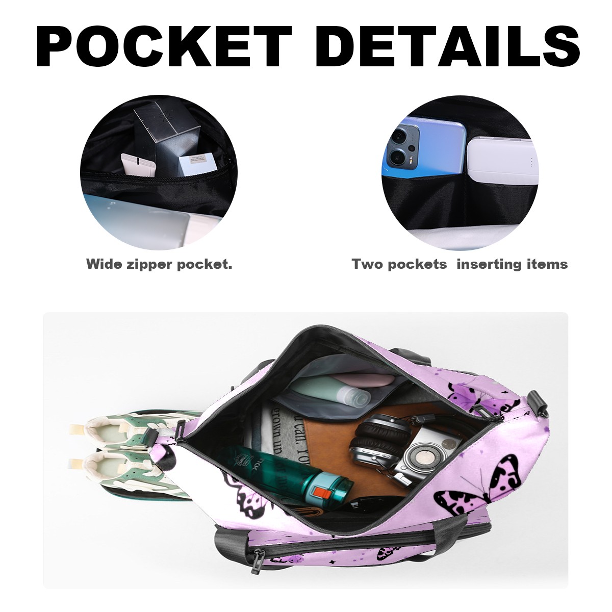 Pickleball Tote Bag Carryall for Paddles Balls and Accessories, Portable Lightweight Gear Bag for Players(Pink Leopard-print Butterflies)