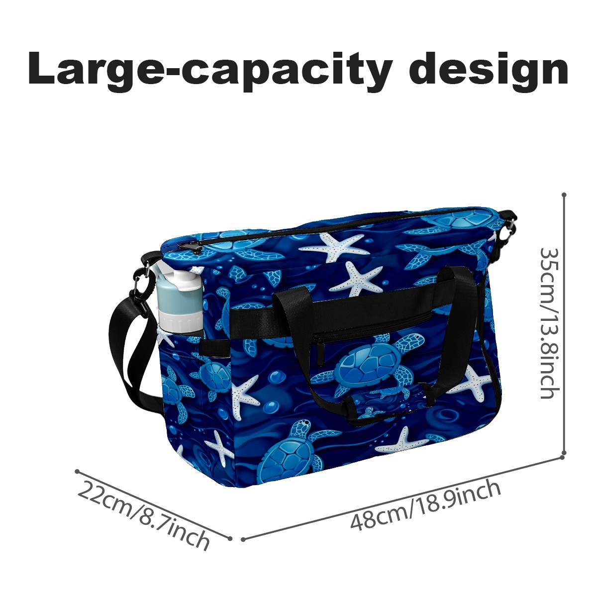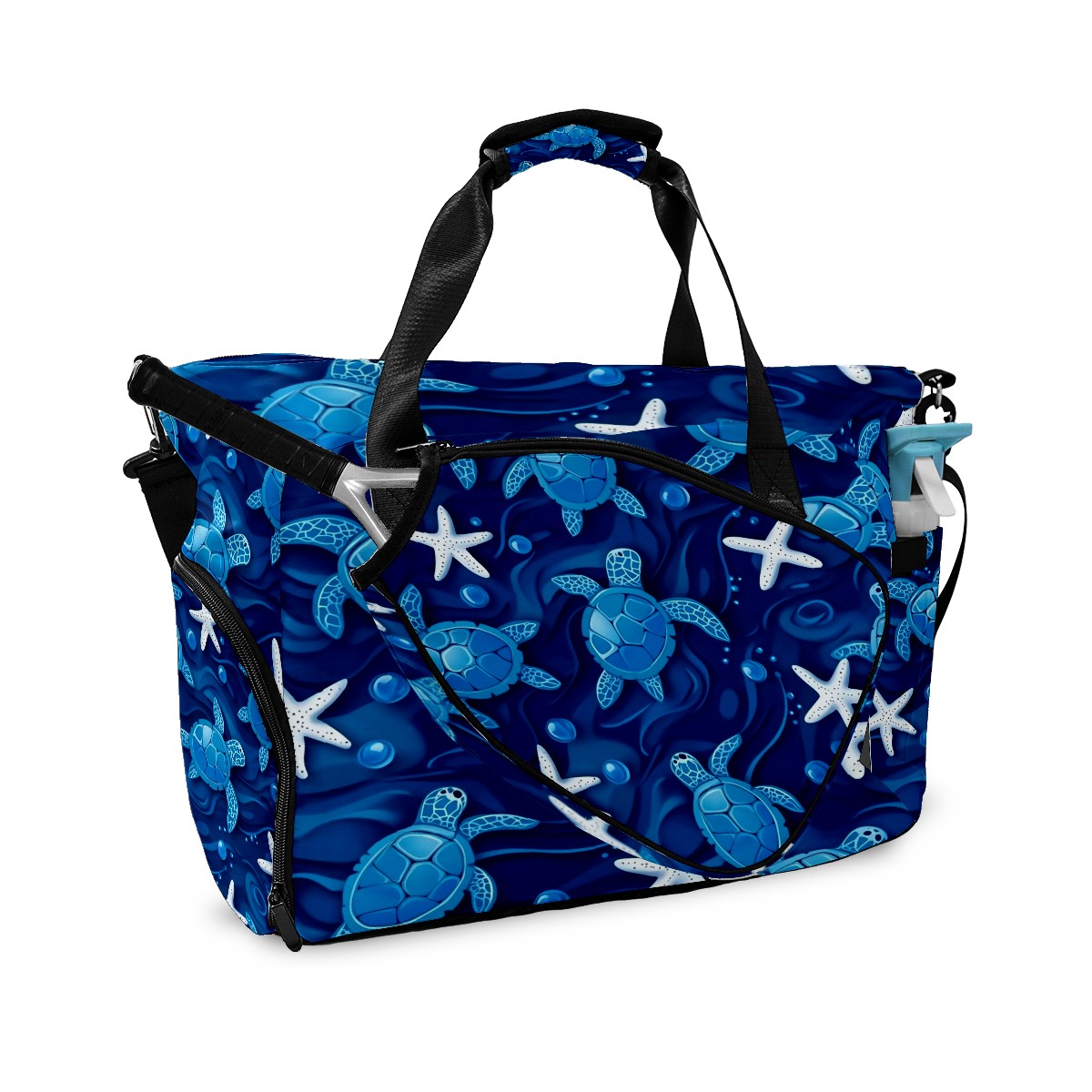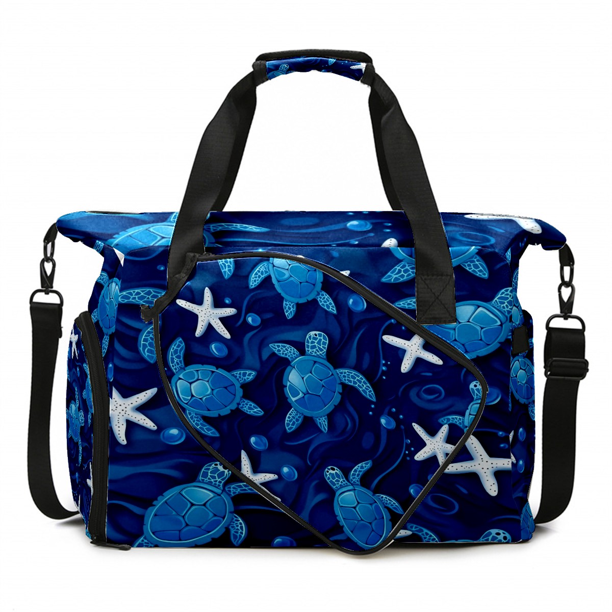 Pickleball Tote Bag Carryall for Paddles Balls and Accessories, Portable Lightweight Gear Bag for Players(Blue Sea Turtles And White Starfish)
