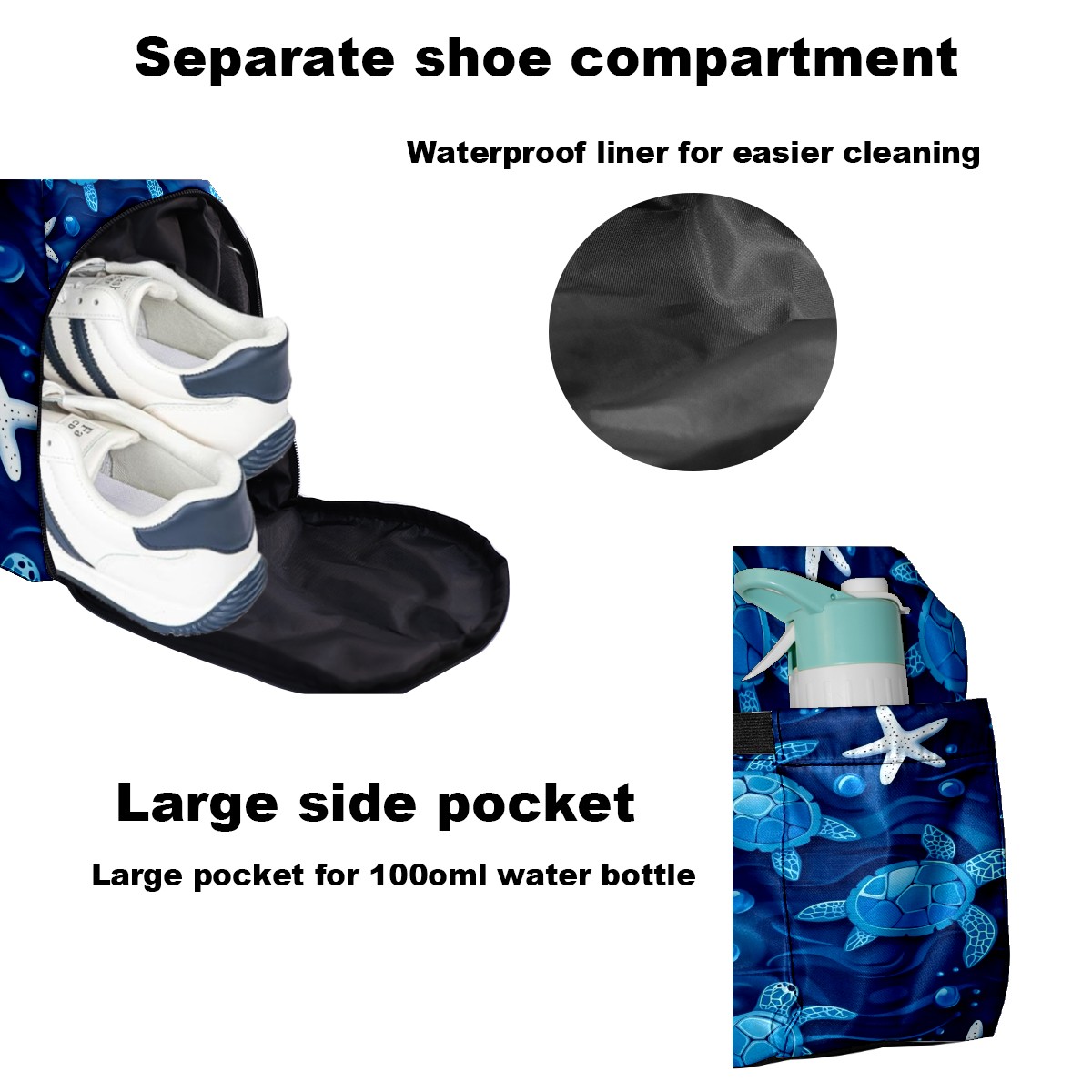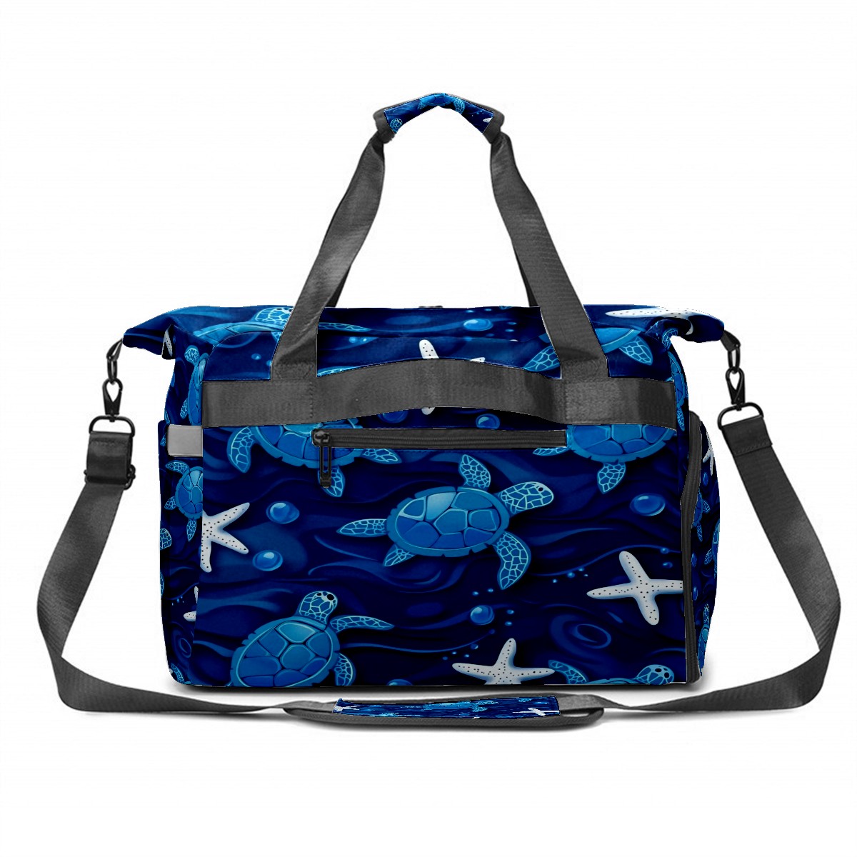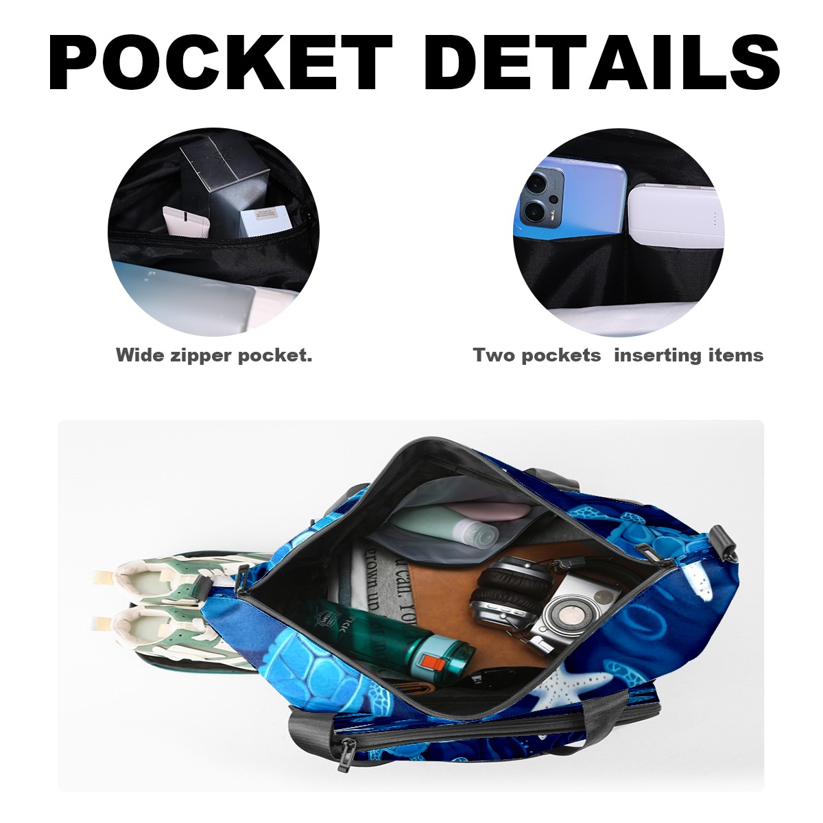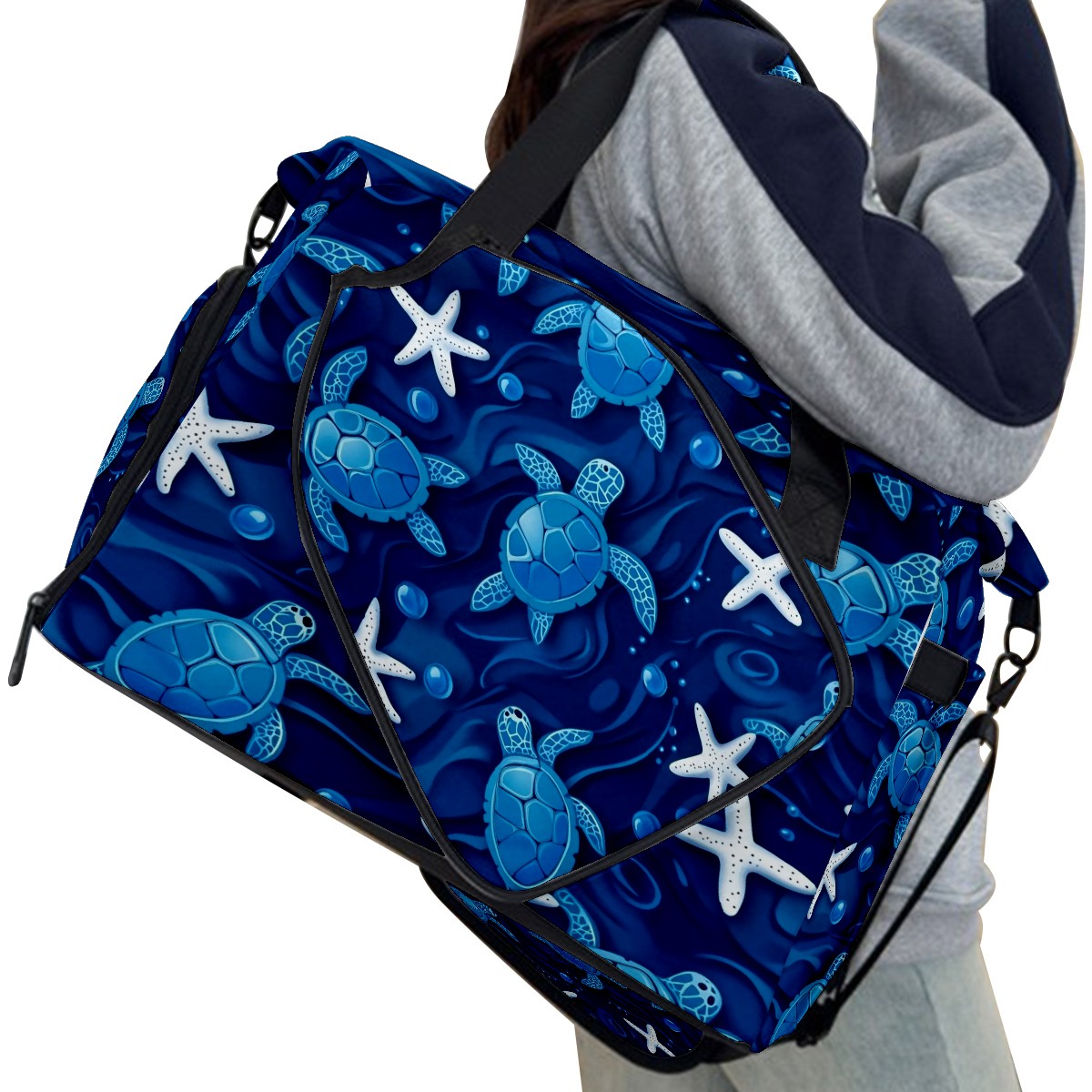 Pickleball Tote Bag Carryall for Paddles Balls and Accessories, Portable Lightweight Gear Bag for Players(Blue Sea Turtles And White Starfish)