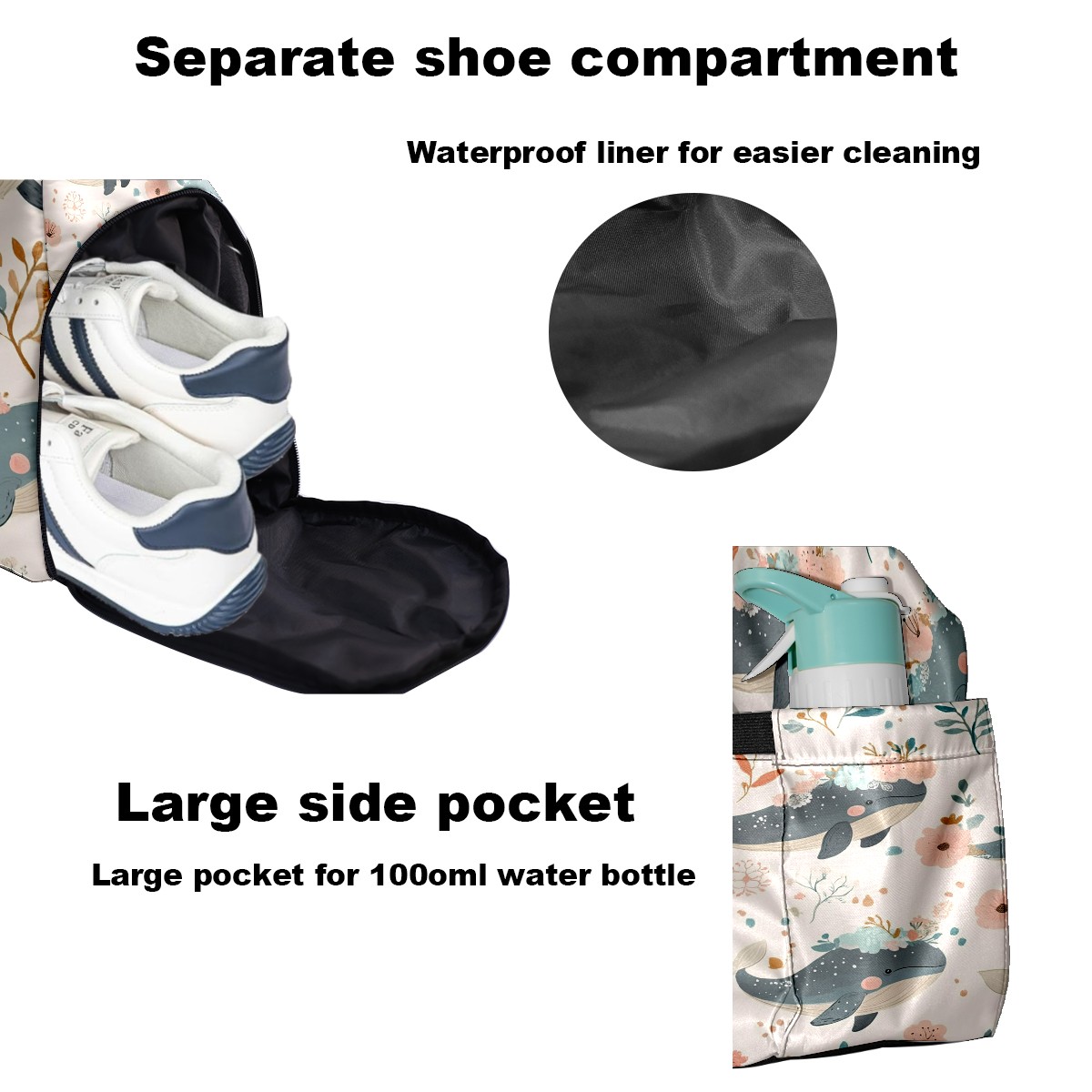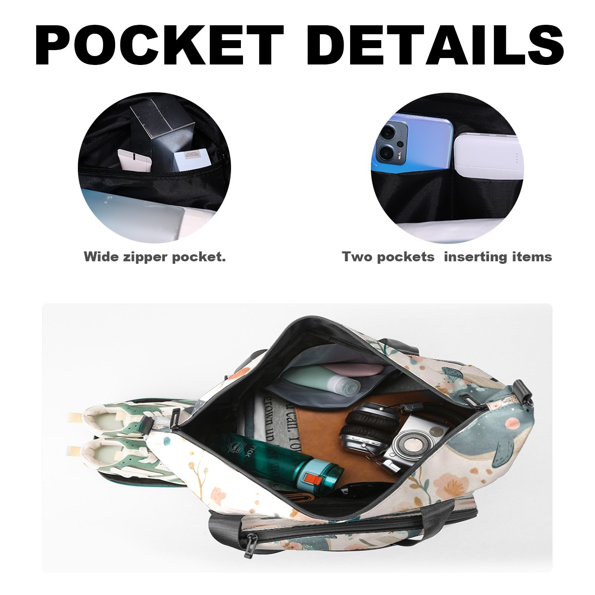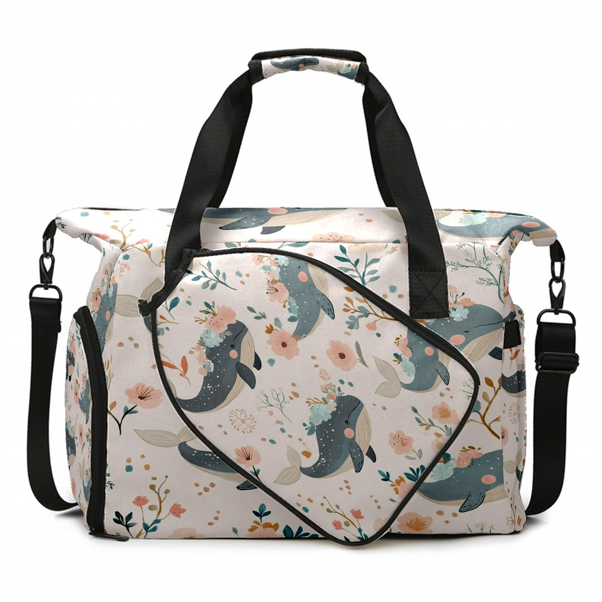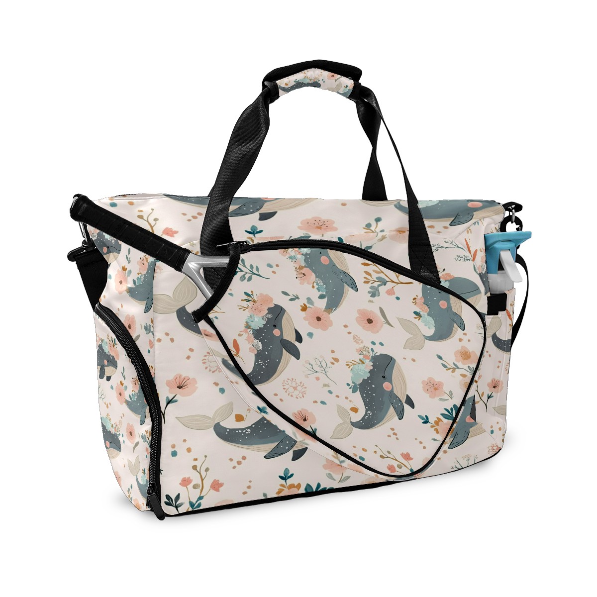 Pickleball Tote Bag Carryall for Paddles Balls and Accessories, Portable Lightweight Gear Bag for Players(Adorable Baby Whales)