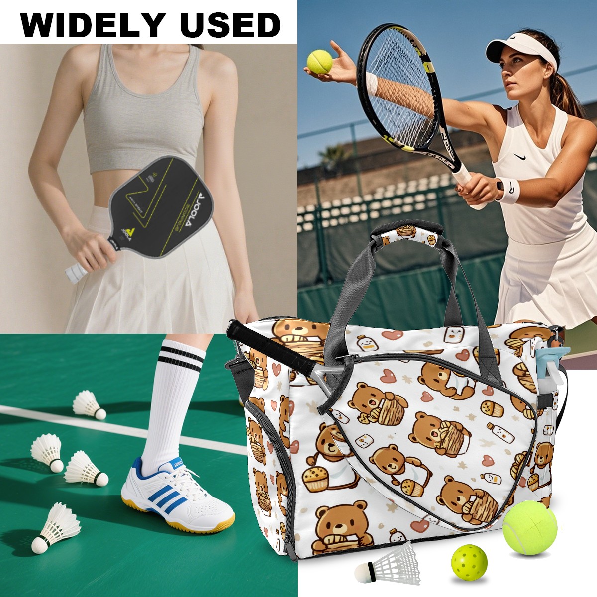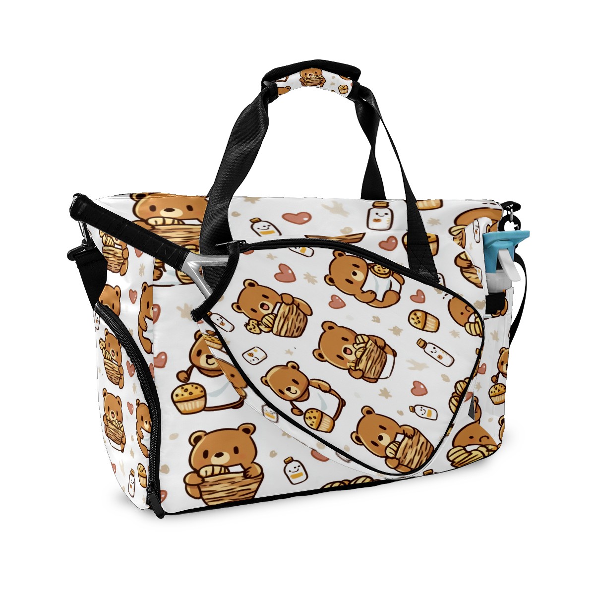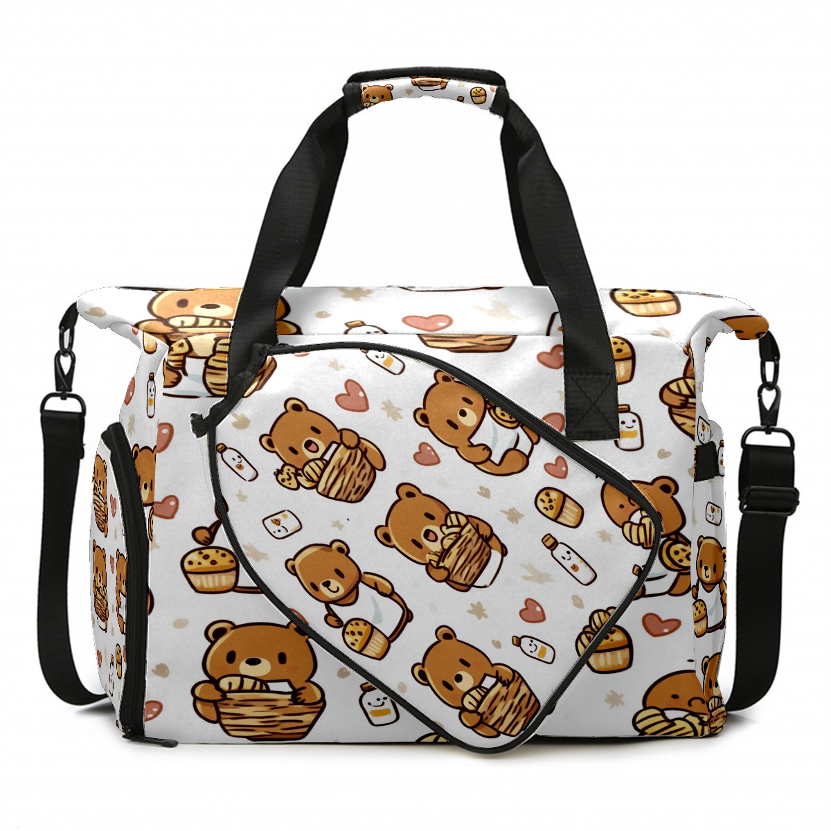 Pickleball Tote Bag Carryall for Paddles Balls and Accessories, Portable Lightweight Gear Bag for Players(Bear And Honey Pot)