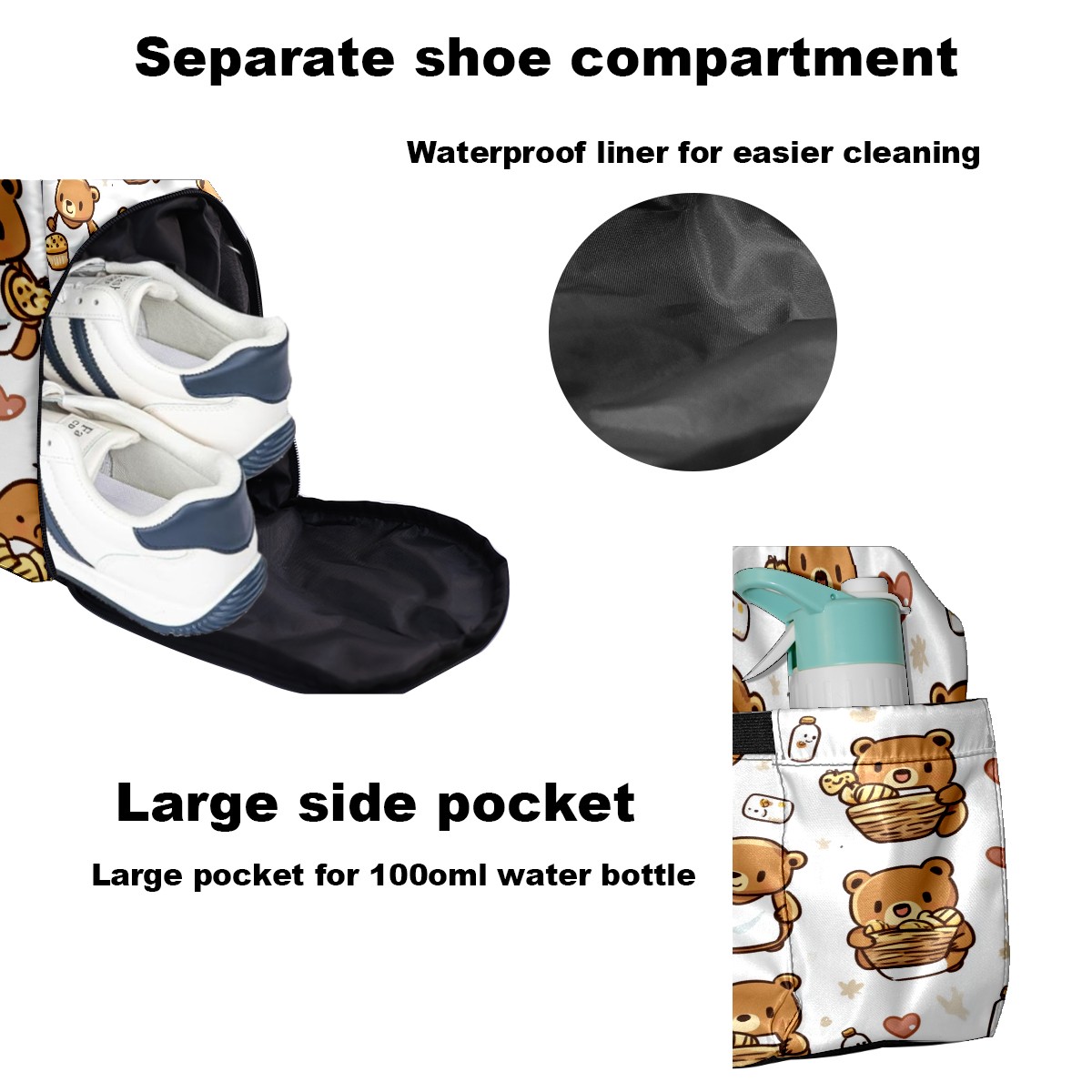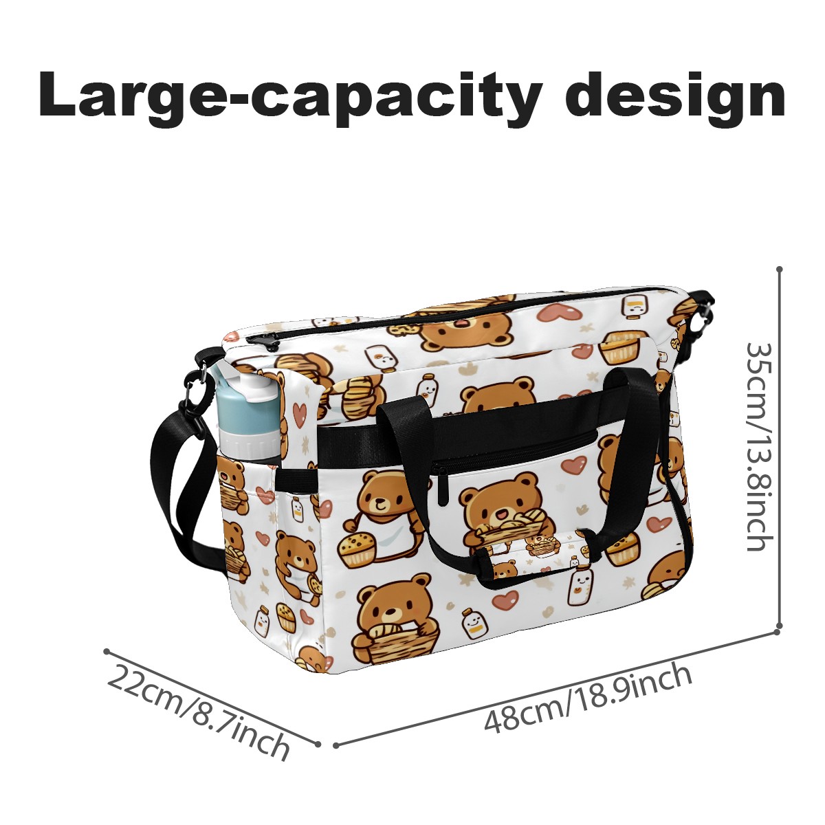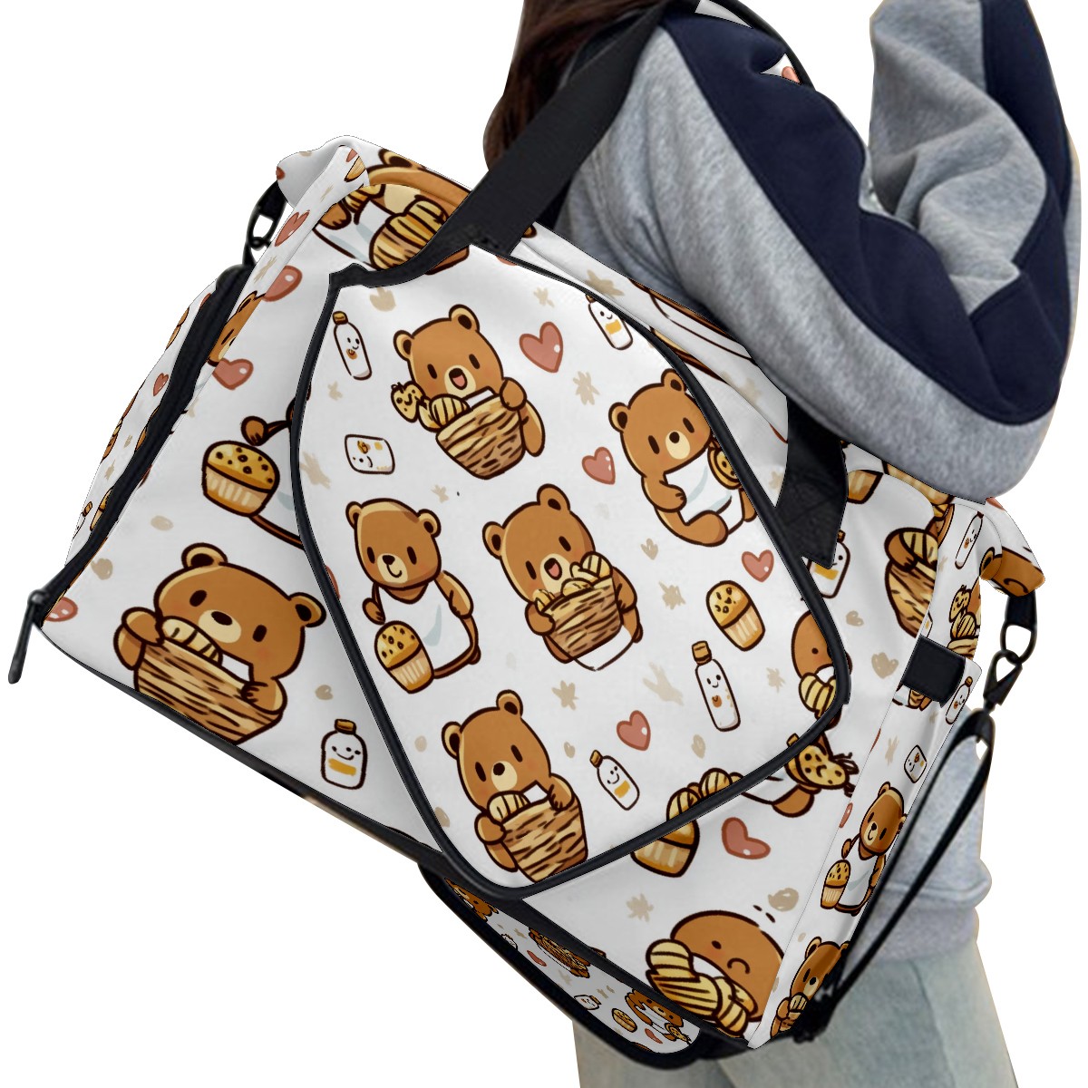 Pickleball Tote Bag Carryall for Paddles Balls and Accessories, Portable Lightweight Gear Bag for Players(Bear And Honey Pot)