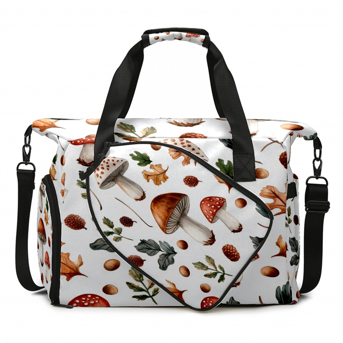 Pickleball Tote Bag Carryall for Paddles Balls and Accessories, Portable Lightweight Gear Bag for Players(Watercolor Mushrooms)