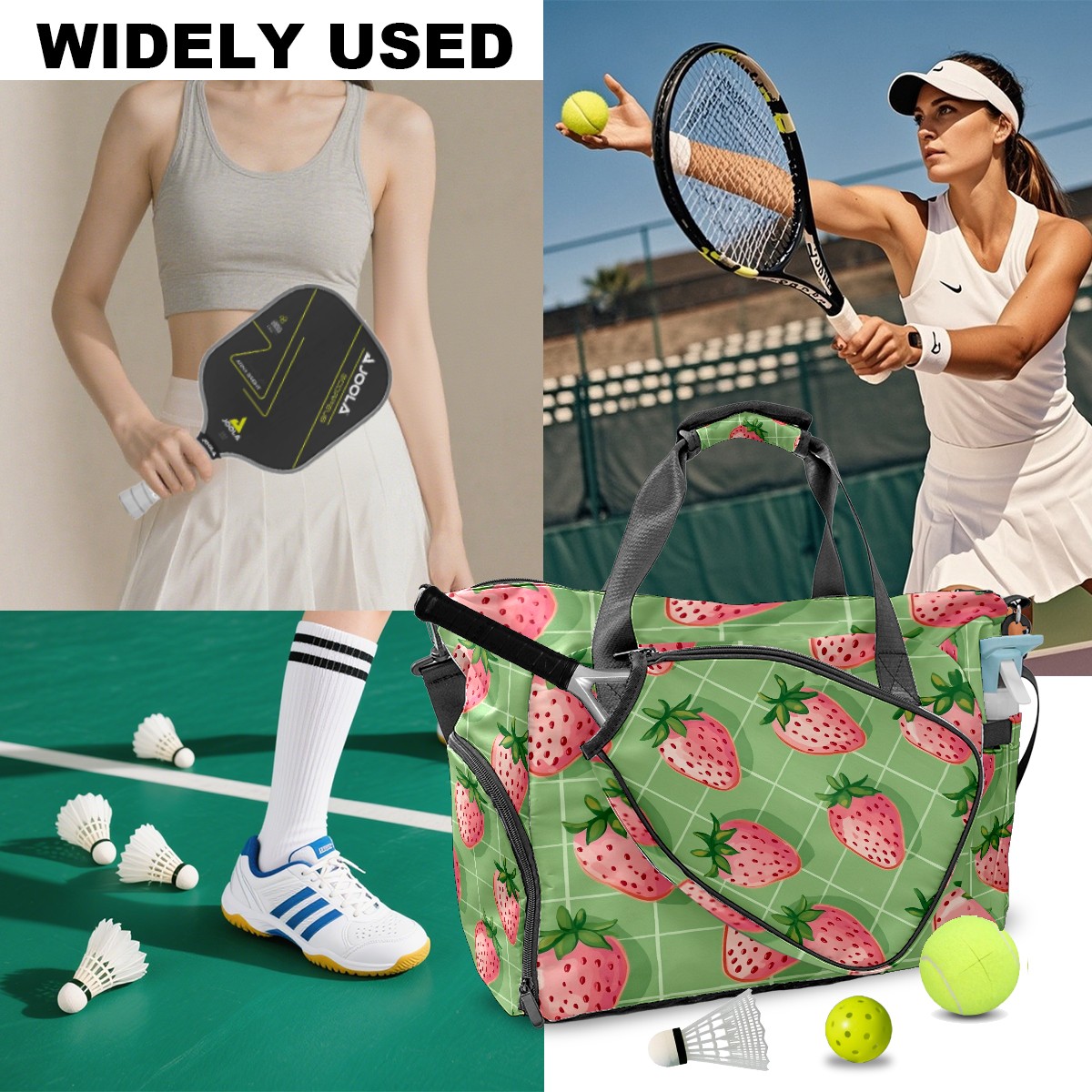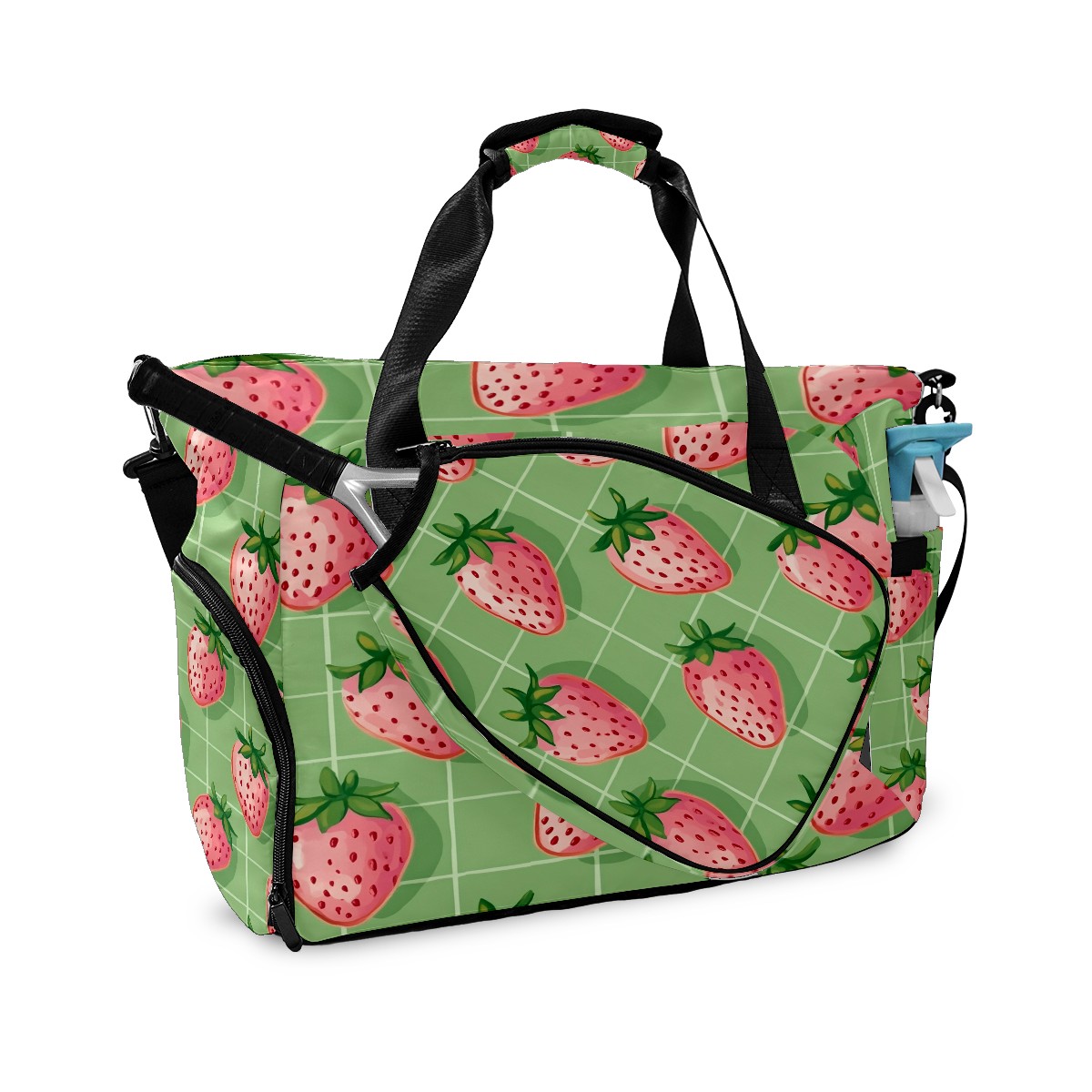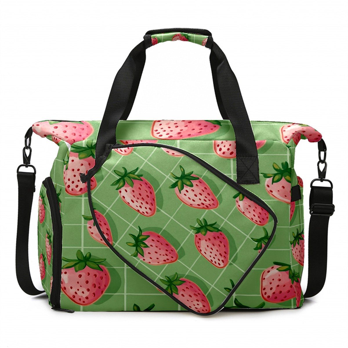 Pickleball Tote Bag Carryall for Paddles Balls and Accessories, Portable Lightweight Gear Bag for Players(Pink Strawberries)