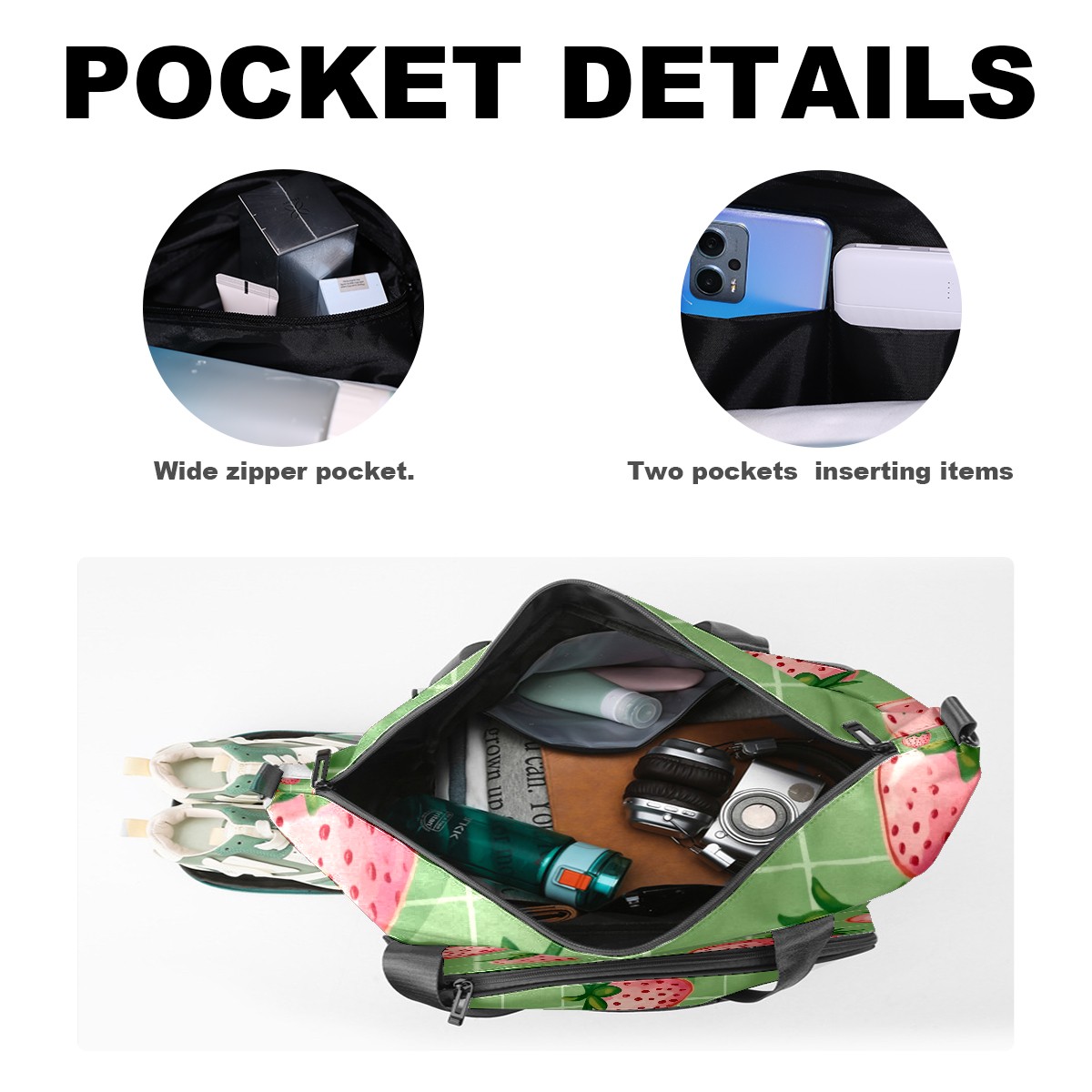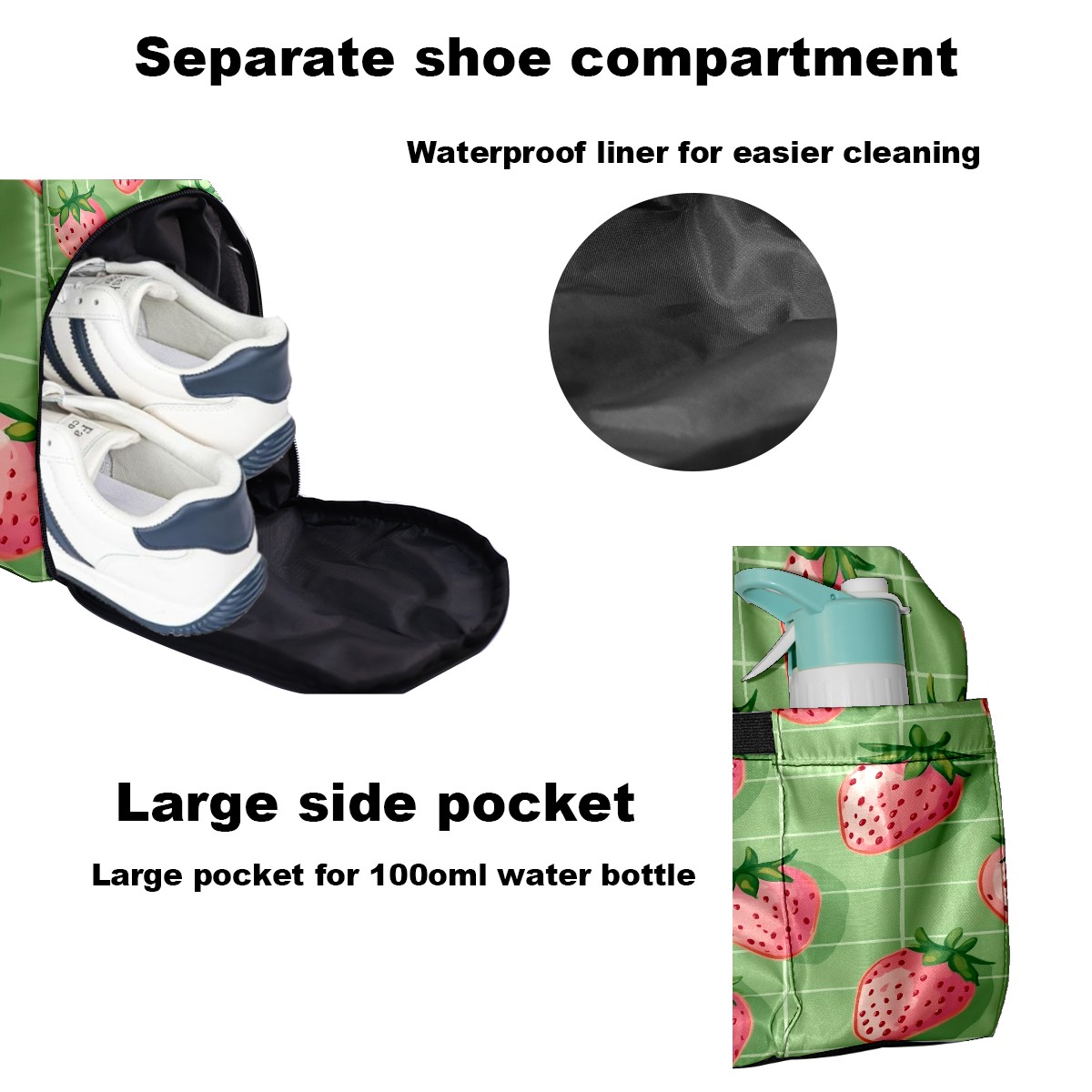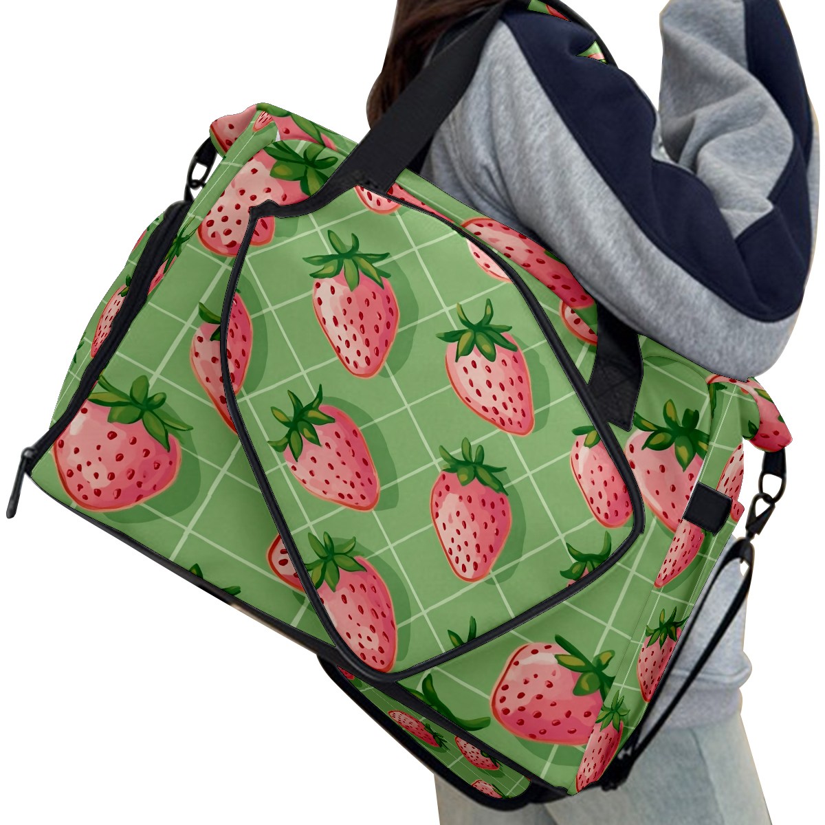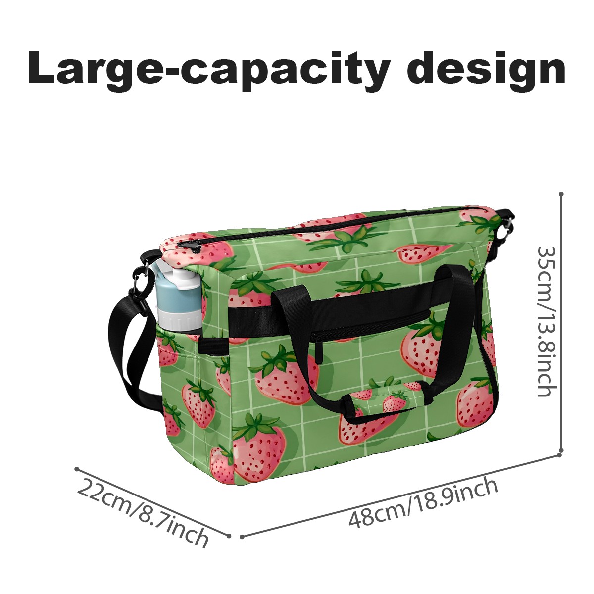 Pickleball Tote Bag Carryall for Paddles Balls and Accessories, Portable Lightweight Gear Bag for Players(Pink Strawberries)