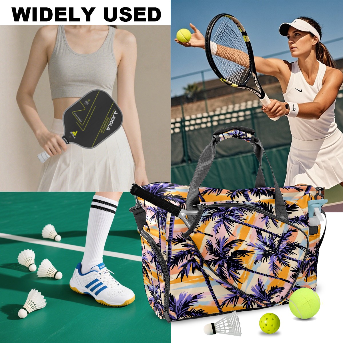 <p>Meet your ultimate court companion – the premium pickleball bag designed for players who demand durability and smart organization. Whether you're heading to a local tournament or a casual game with friends, our meticulously crafted bag keeps your gear secure, accessible, and tournament-ready.</p> <p><b>Built for the Active Lifestyle:</b></p> <p>From casual pickleball games to competitive leagues, this bag adapts to your needs. Store paddles, balls, towels, water bottles, and phones in intelligently placed pockets. The nylon fabric construction withstands court abrasions and daily use season after season.</p>