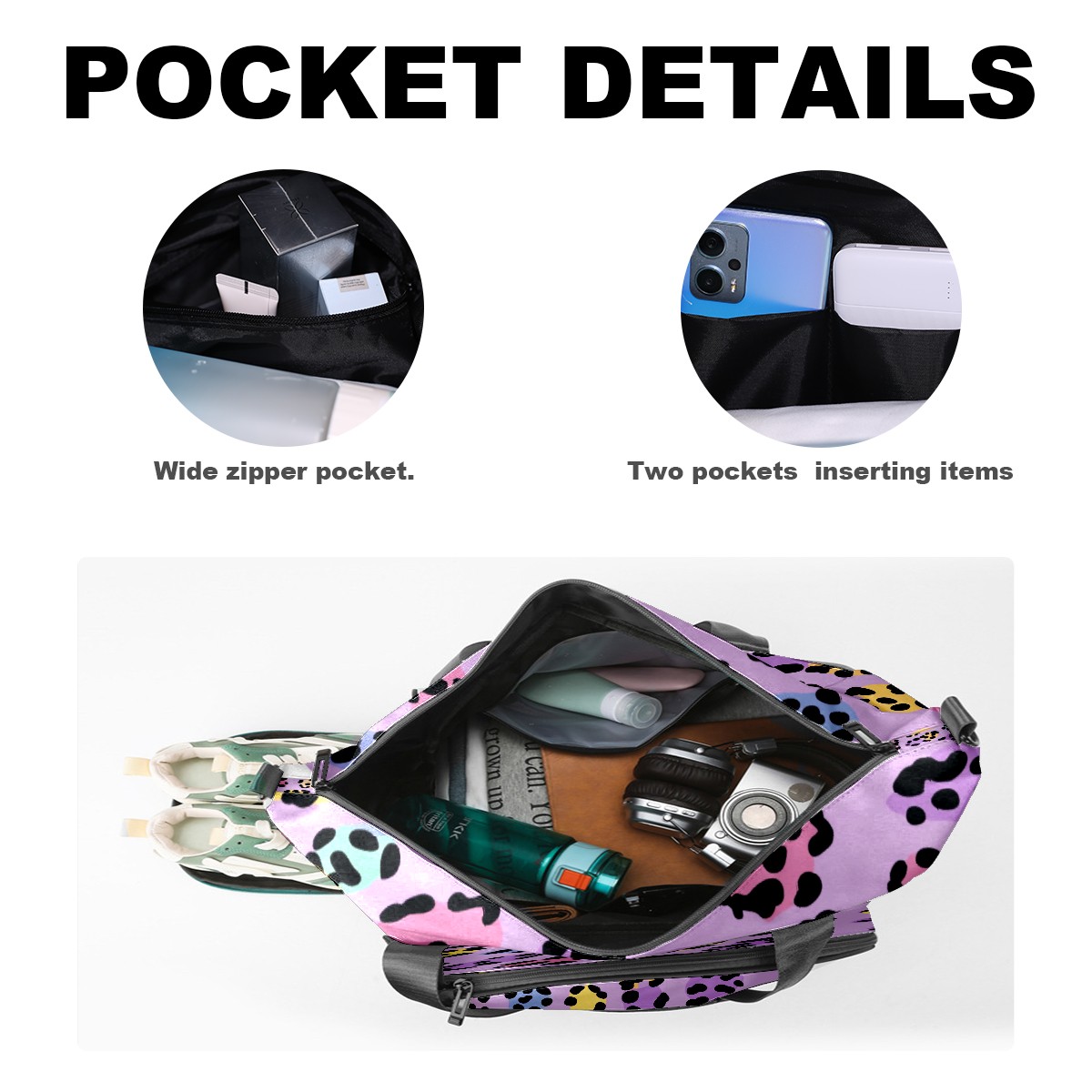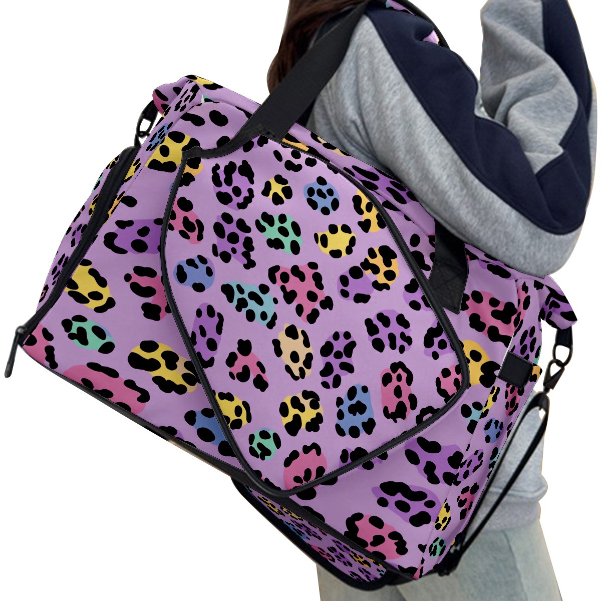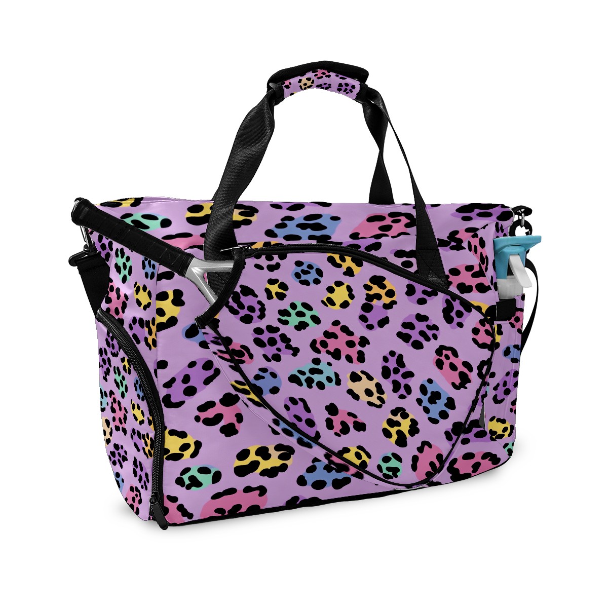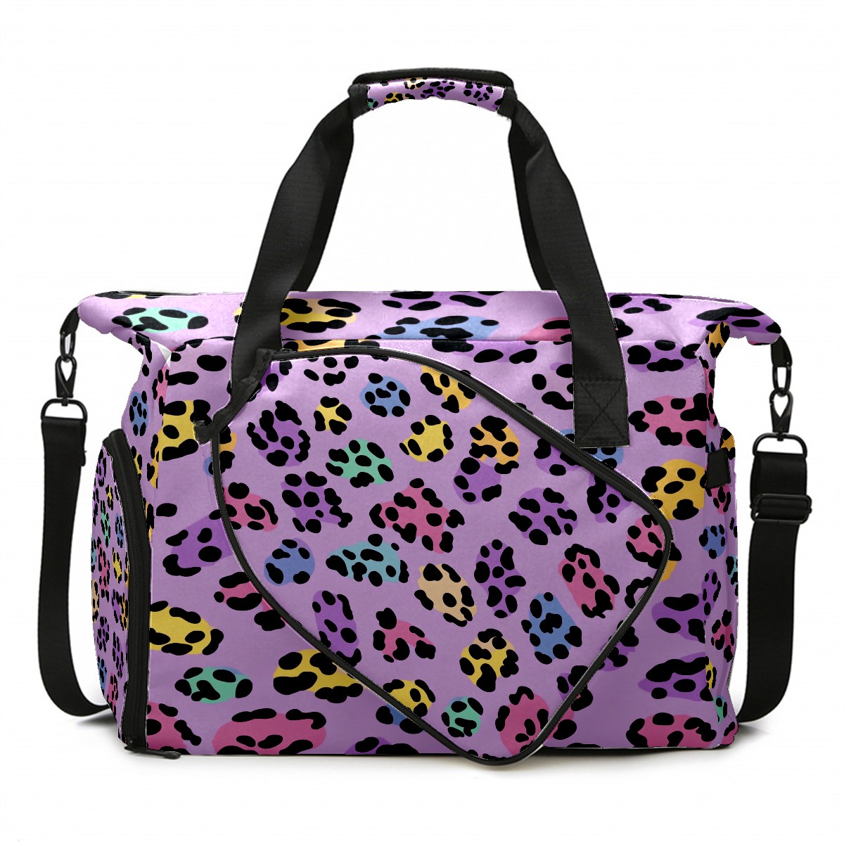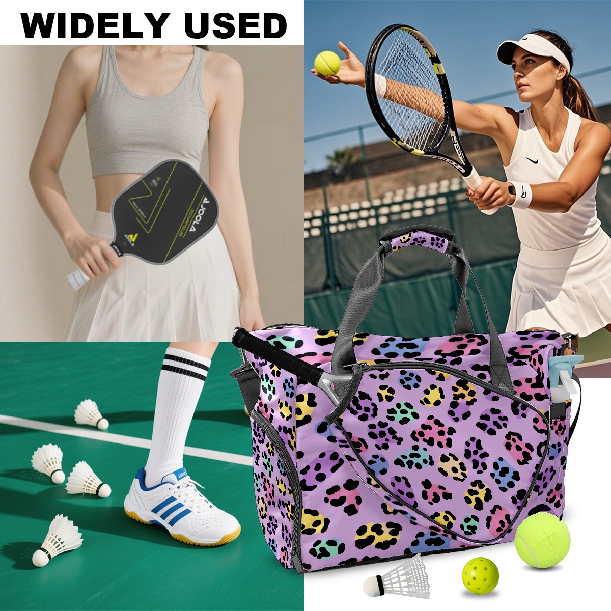 Pickleball Tote Bag Carryall for Paddles Balls and Accessories, Portable Lightweight Gear Bag for Players(Holographic Leopard Print)