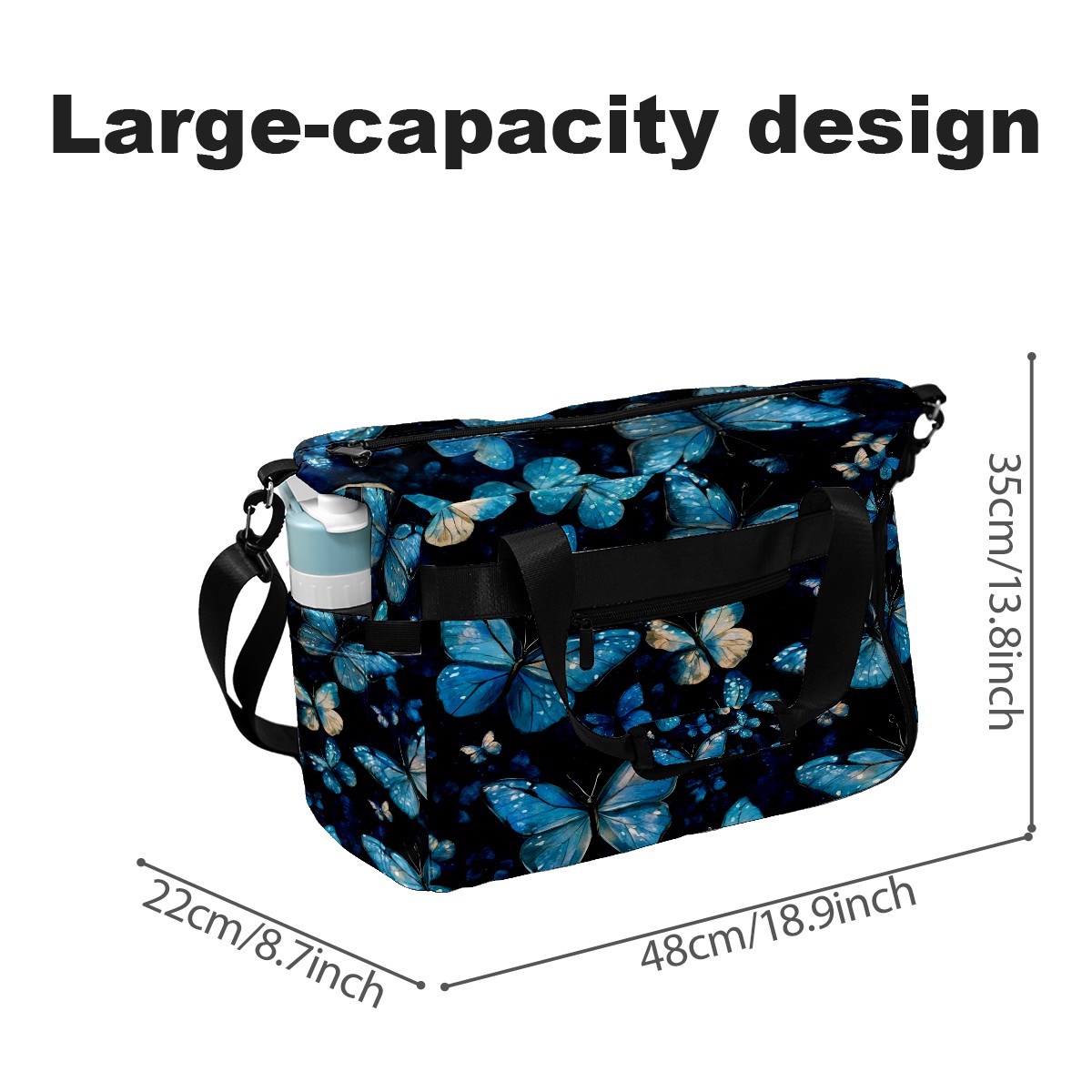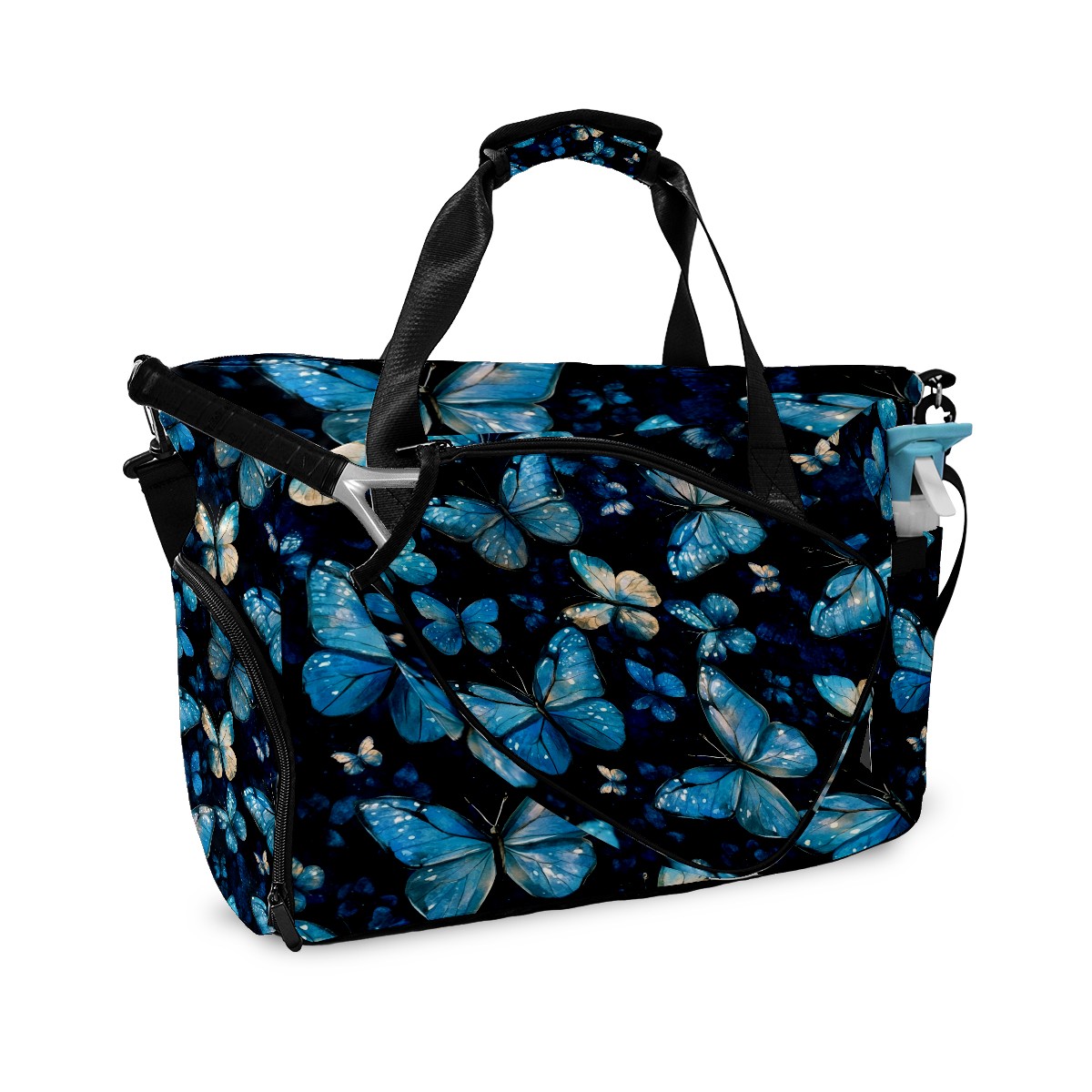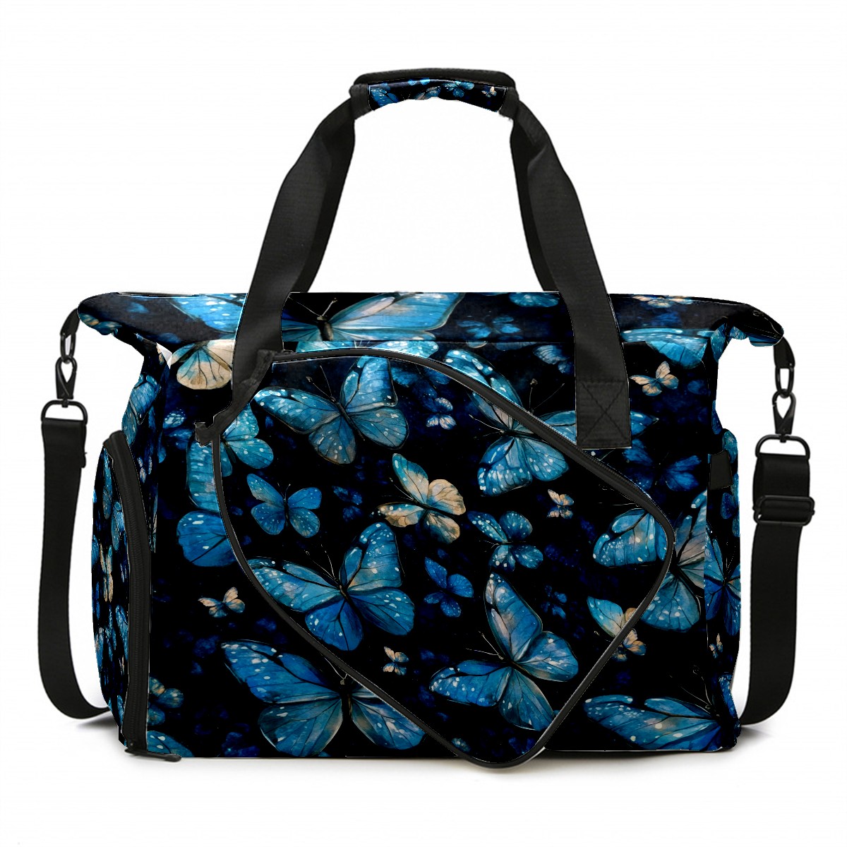 Pickleball Tote Bag Carryall for Paddles Balls and Accessories, Portable Lightweight Gear Bag for Players(Turquoise And Blue Butterflies)