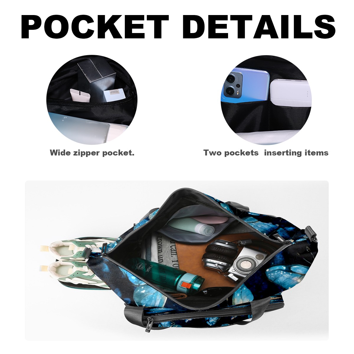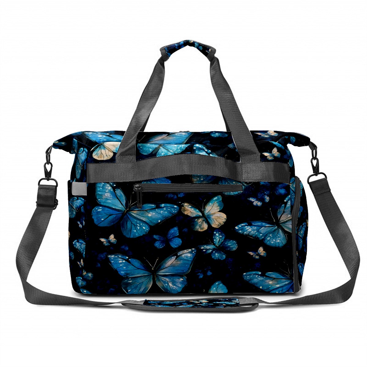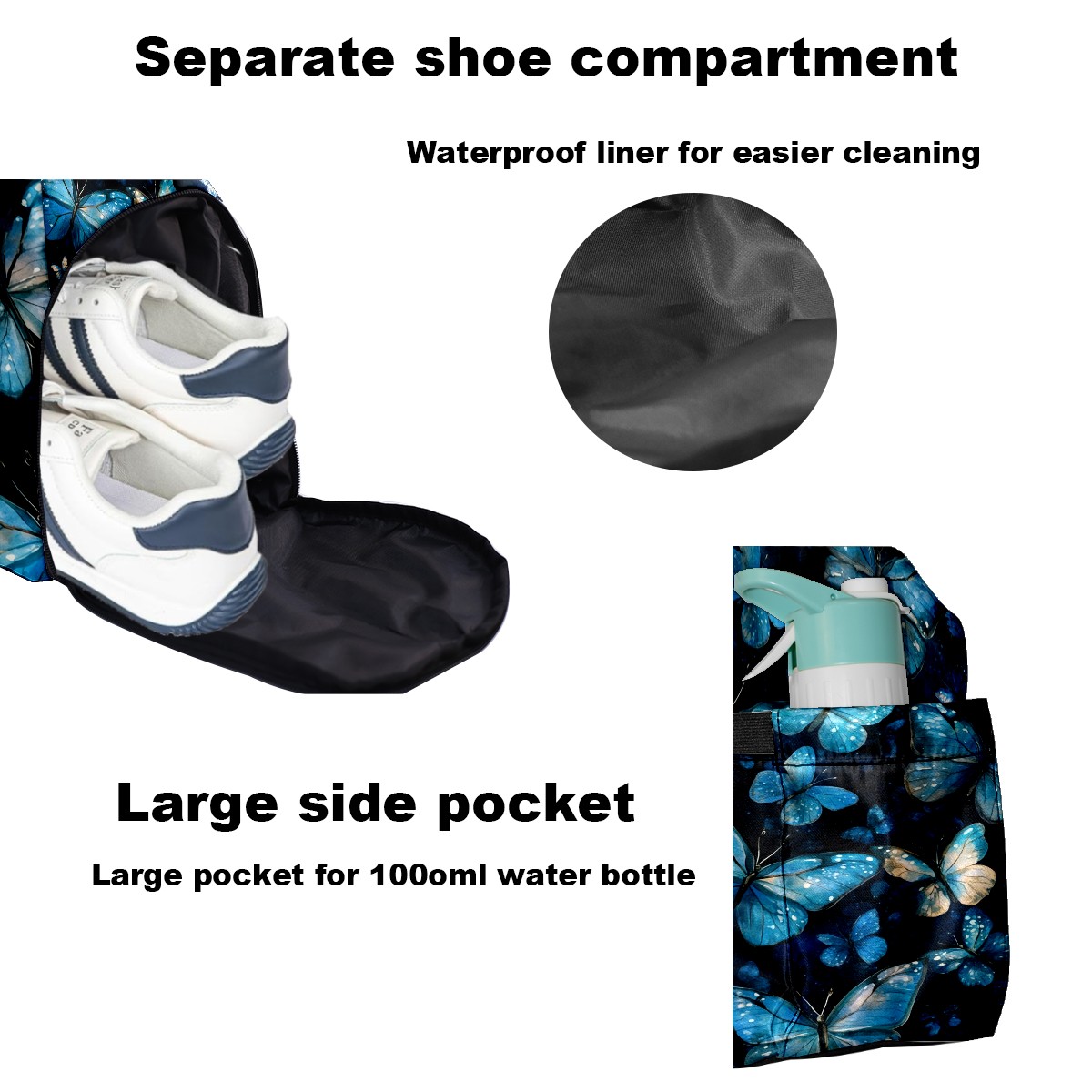 Pickleball Tote Bag Carryall for Paddles Balls and Accessories, Portable Lightweight Gear Bag for Players(Turquoise And Blue Butterflies)