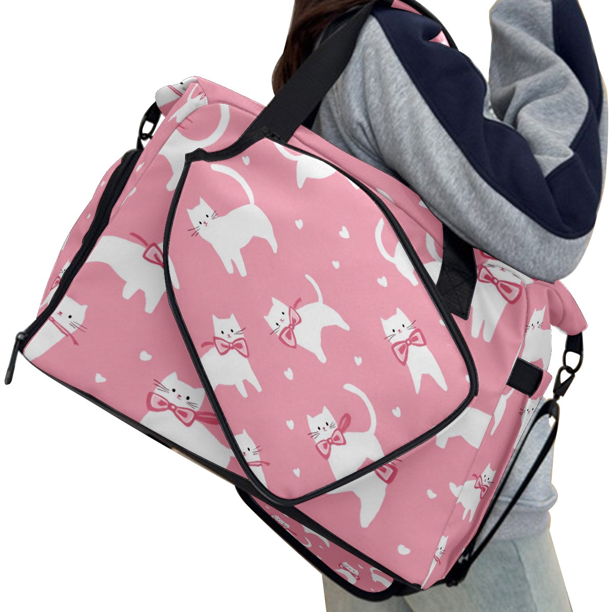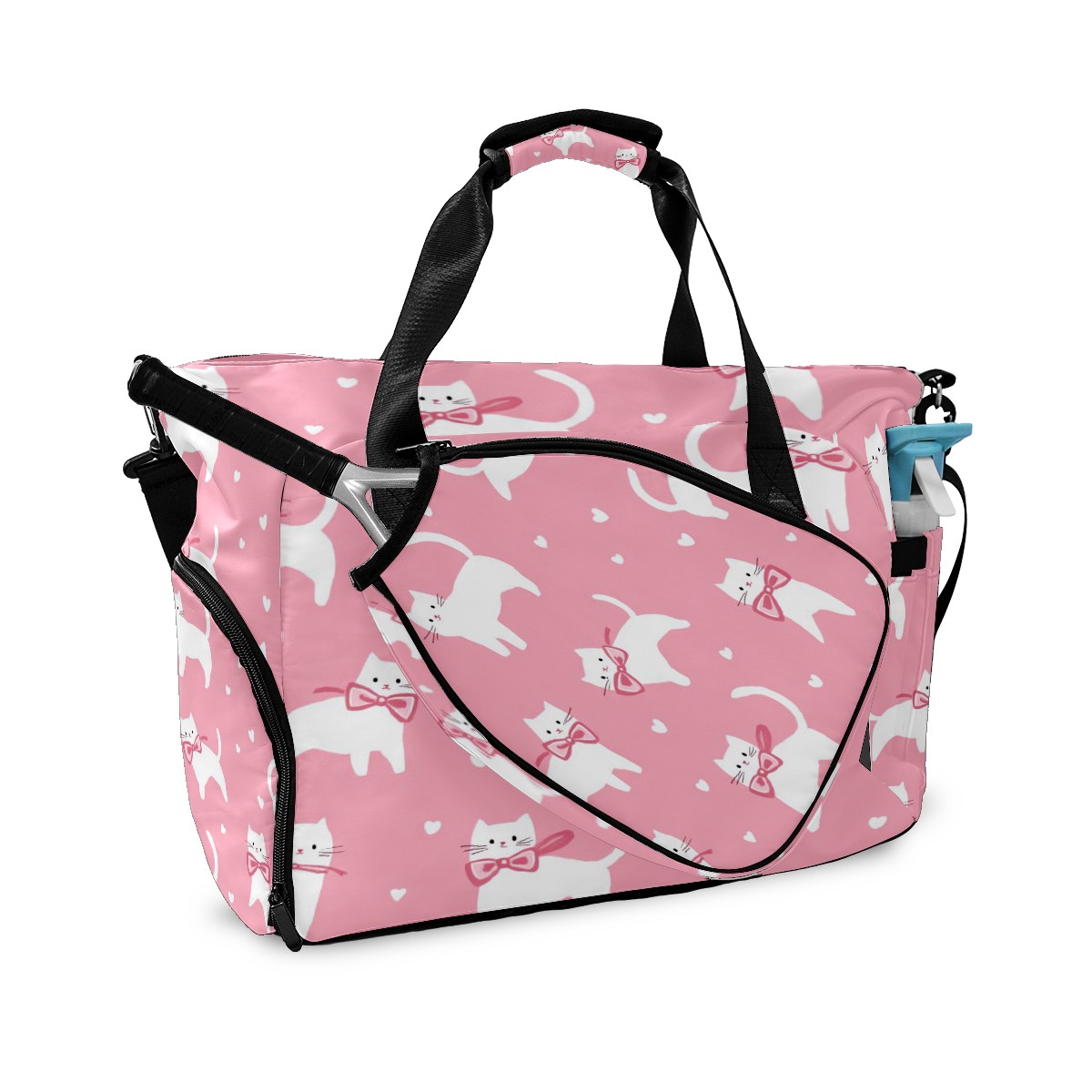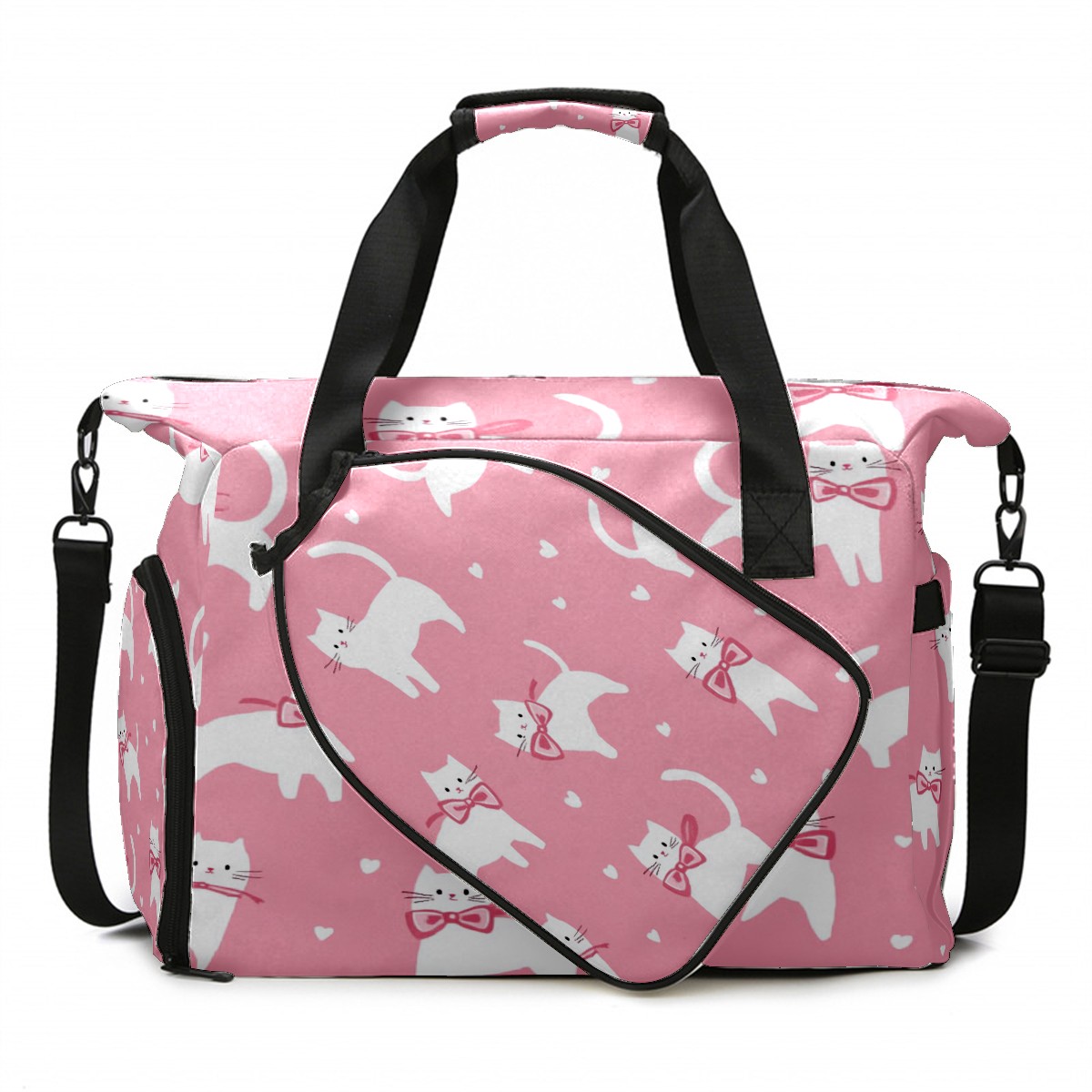 Pickleball Tote Bag Carryall for Paddles Balls and Accessories, Portable Lightweight Gear Bag for Players(White Cats And Bows)