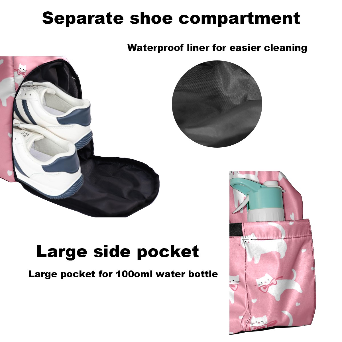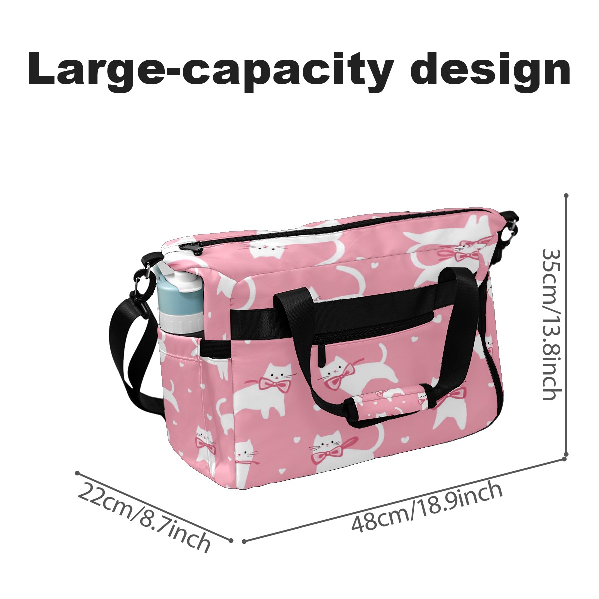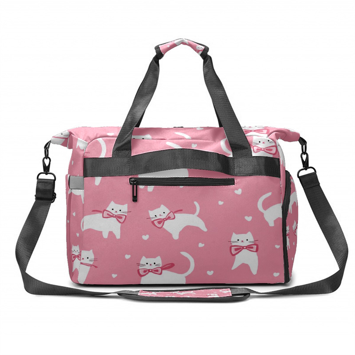 Pickleball Tote Bag Carryall for Paddles Balls and Accessories, Portable Lightweight Gear Bag for Players(White Cats And Bows)