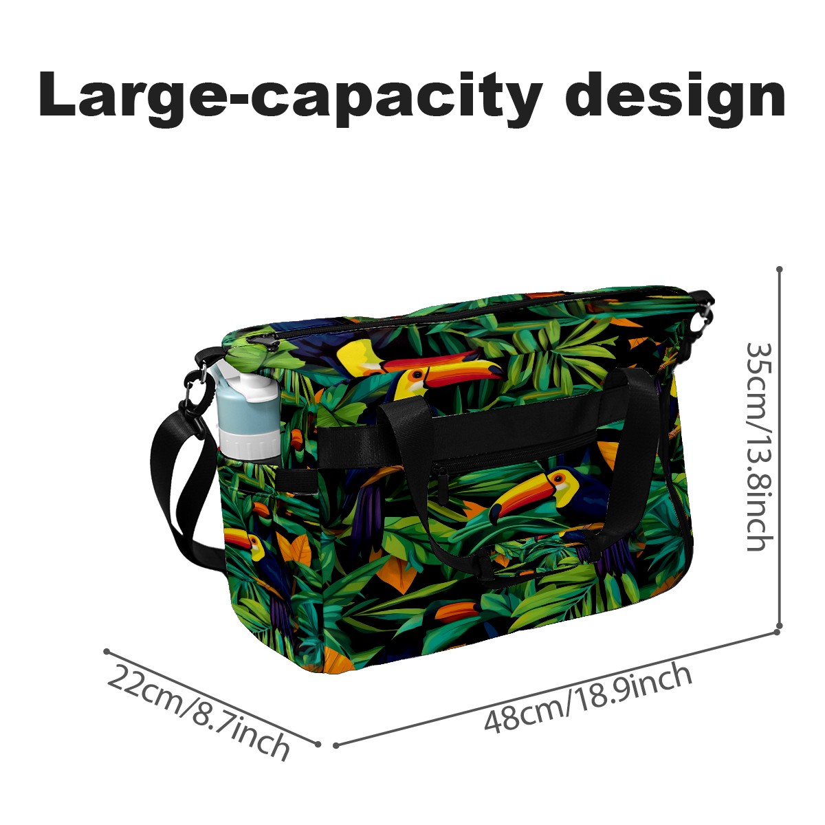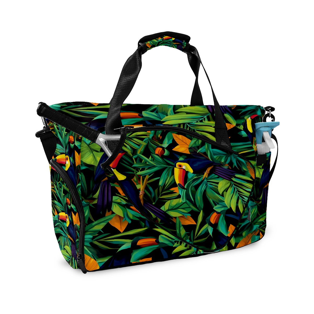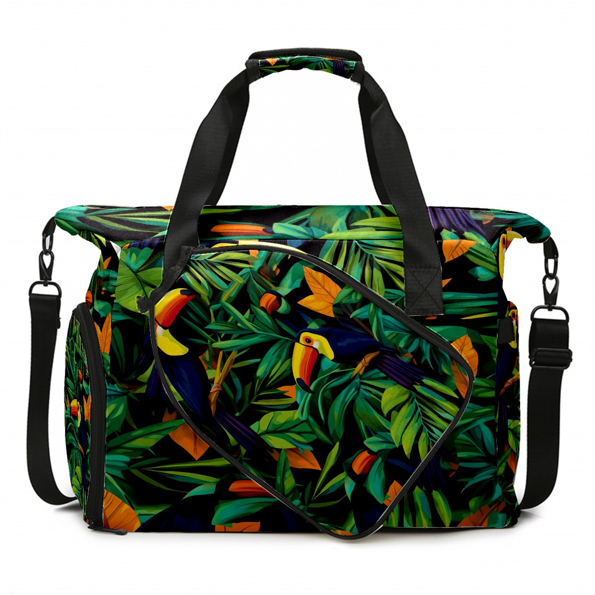 Pickleball Tote Bag Carryall for Paddles Balls and Accessories, Portable Lightweight Gear Bag for Players(Palm Leaves And Toucans)