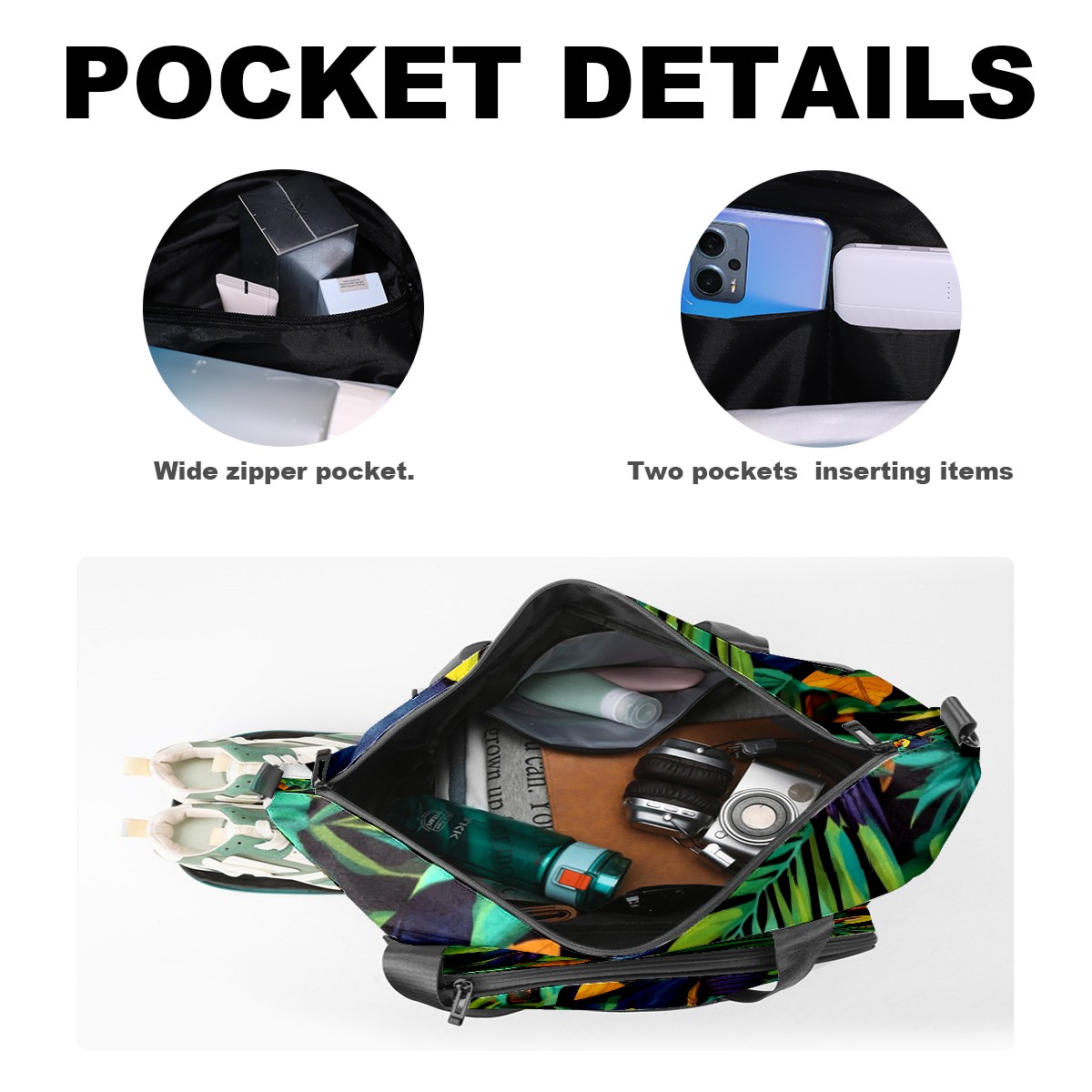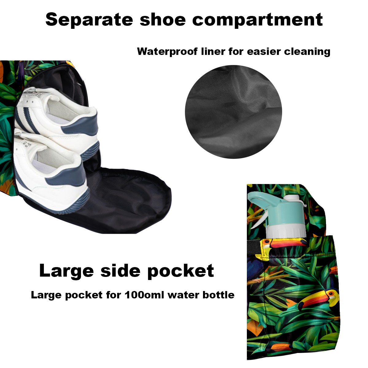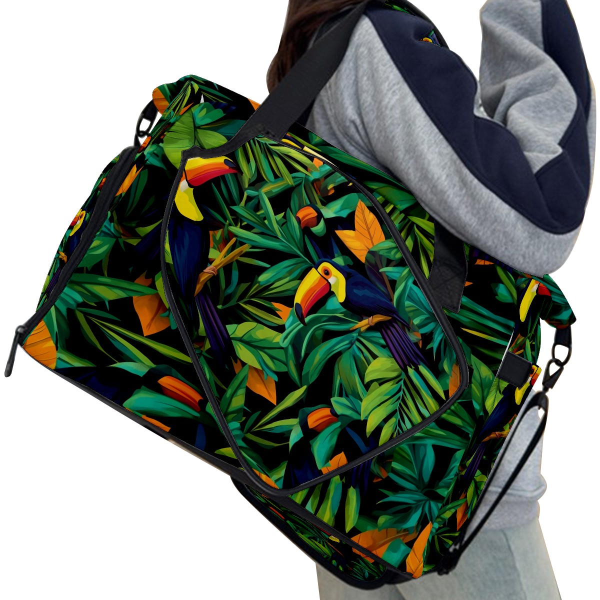 Pickleball Tote Bag Carryall for Paddles Balls and Accessories, Portable Lightweight Gear Bag for Players(Palm Leaves And Toucans)