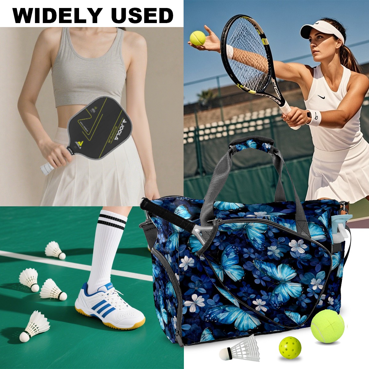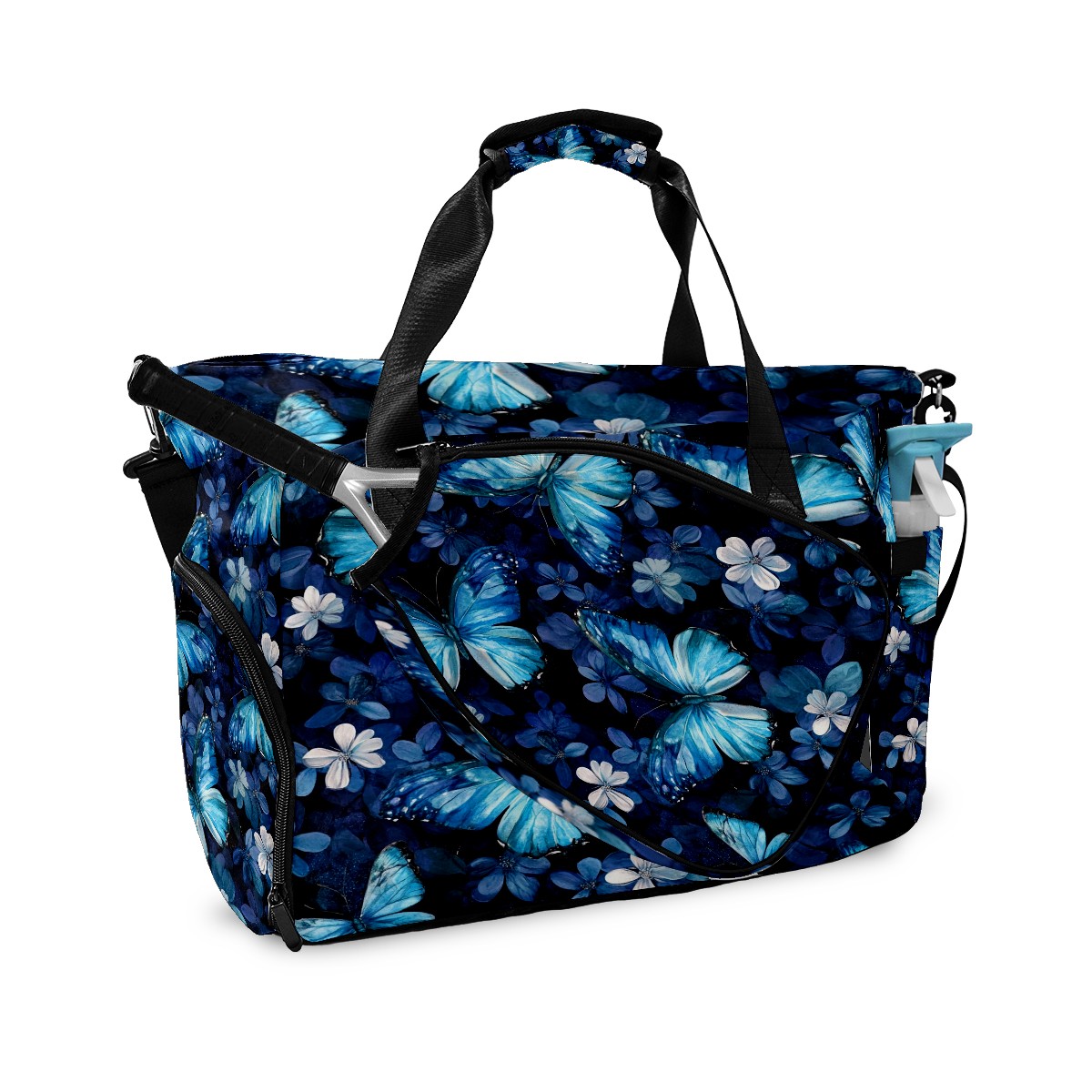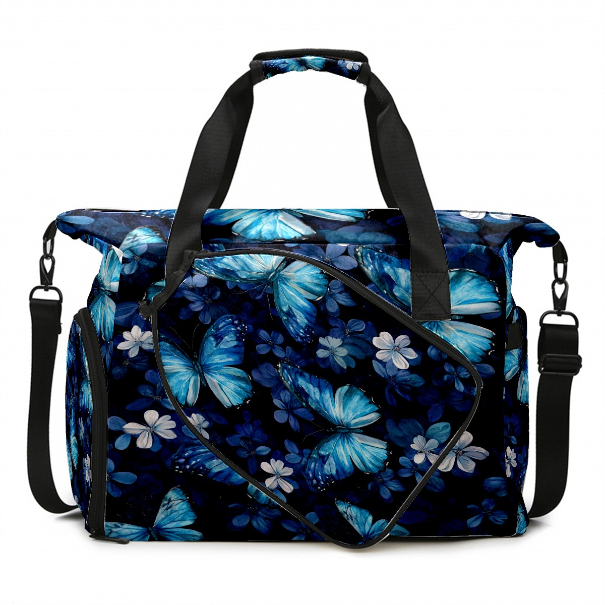 Pickleball Tote Bag Carryall for Paddles Balls and Accessories, Portable Lightweight Gear Bag for Players(Turquoise Butterflies)