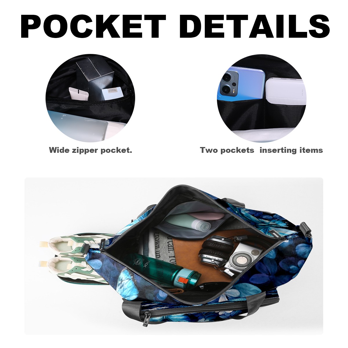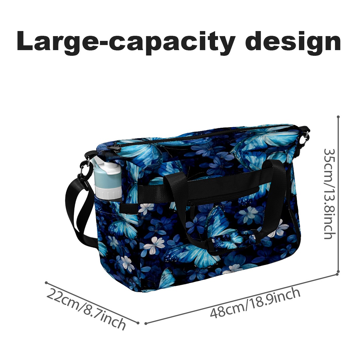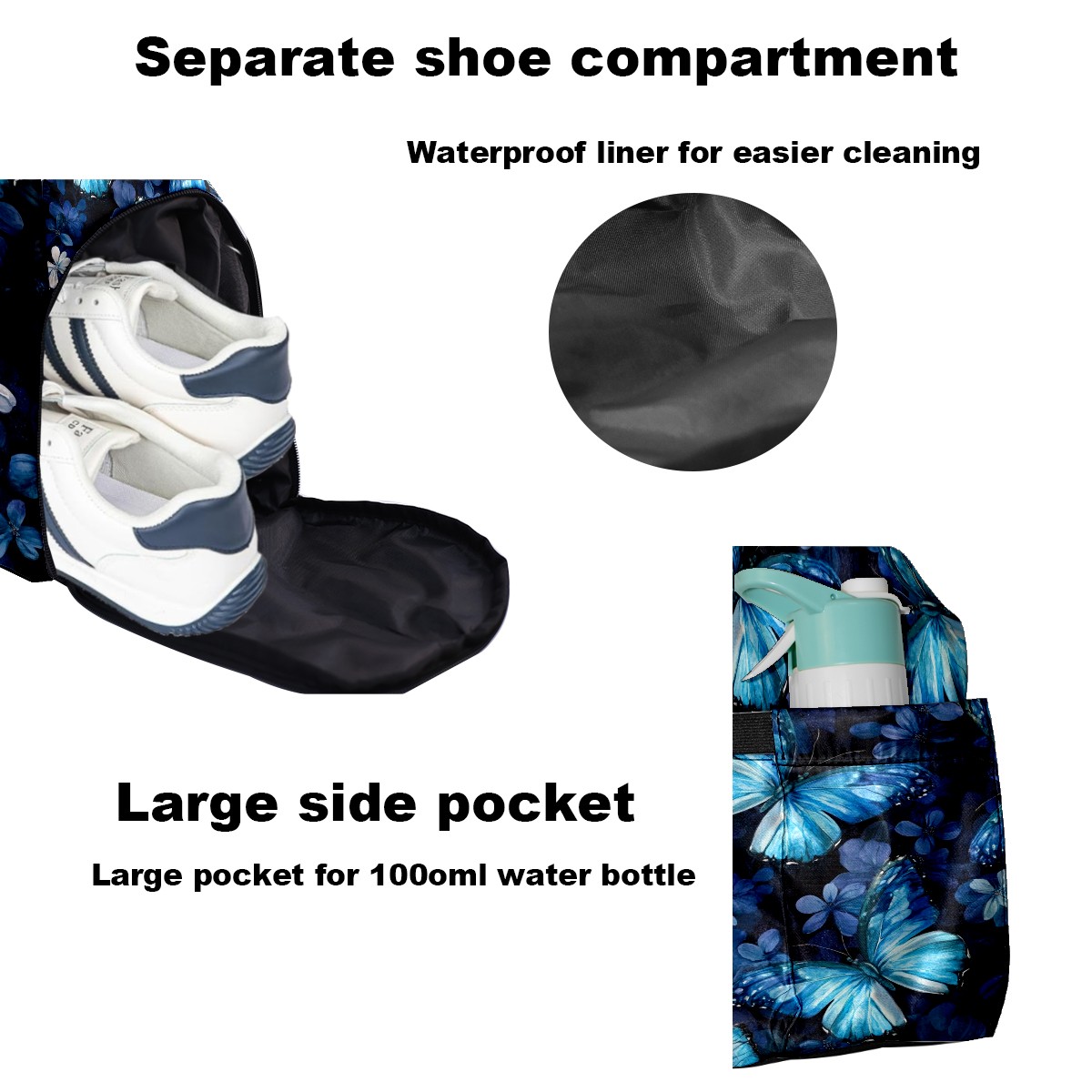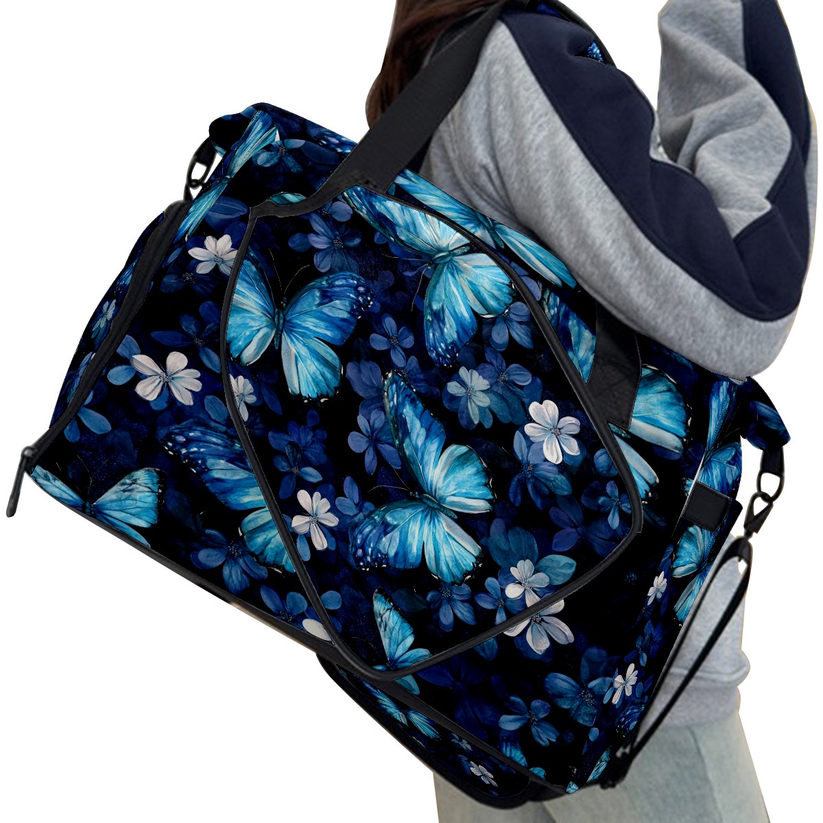Pickleball Tote Bag Carryall for Paddles Balls and Accessories, Portable Lightweight Gear Bag for Players(Turquoise Butterflies)