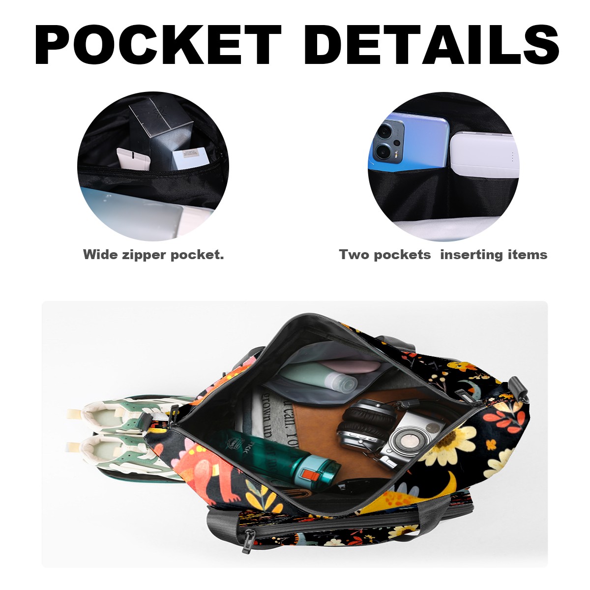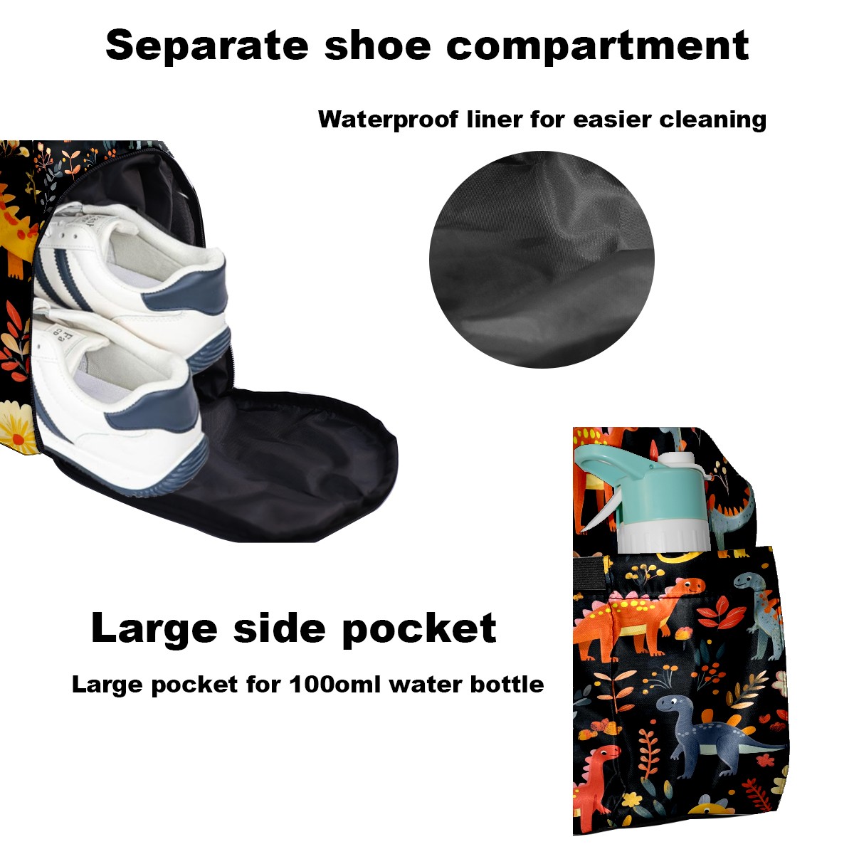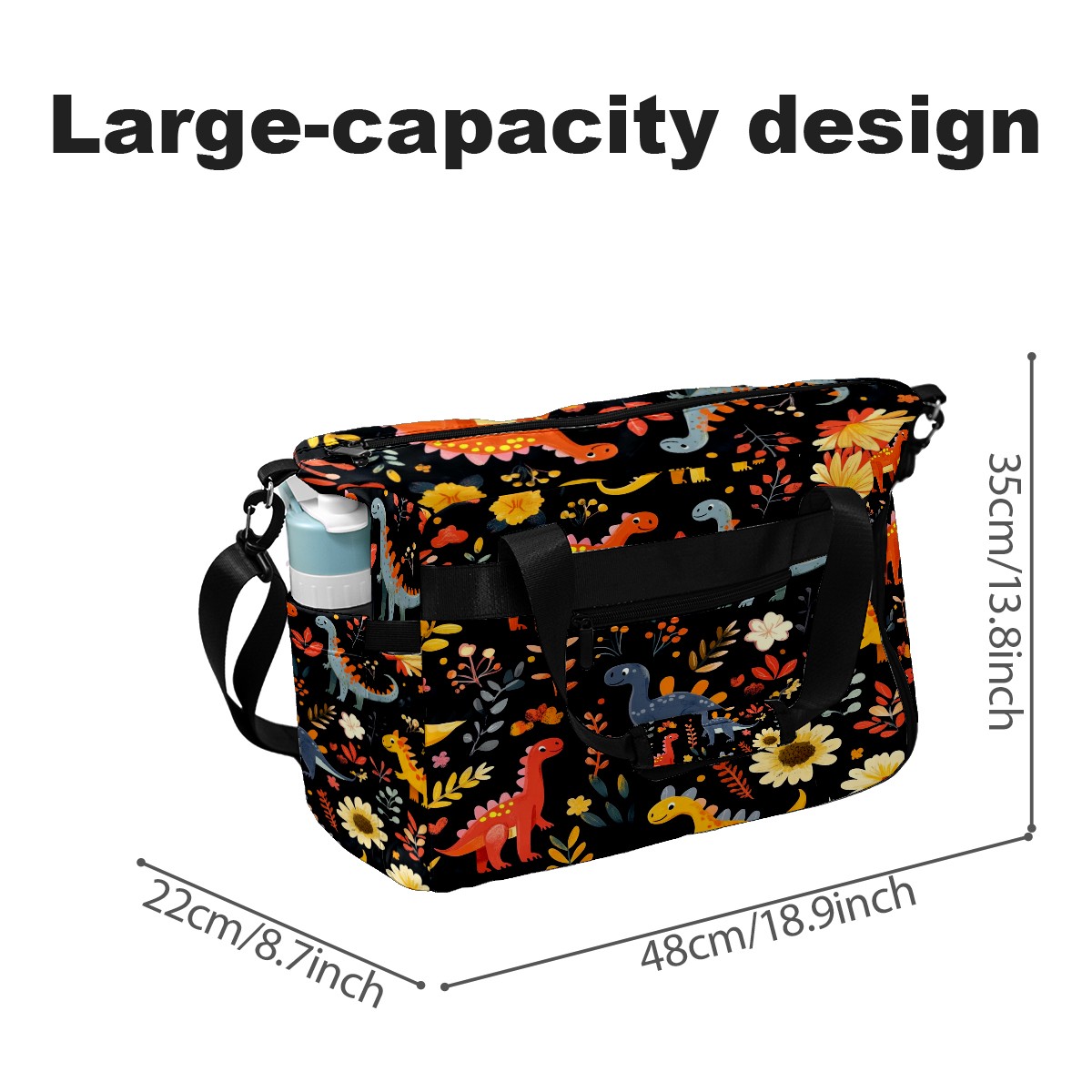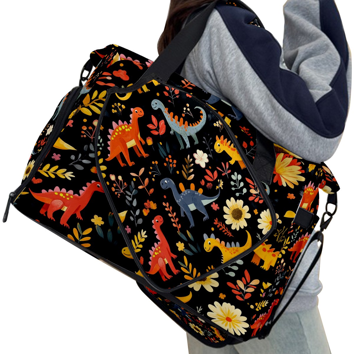 Pickleball Tote Bag Carryall for Paddles Balls and Accessories, Portable Lightweight Gear Bag for Players(Playful Dinosaurs Pattern)