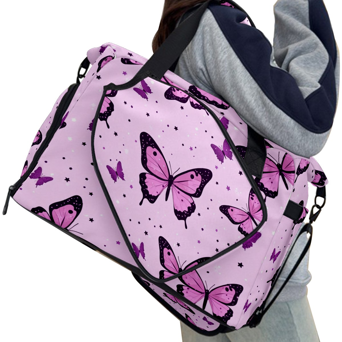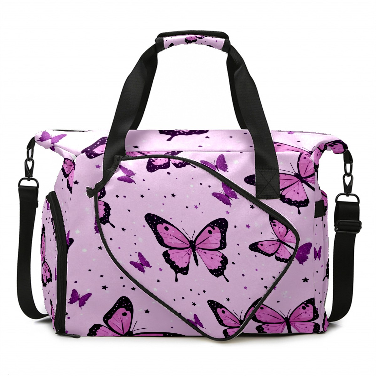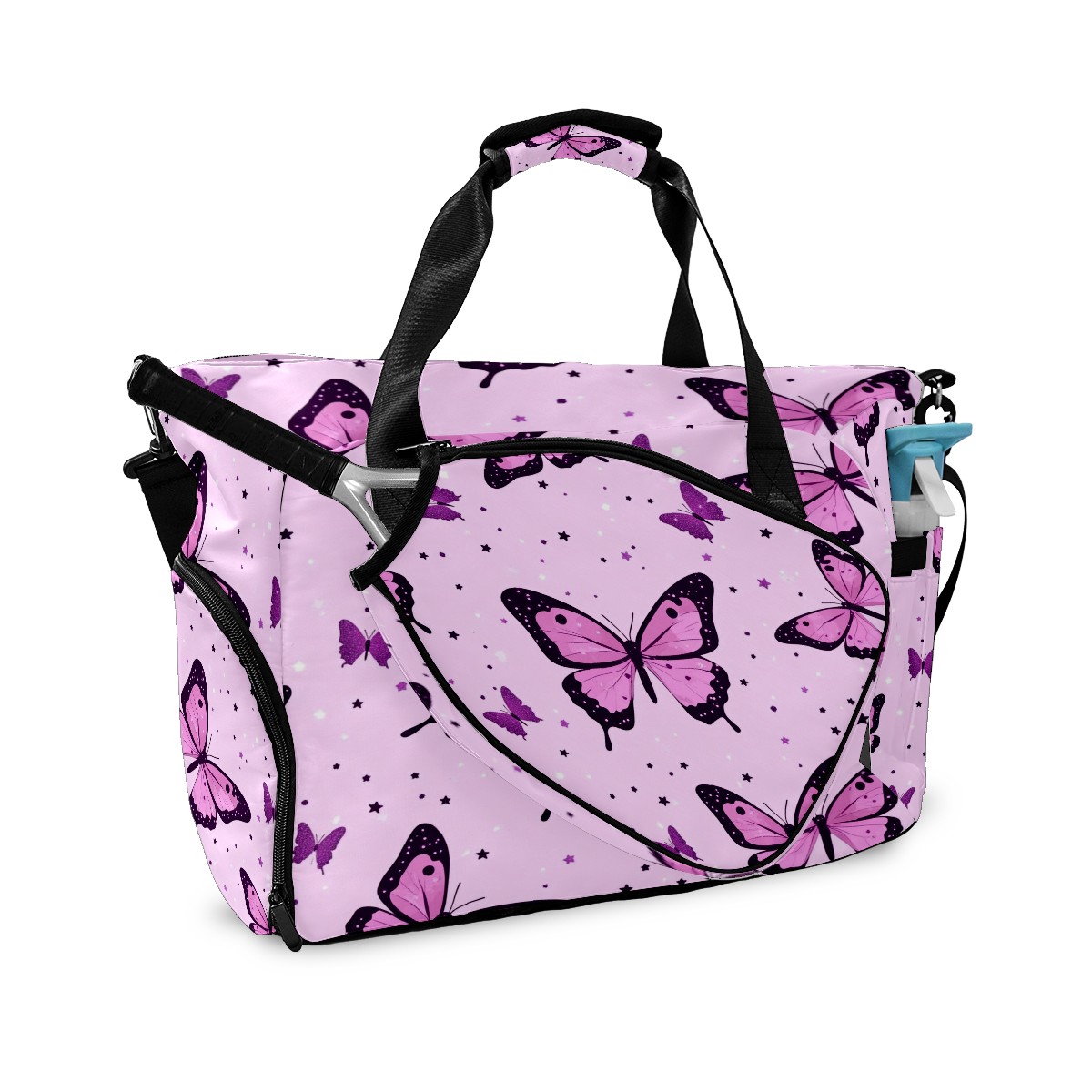 Pickleball Tote Bag Carryall for Paddles Balls and Accessories, Portable Lightweight Gear Bag for Players(Pink Leopard Butterflies)