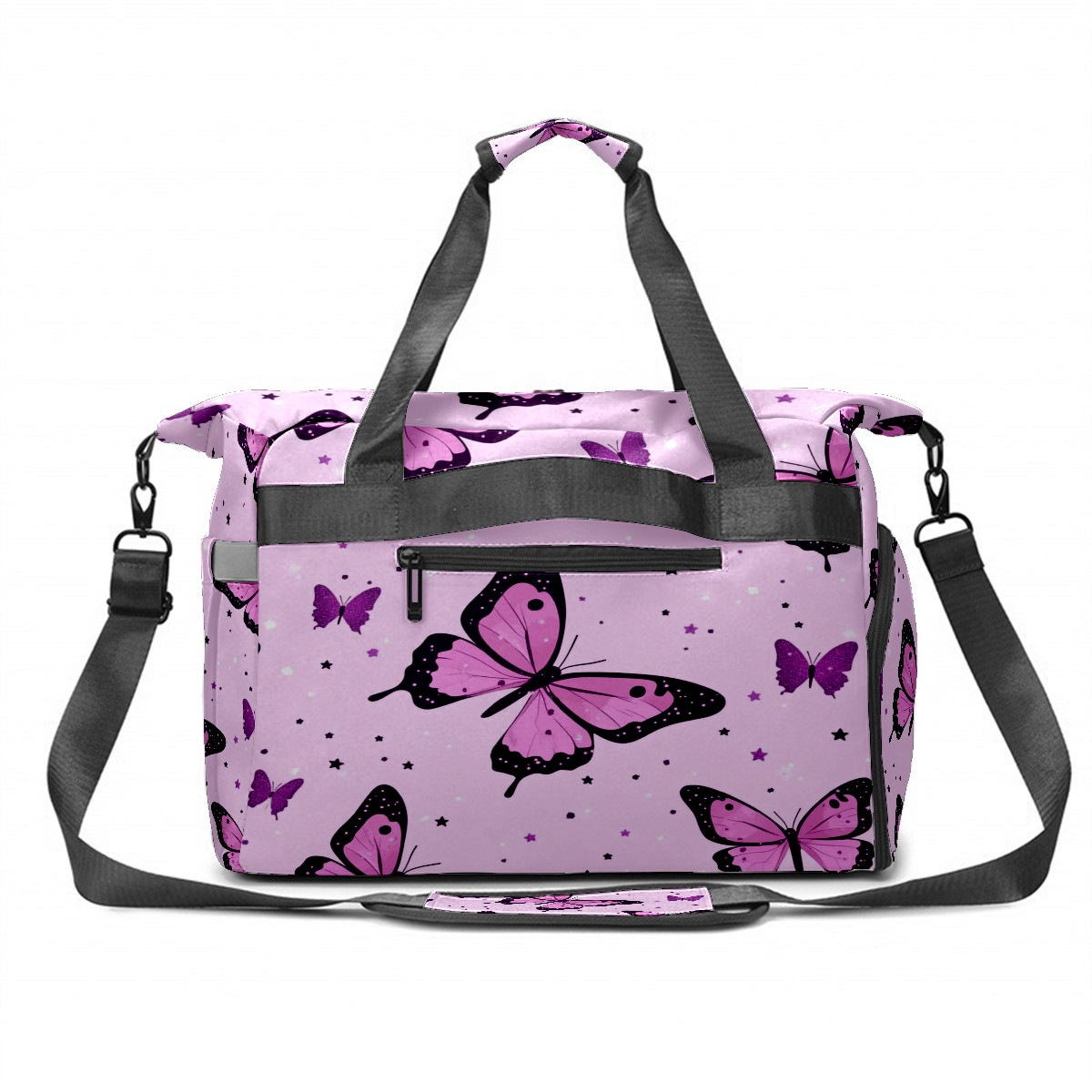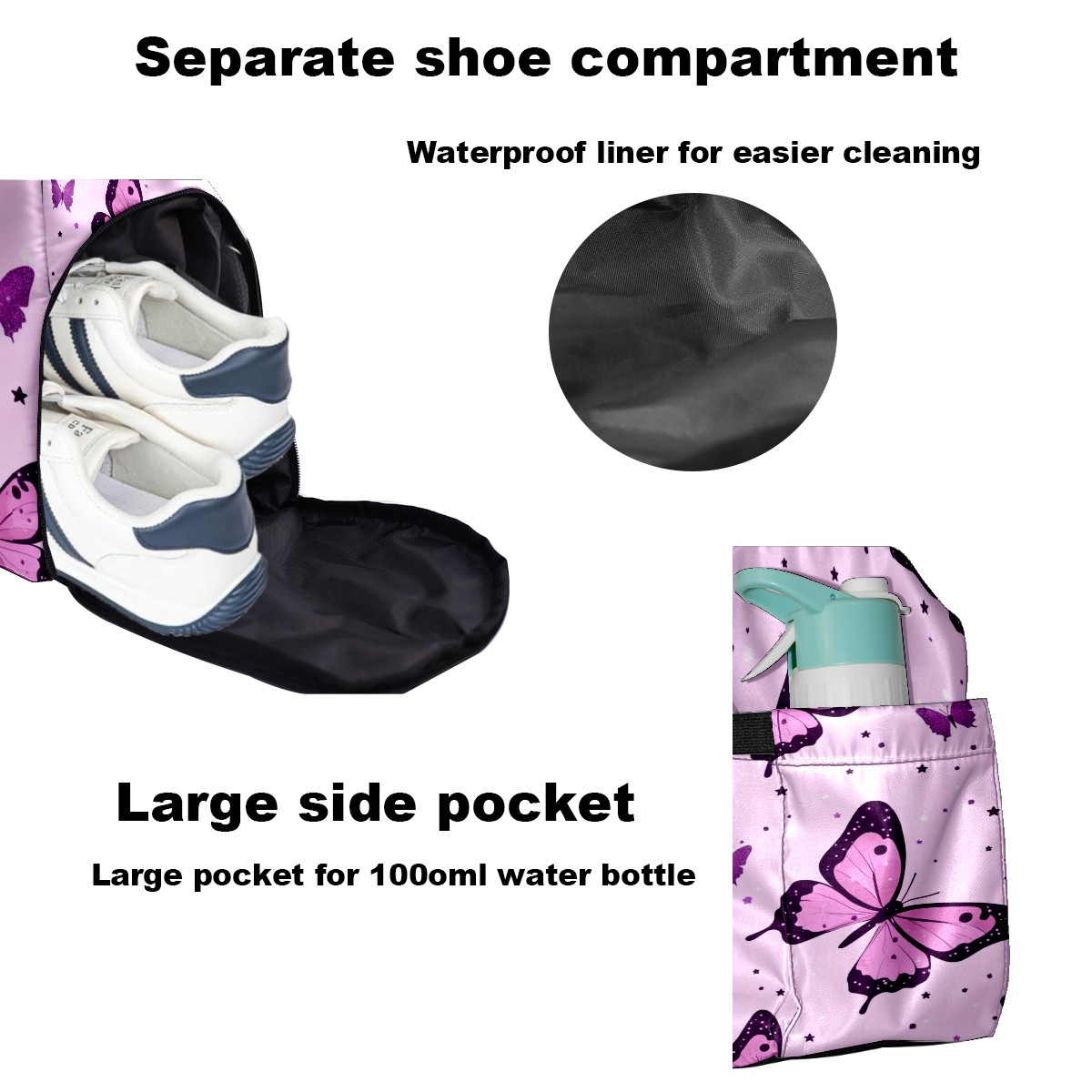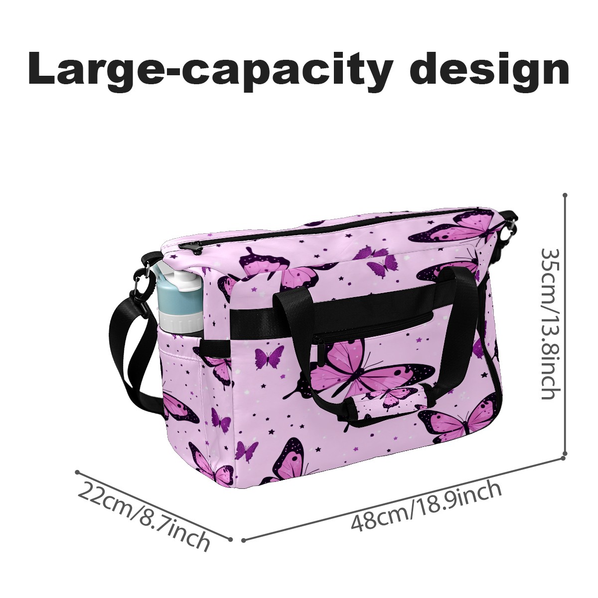 Pickleball Tote Bag Carryall for Paddles Balls and Accessories, Portable Lightweight Gear Bag for Players(Pink Leopard Butterflies)