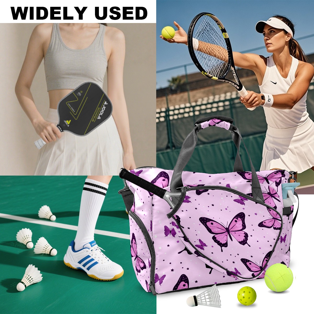 <p>Meet your ultimate court companion – the premium pickleball bag designed for players who demand durability and smart organization. Whether you're heading to a local tournament or a casual game with friends, our meticulously crafted bag keeps your gear secure, accessible, and tournament-ready.</p> <p><b>Built for the Active Lifestyle:</b></p> <p>From casual pickleball games to competitive leagues, this bag adapts to your needs. Store paddles, balls, towels, water bottles, and phones in intelligently placed pockets. The nylon fabric construction withstands court abrasions and daily use season after season.</p>