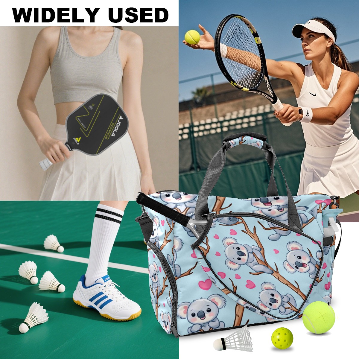 Pickleball Tote Bag Carryall for Paddles Balls and Accessories, Portable Lightweight Gear Bag for Players(Koala)