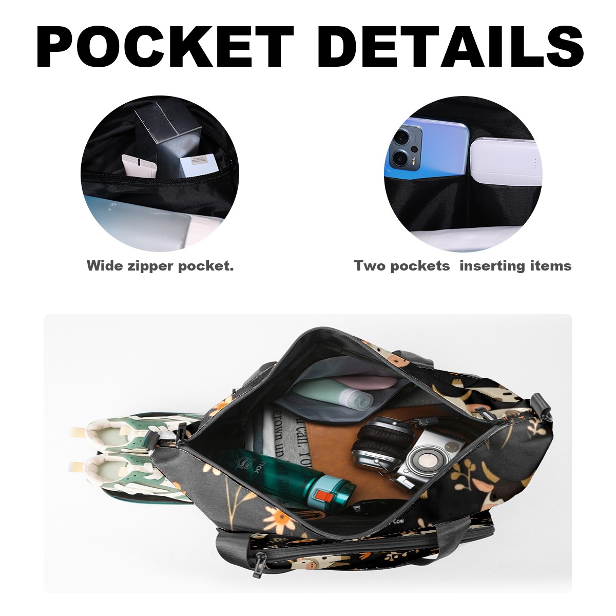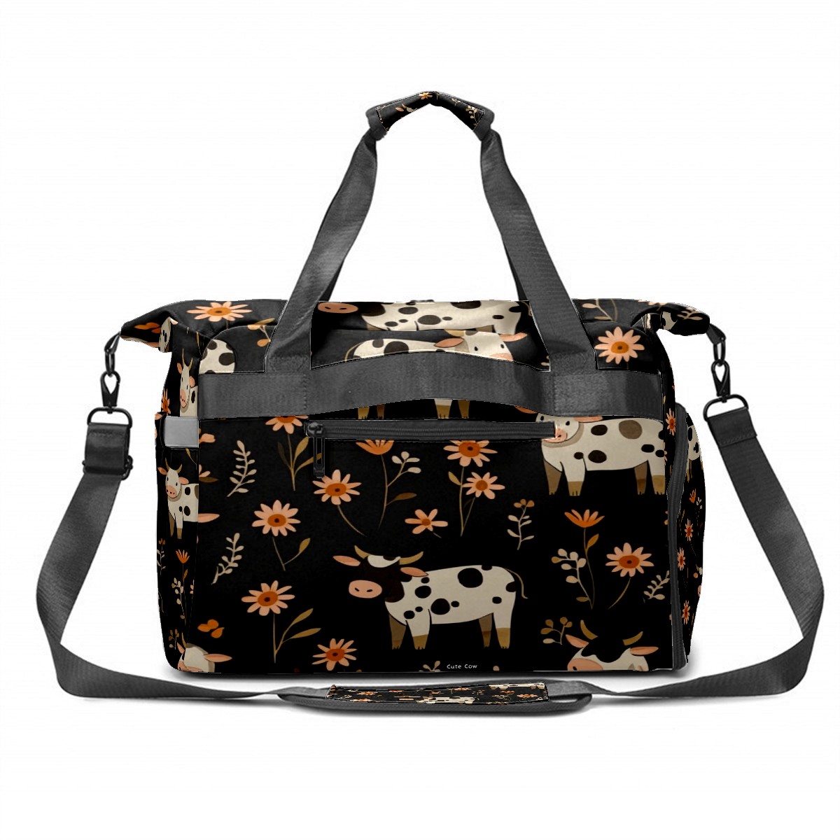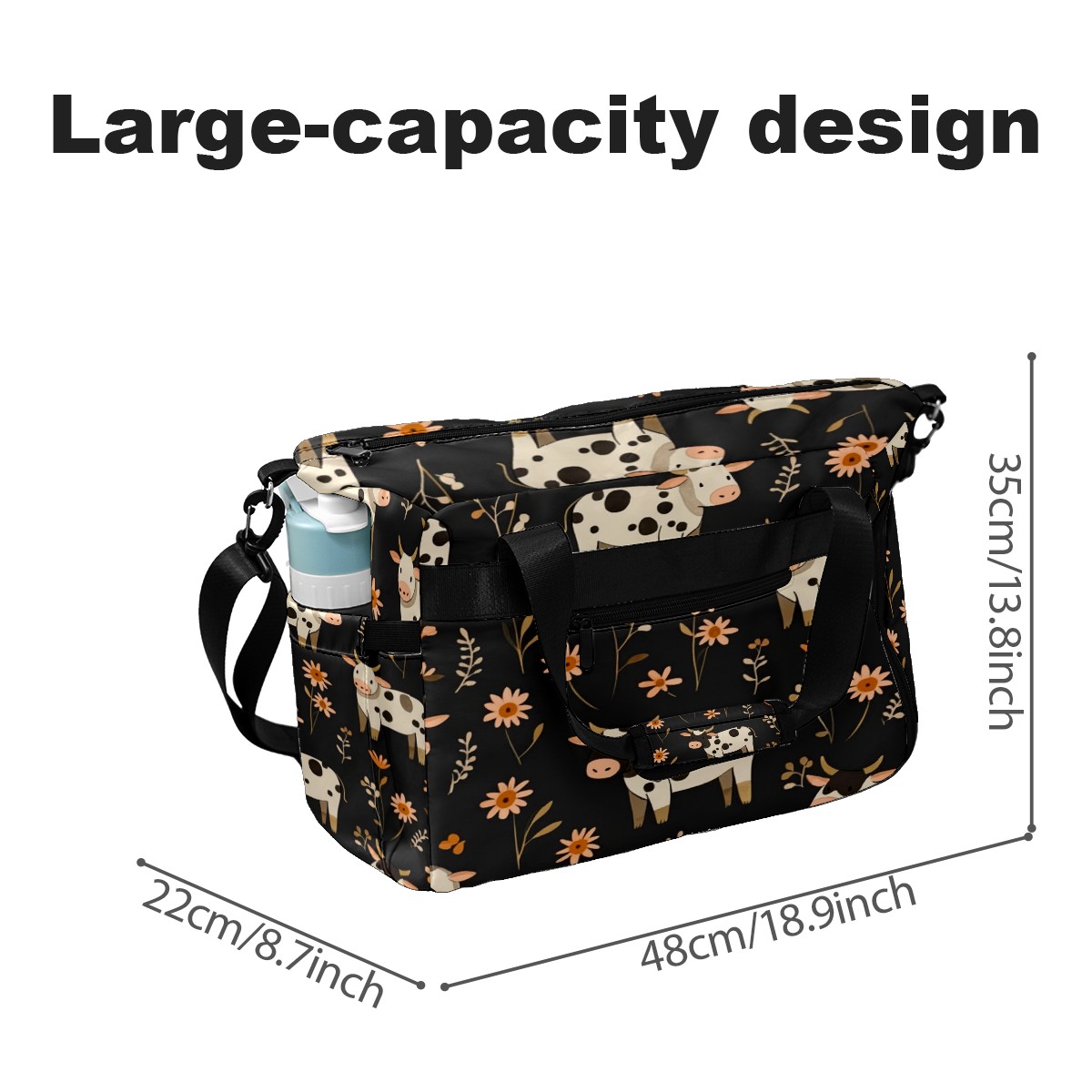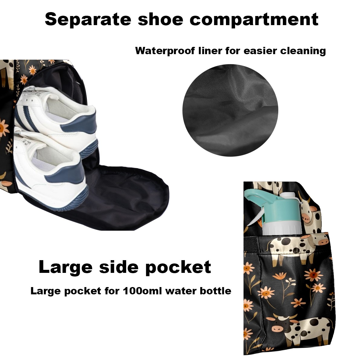 Pickleball Tote Bag Carryall for Paddles Balls and Accessories, Portable Lightweight Gear Bag for Players(Cows And Flowers)