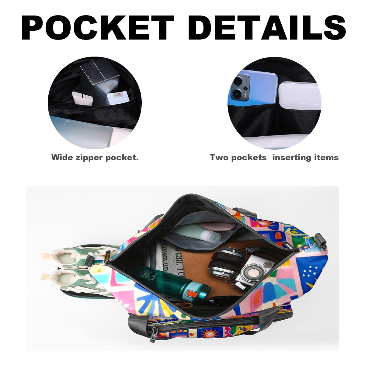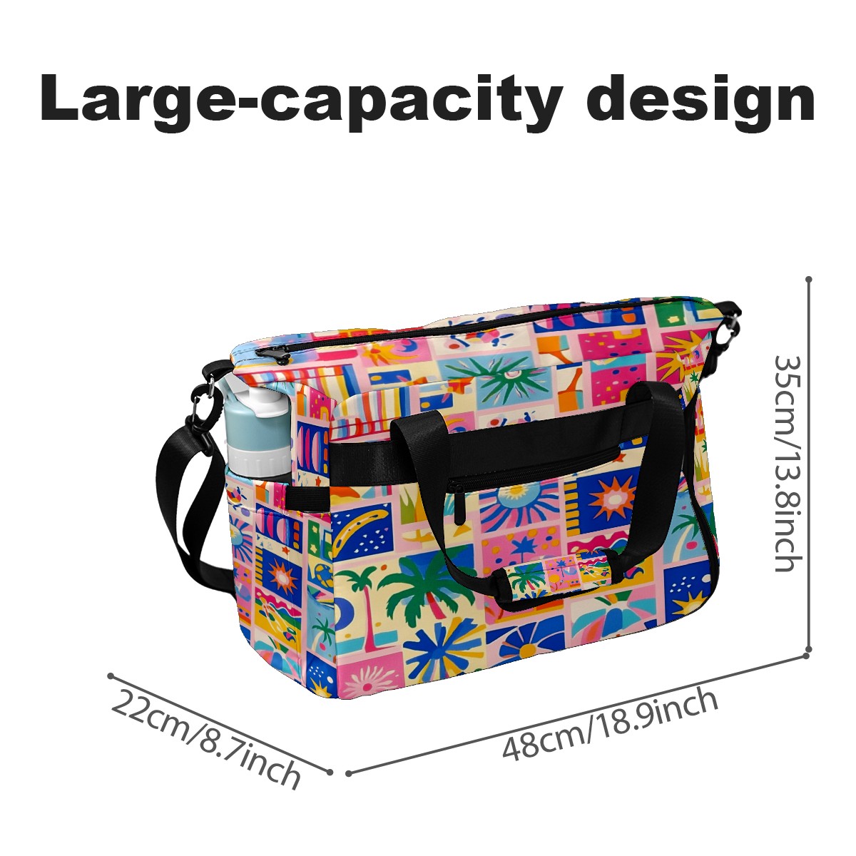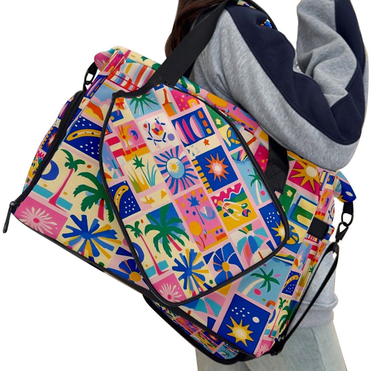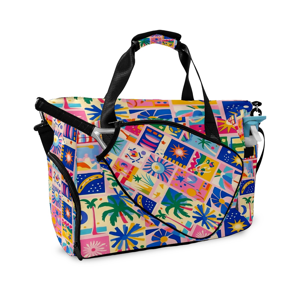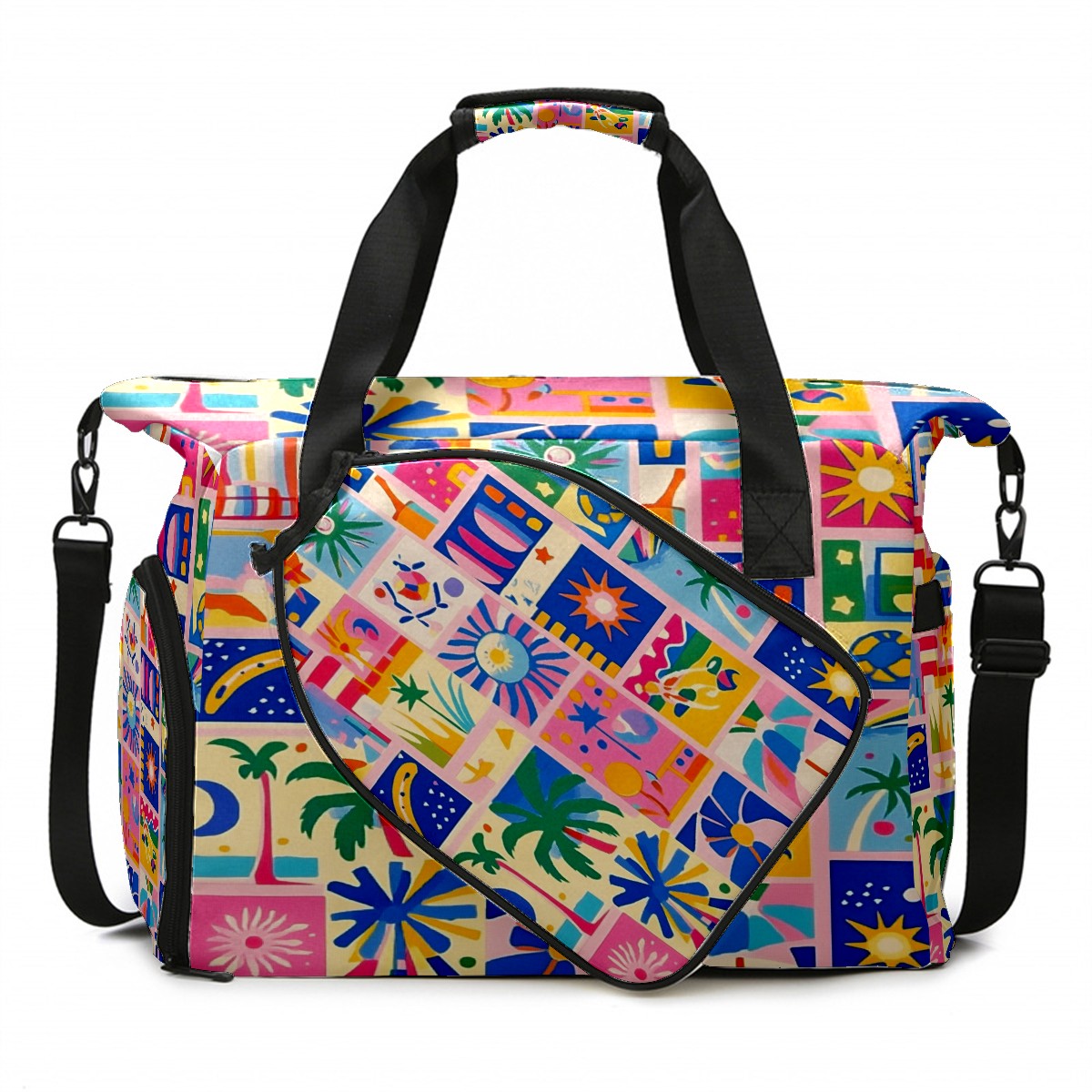 Pickleball Tote Bag Carryall for Paddles Balls and Accessories, Portable Lightweight Gear Bag for Players(Vibrant Pattern)