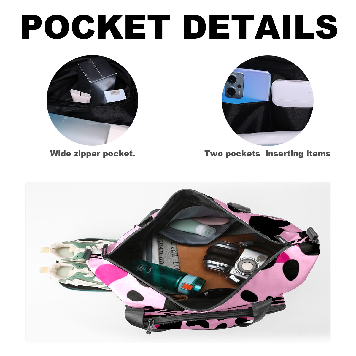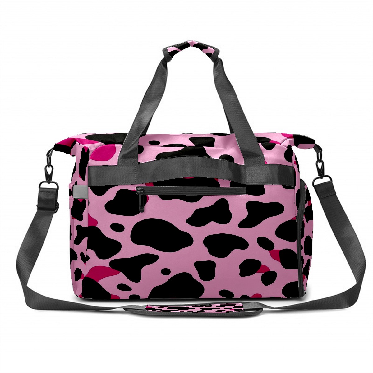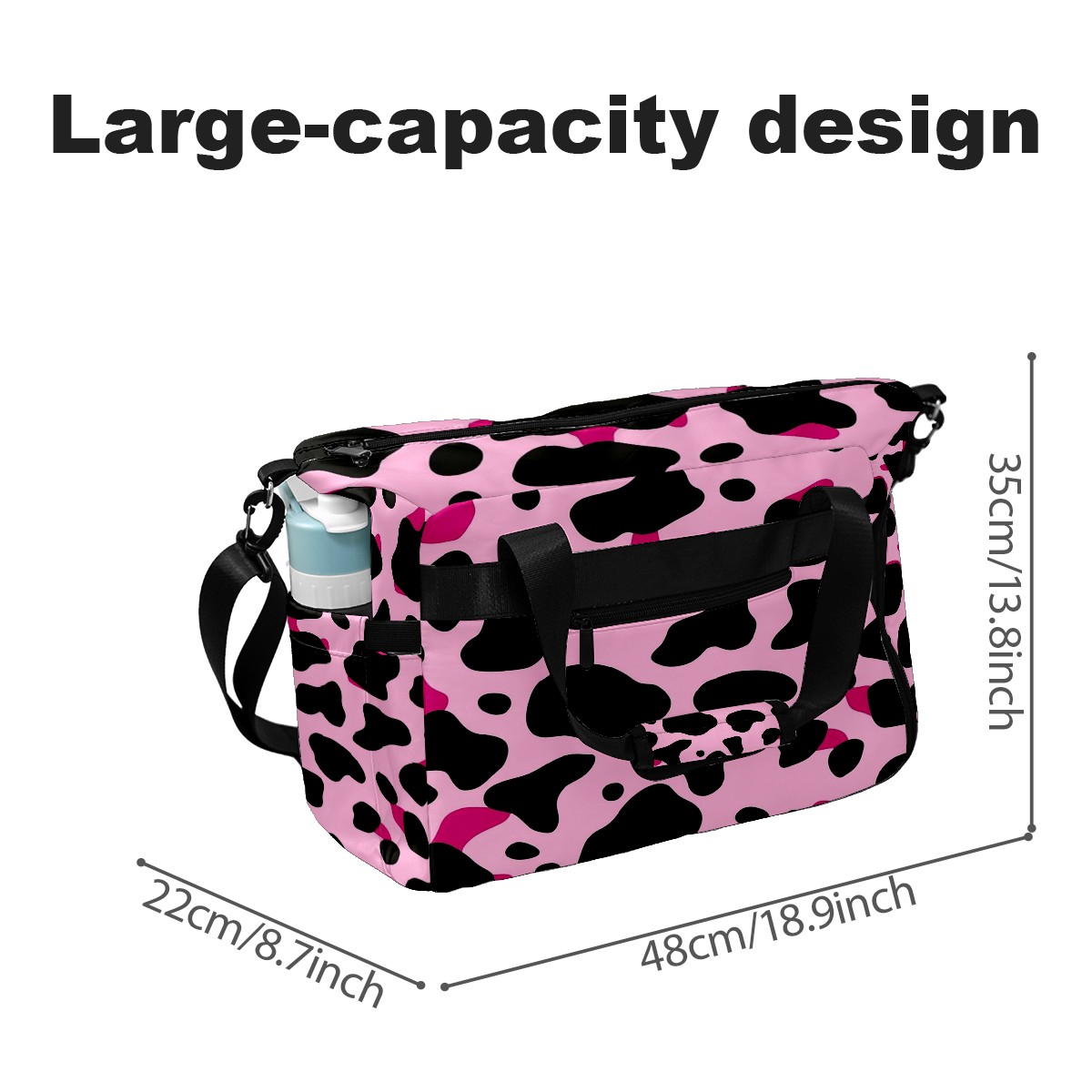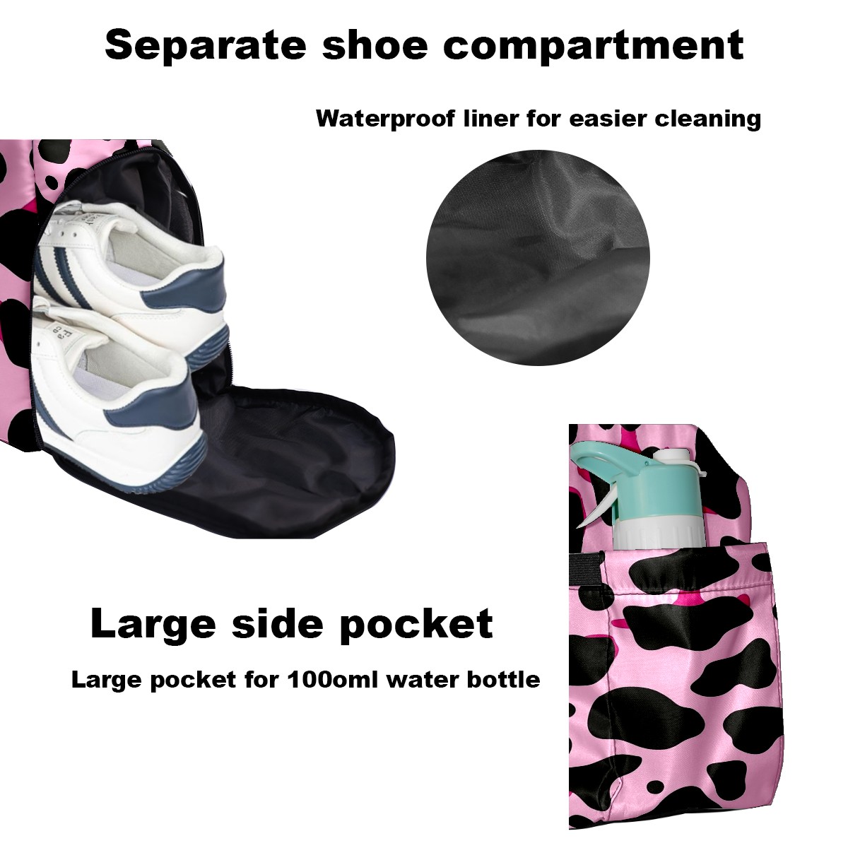 Pickleball Tote Bag Carryall for Paddles Balls and Accessories, Portable Lightweight Gear Bag for Players(Pink And Black Cow Print Pattern)