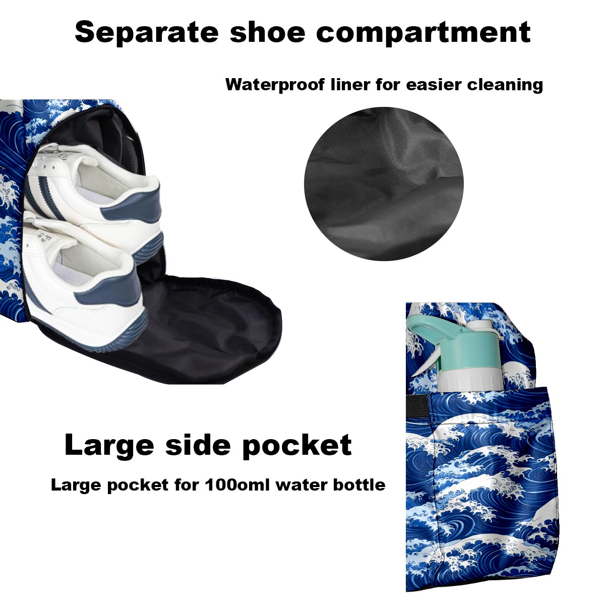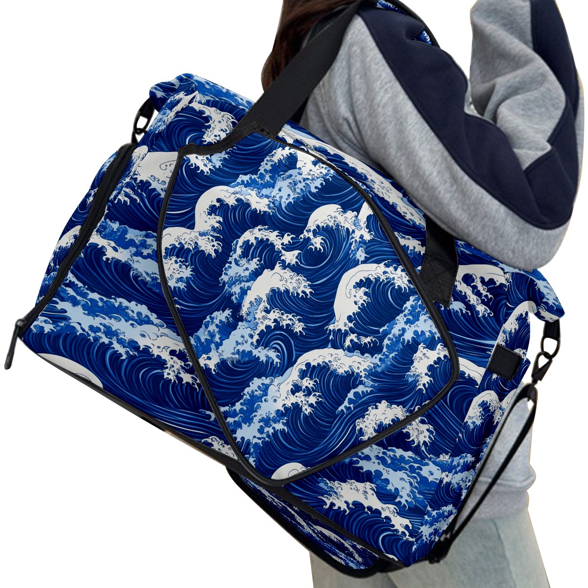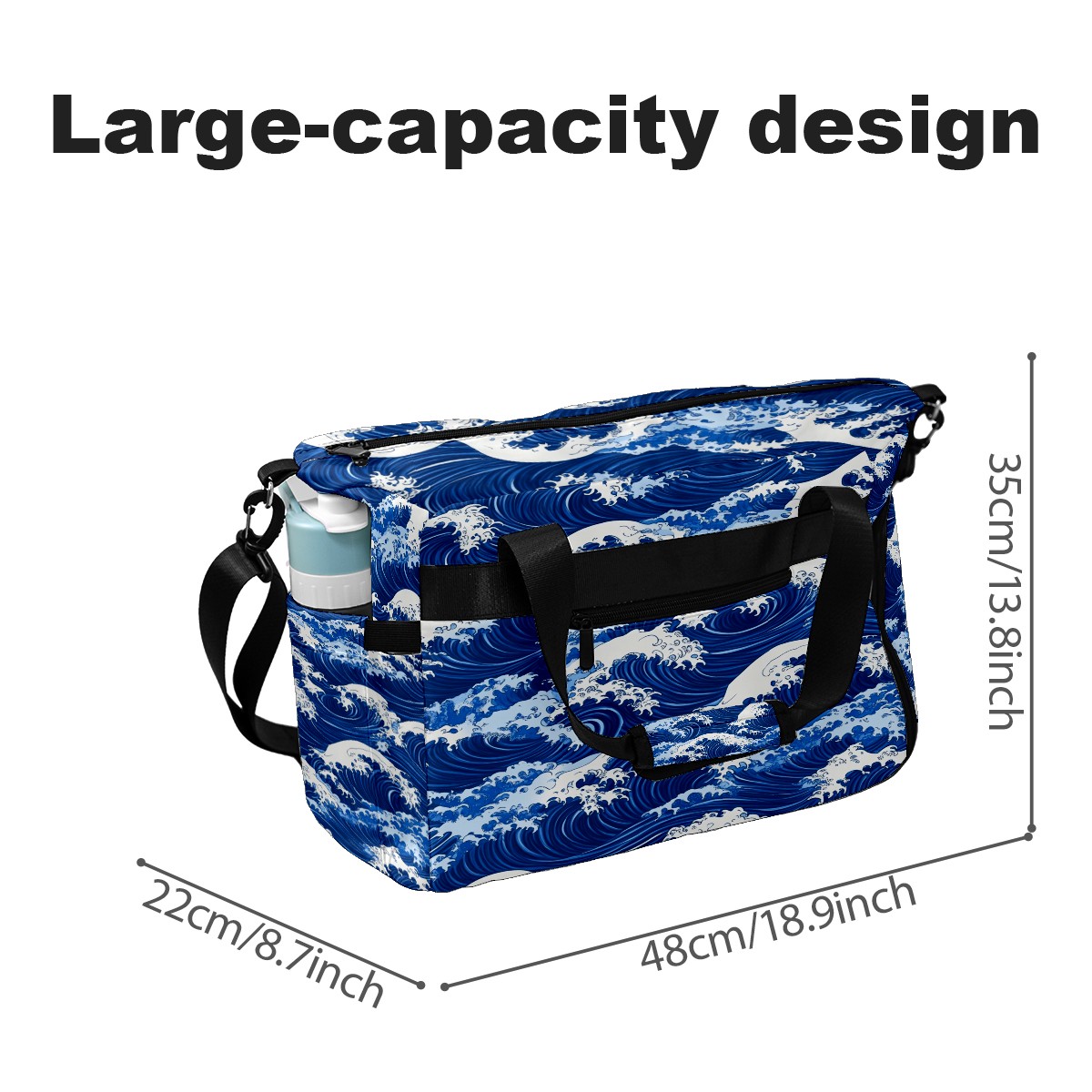 Pickleball Tote Bag Carryall for Paddles Balls and Accessories, Portable Lightweight Gear Bag for Players(Blue And White Ocean Wave)
