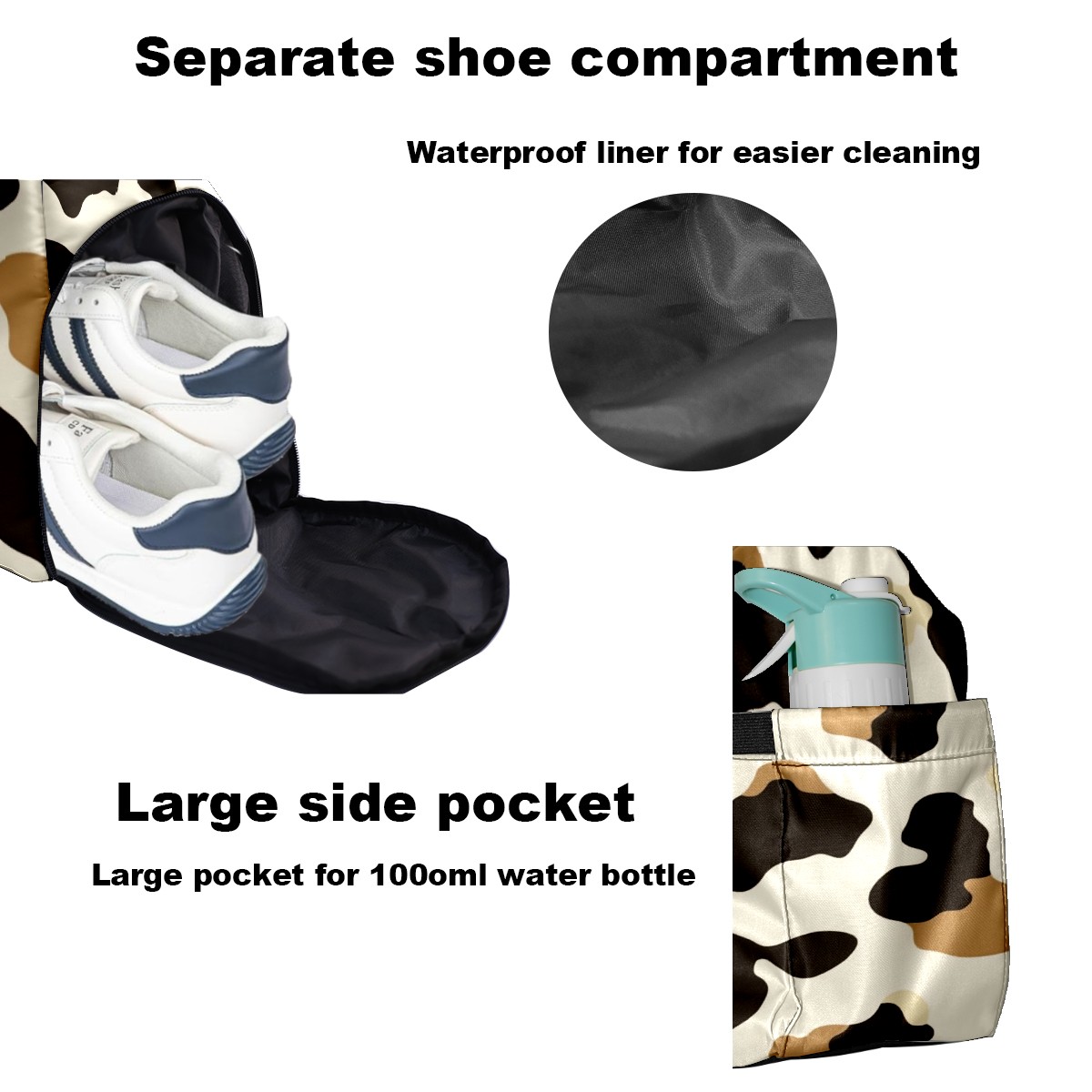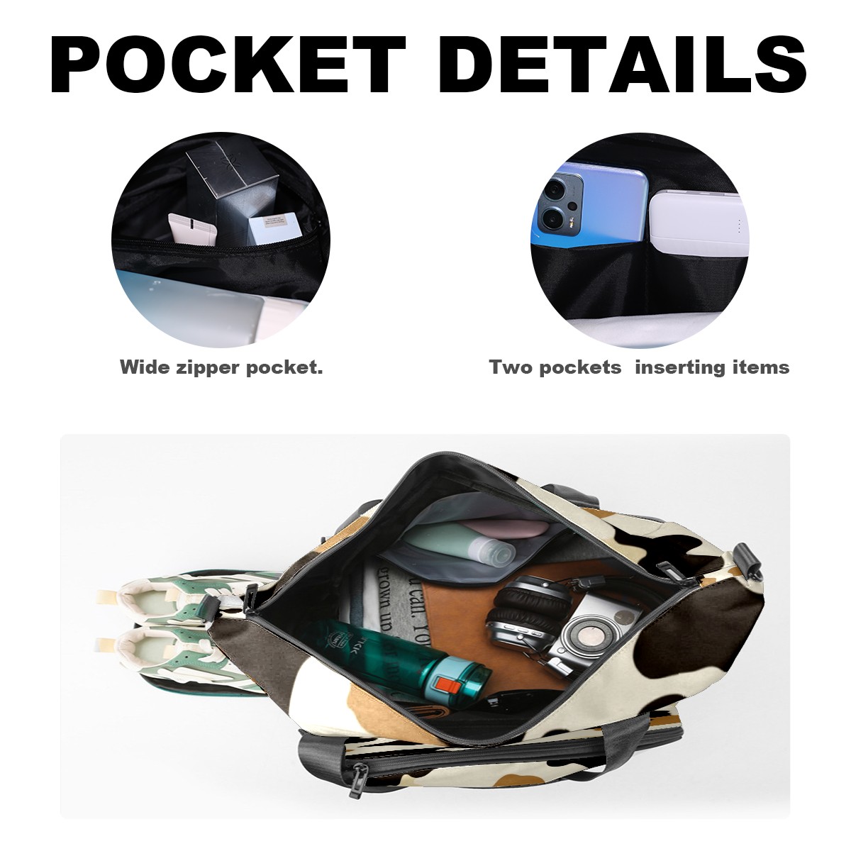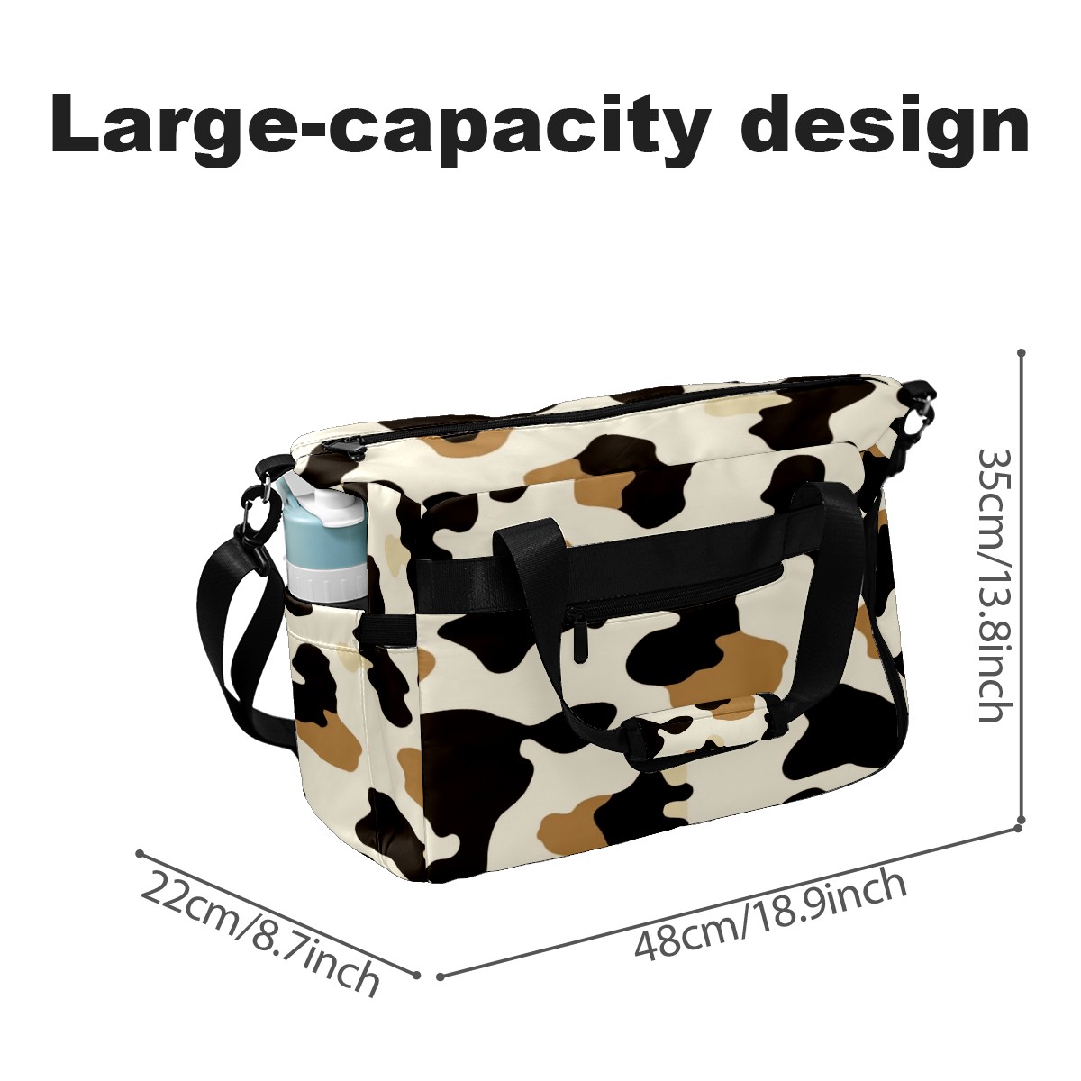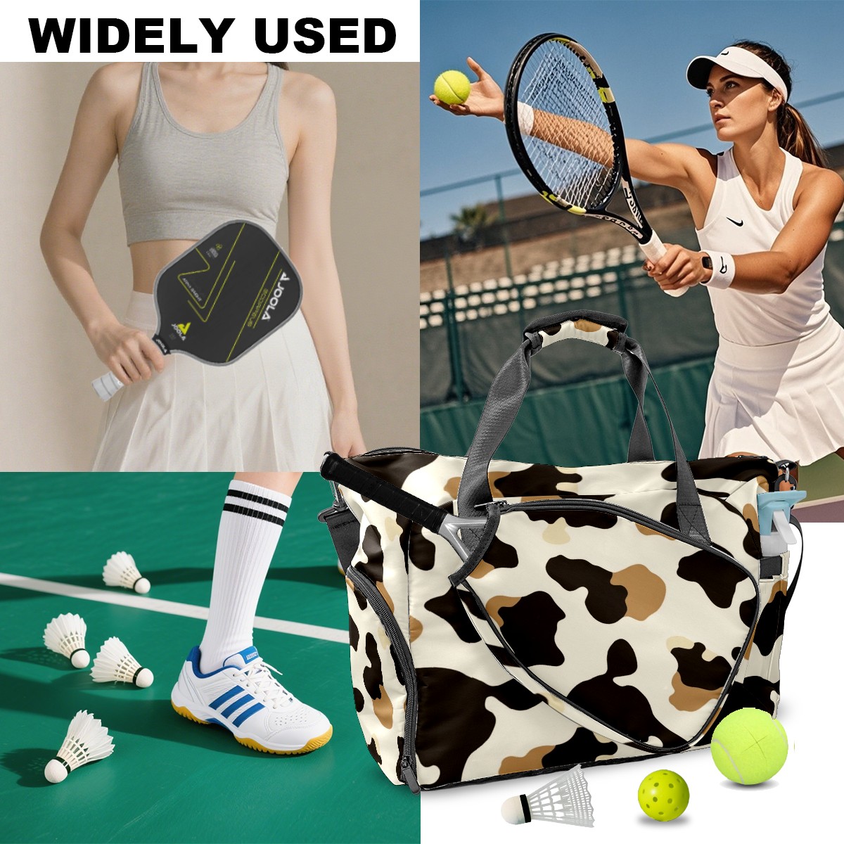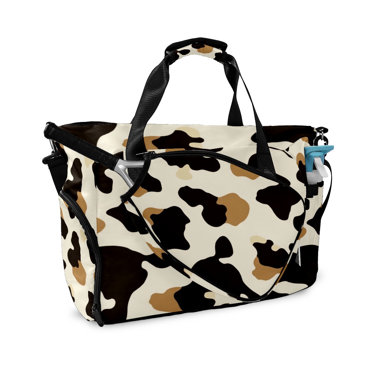 Pickleball Tote Bag Carryall for Paddles Balls and Accessories, Portable Lightweight Gear Bag for Players(Cow Print)