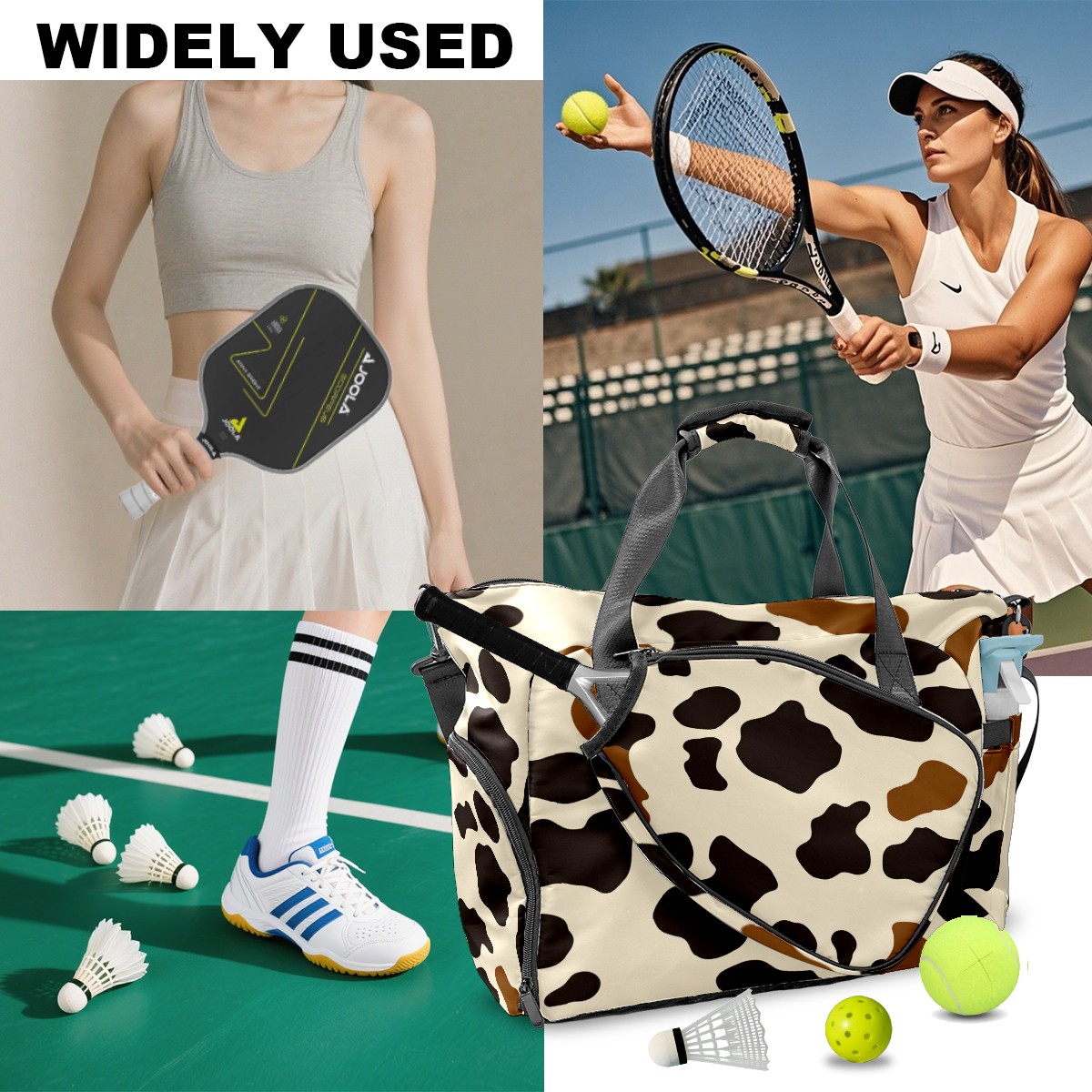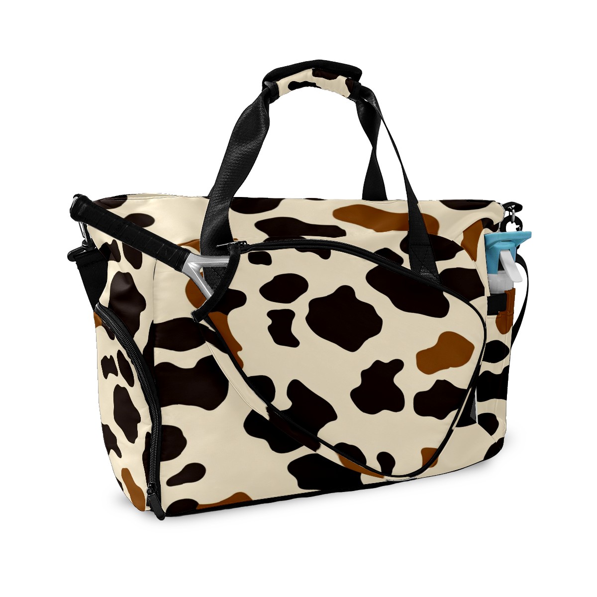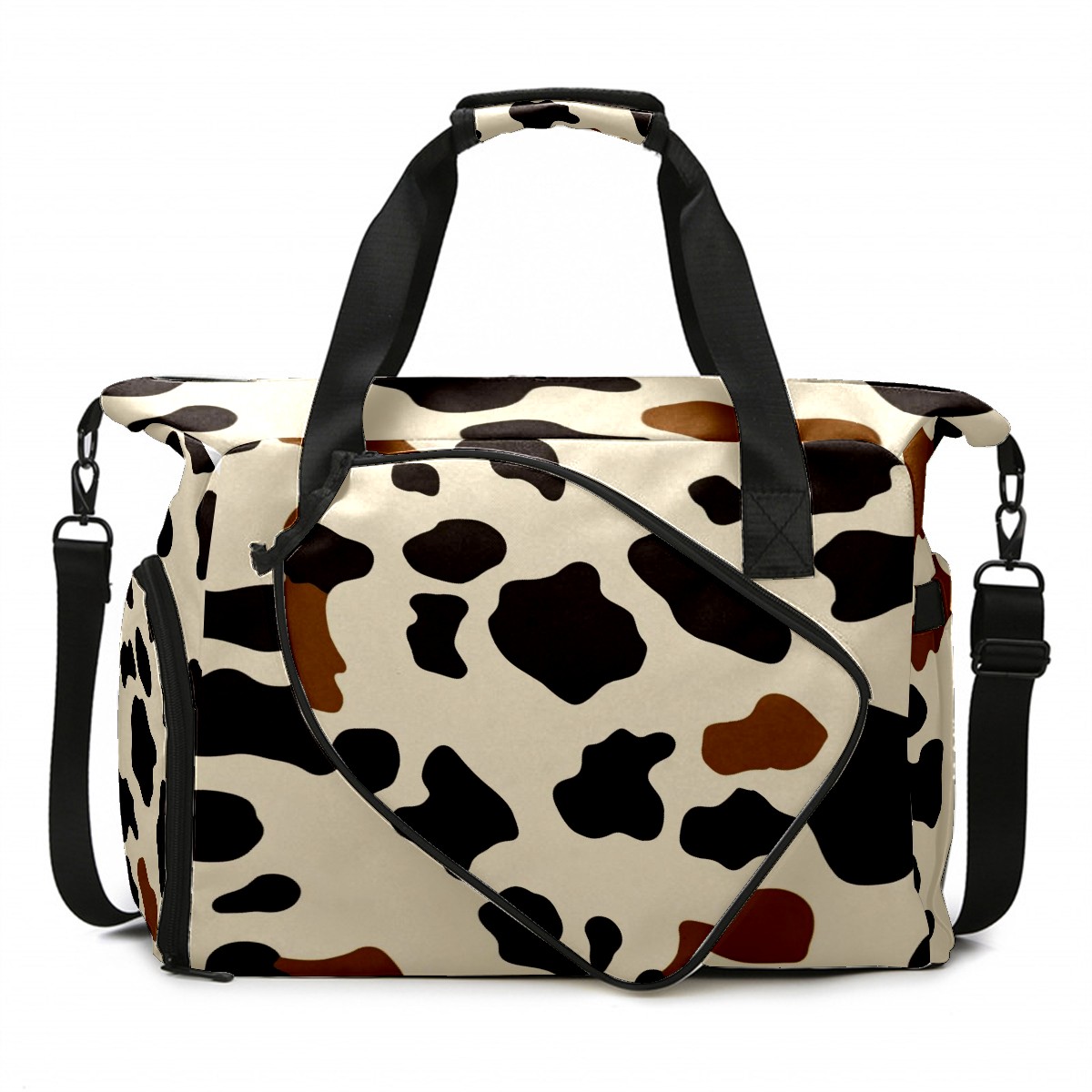 Pickleball Tote Bag Carryall for Paddles Balls and Accessories, Portable Lightweight Gear Bag for Players(Cow Print Pattern)