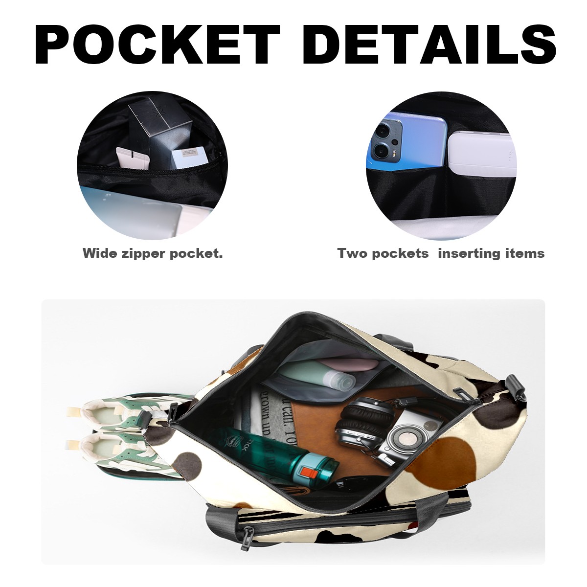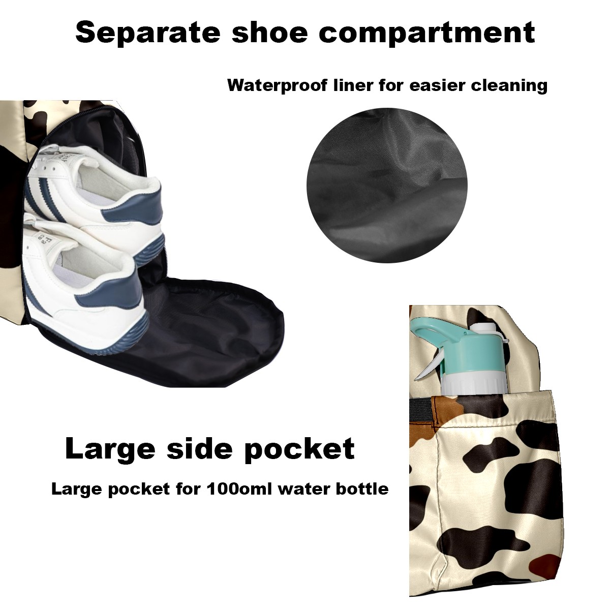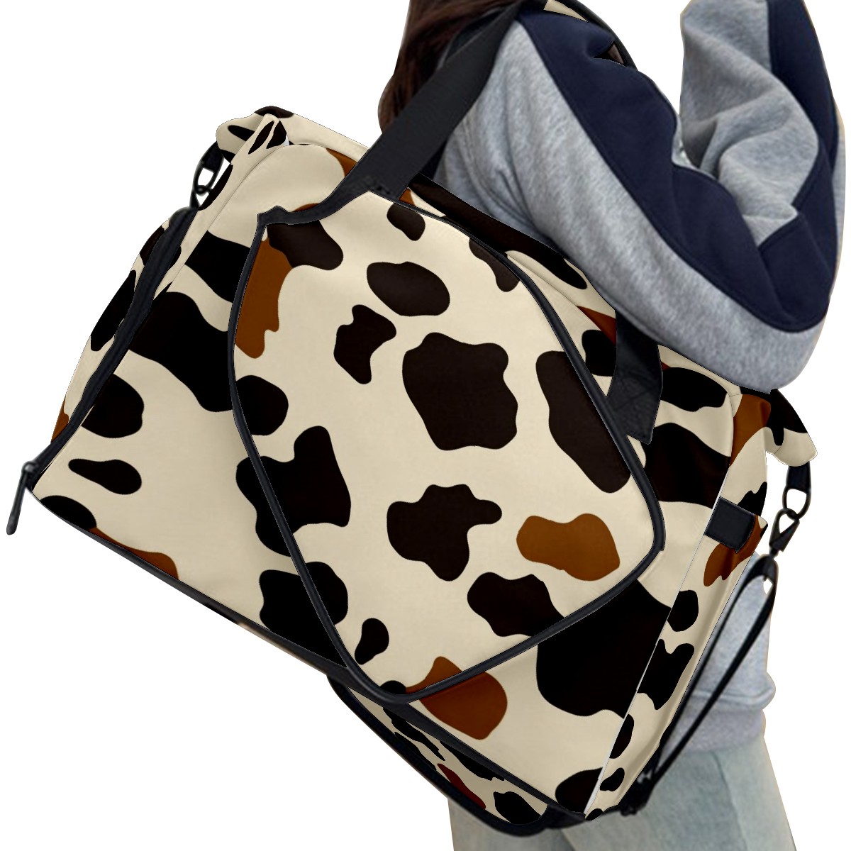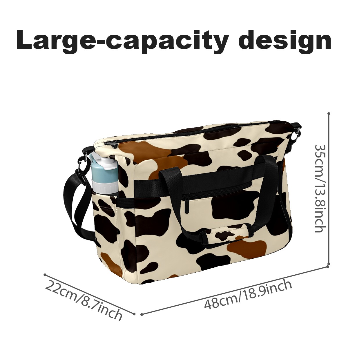 Pickleball Tote Bag Carryall for Paddles Balls and Accessories, Portable Lightweight Gear Bag for Players(Cow Print Pattern)