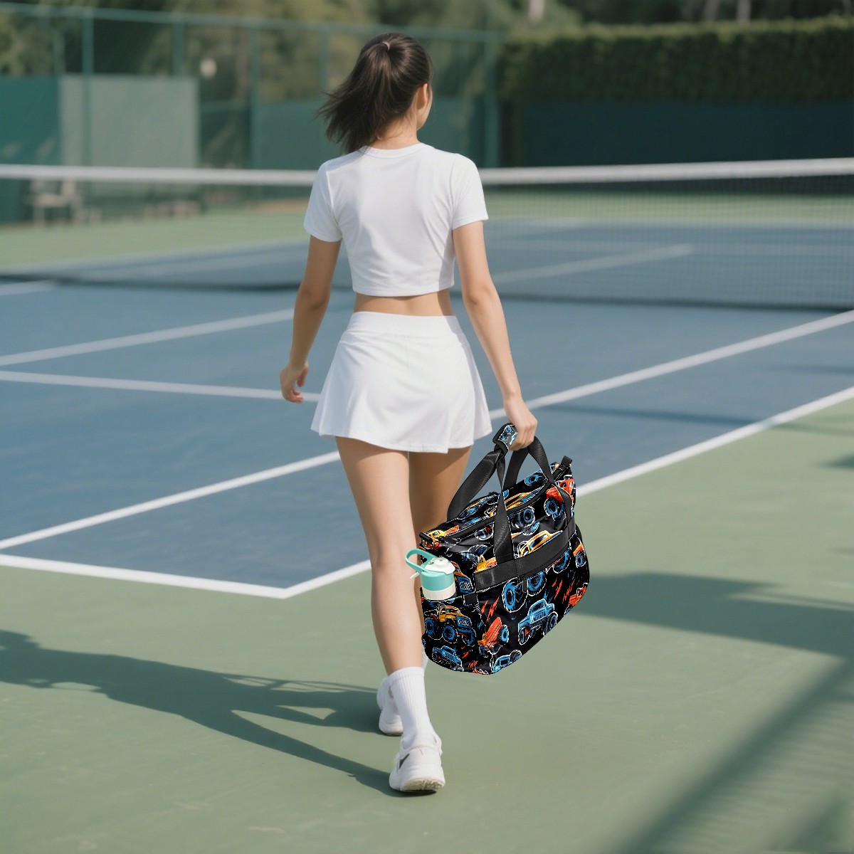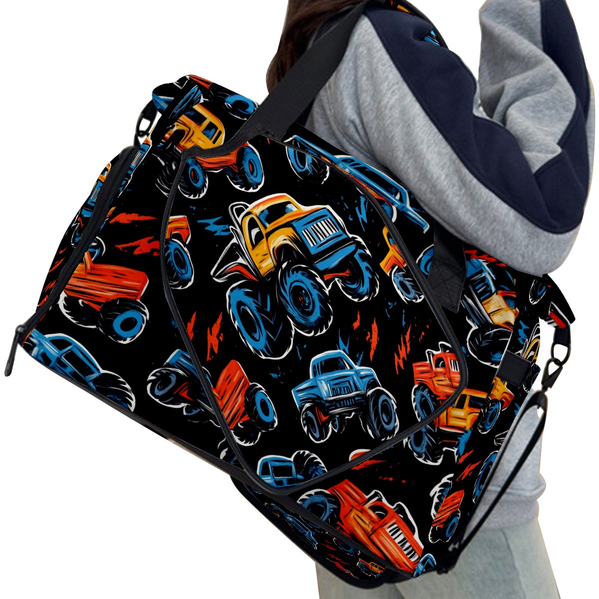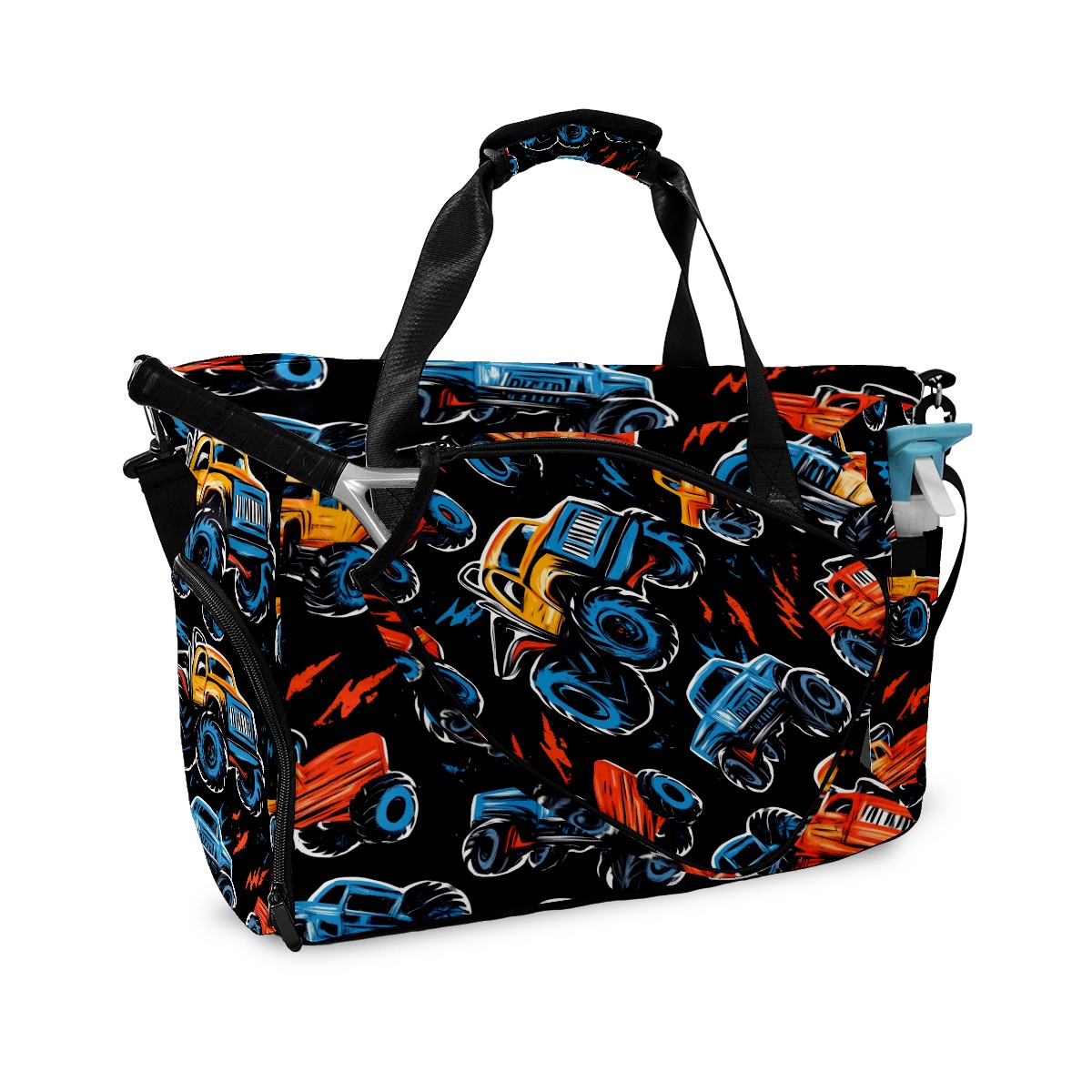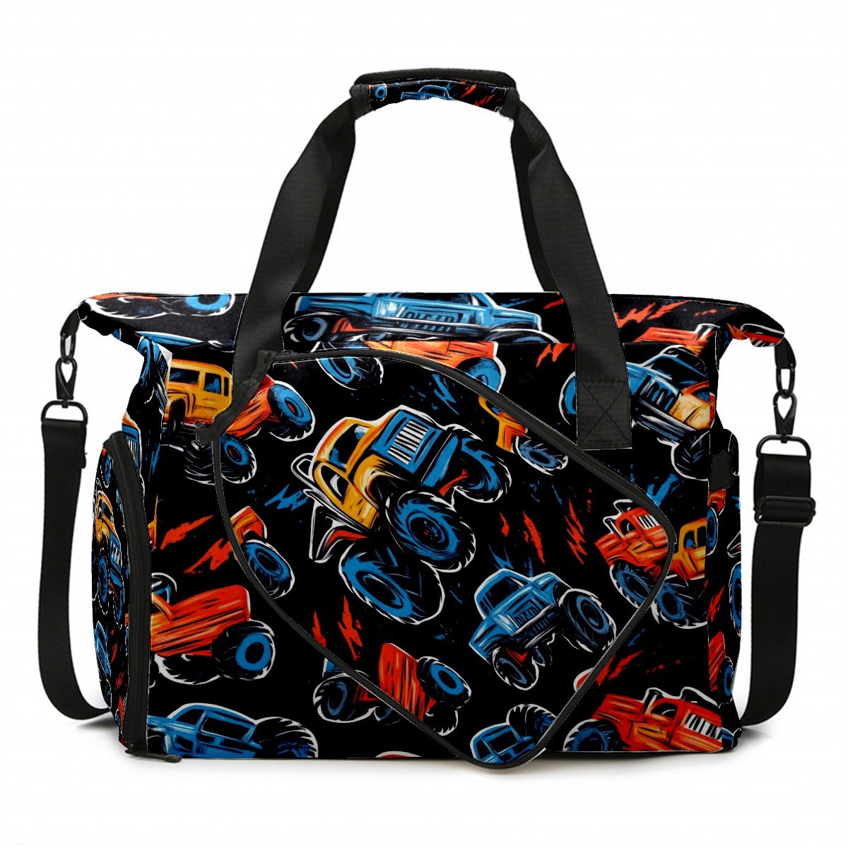 Pickleball Tote Bag Carryall for Paddles Balls and Accessories, Portable Lightweight Gear Bag for Players(Monster Trucks)