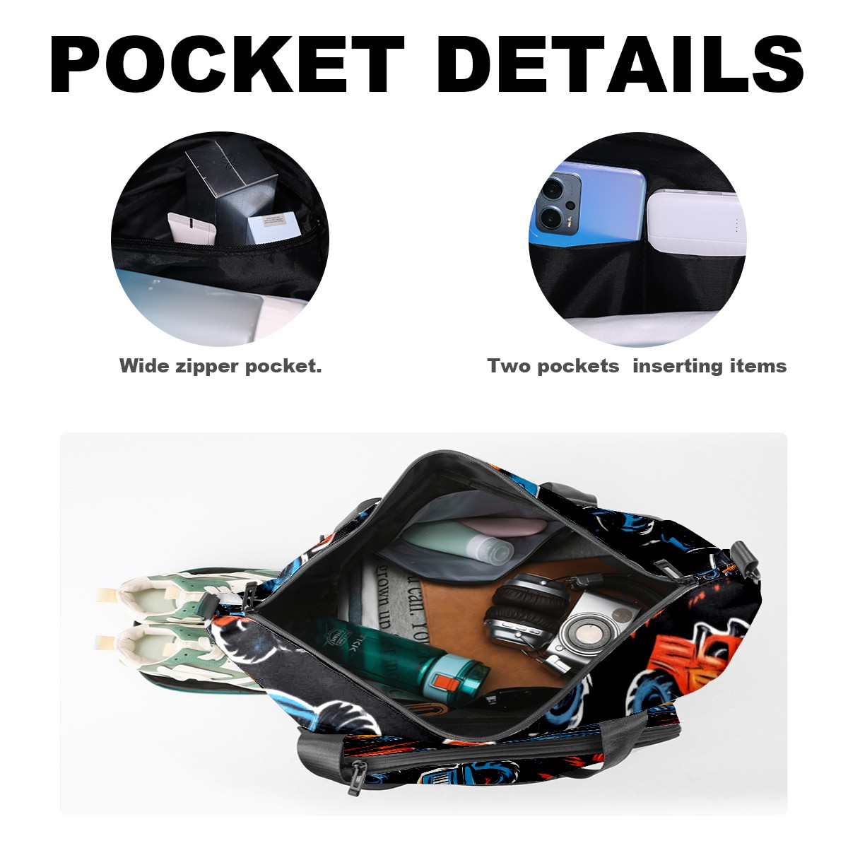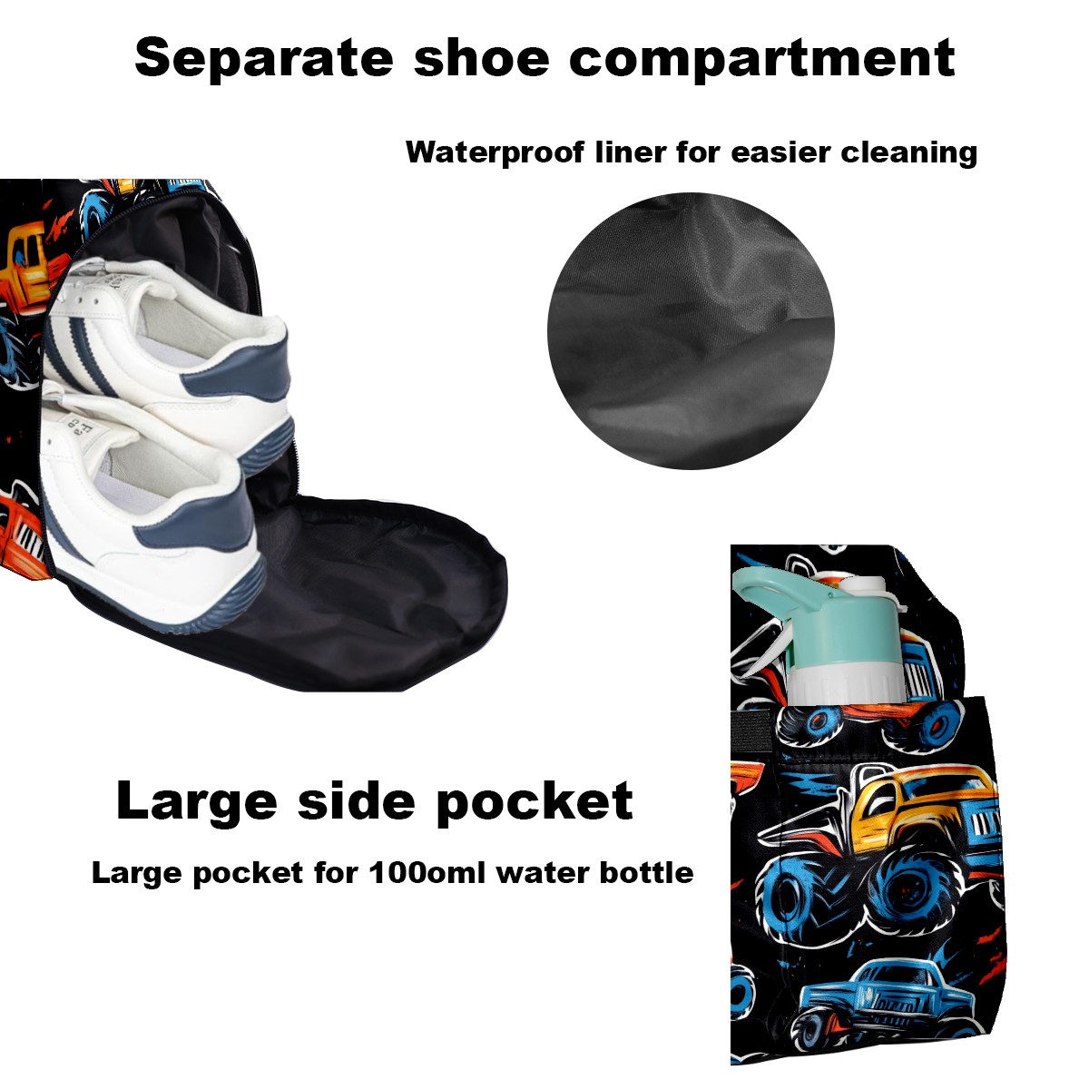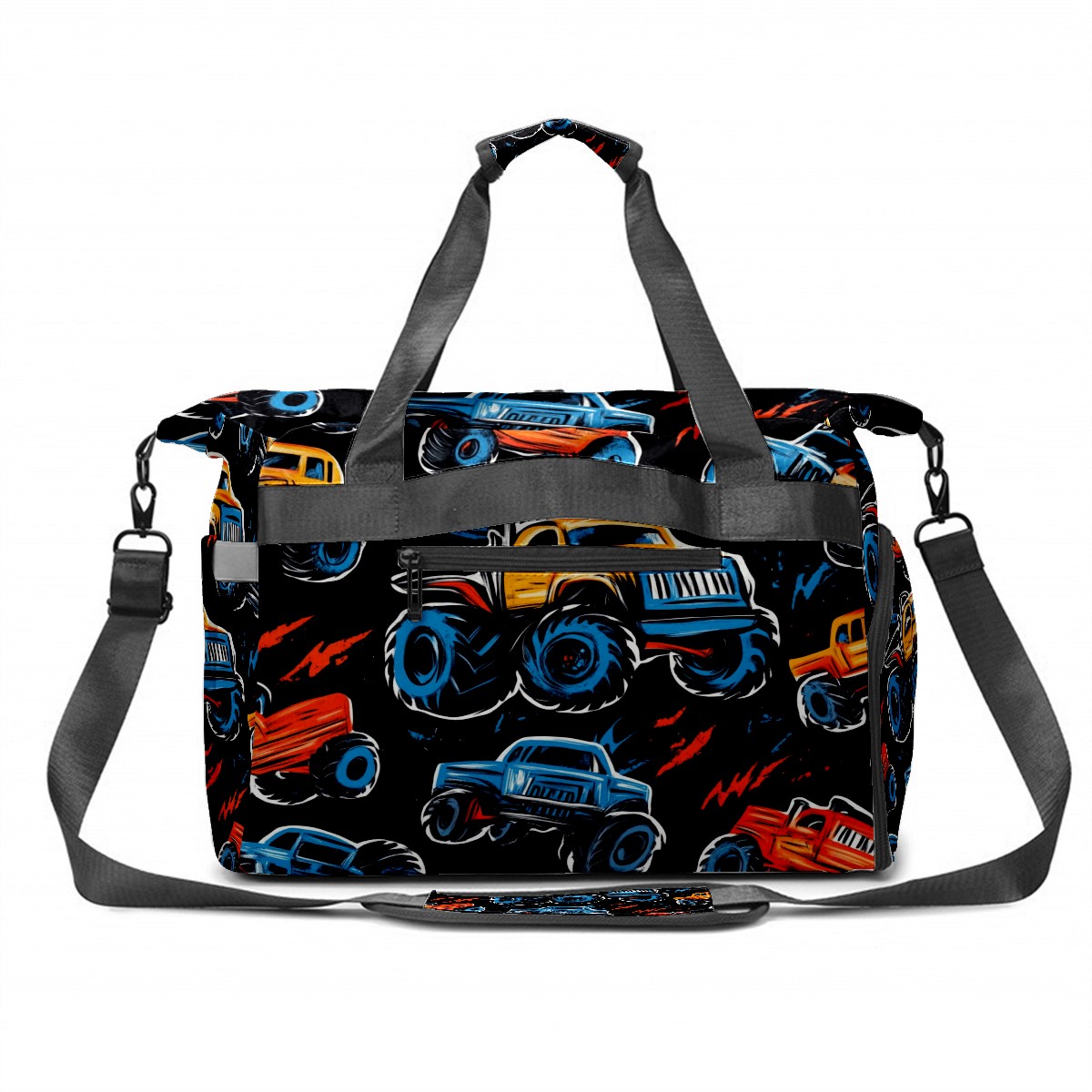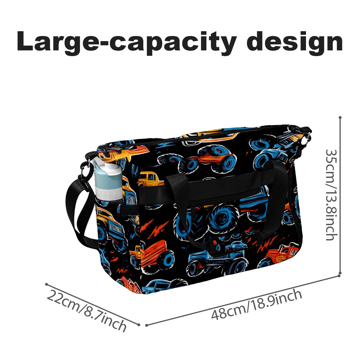 Pickleball Tote Bag Carryall for Paddles Balls and Accessories, Portable Lightweight Gear Bag for Players(Monster Trucks)