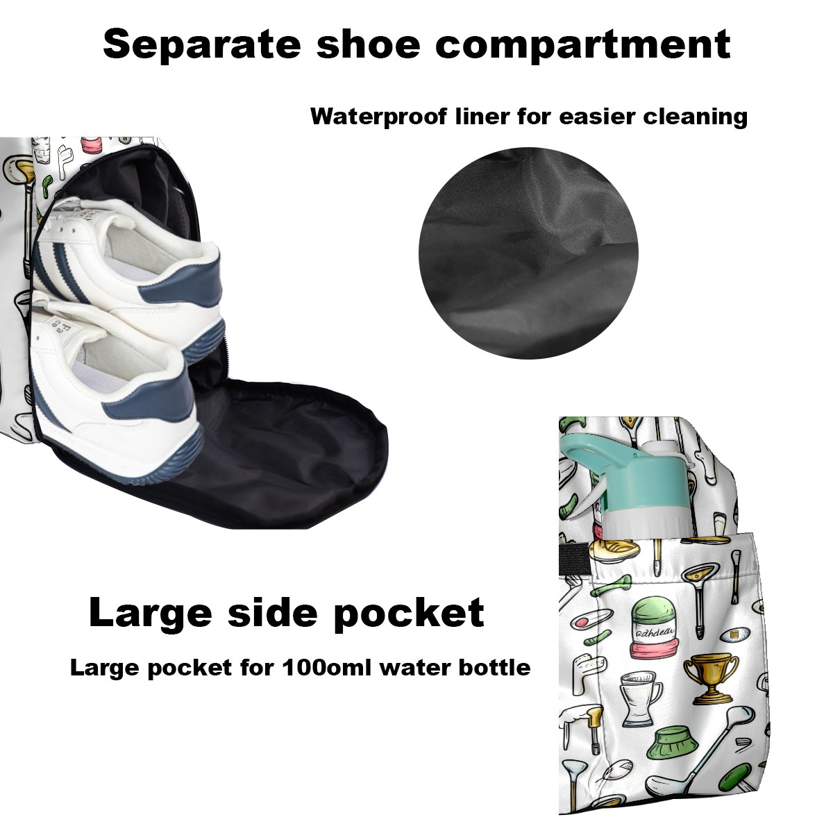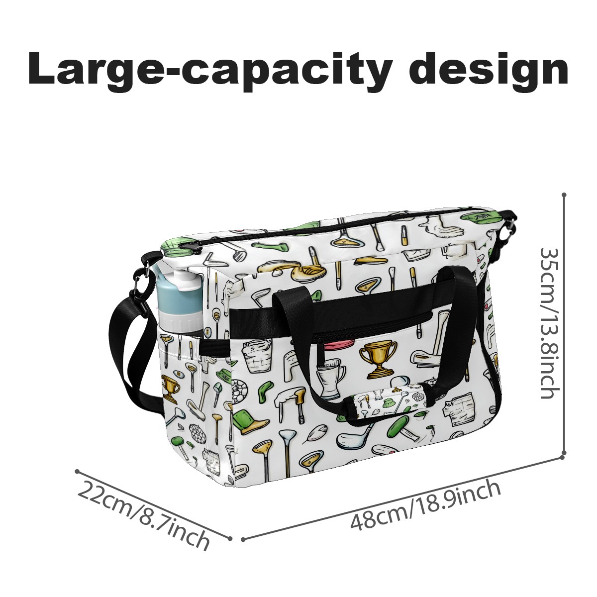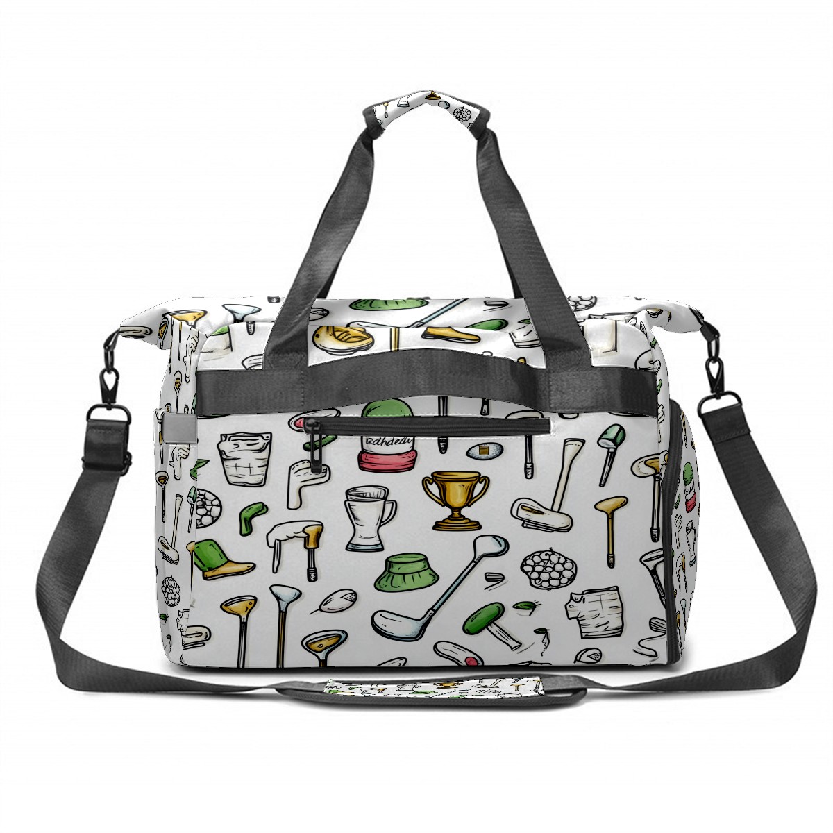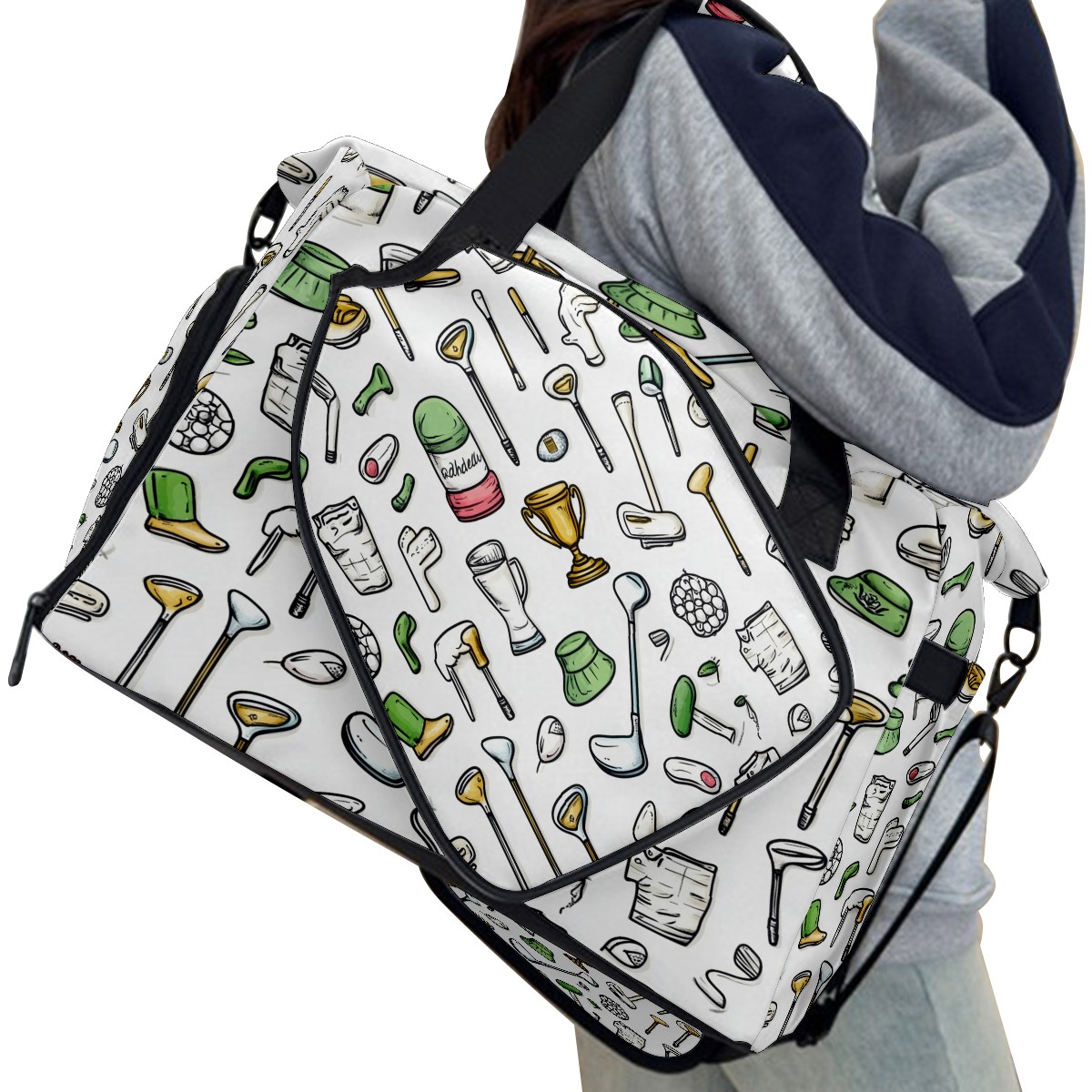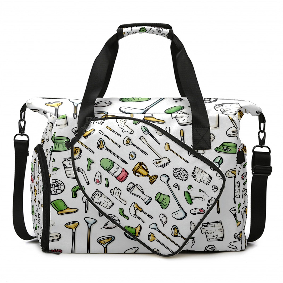 Pickleball Tote Bag Carryall for Paddles Balls and Accessories, Portable Lightweight Gear Bag for Players(Hand-drawn Golf Elements)