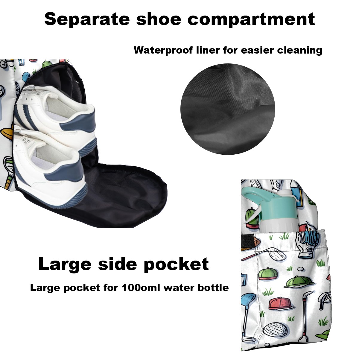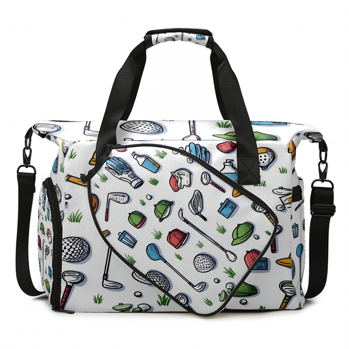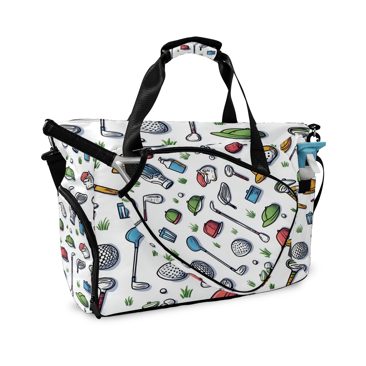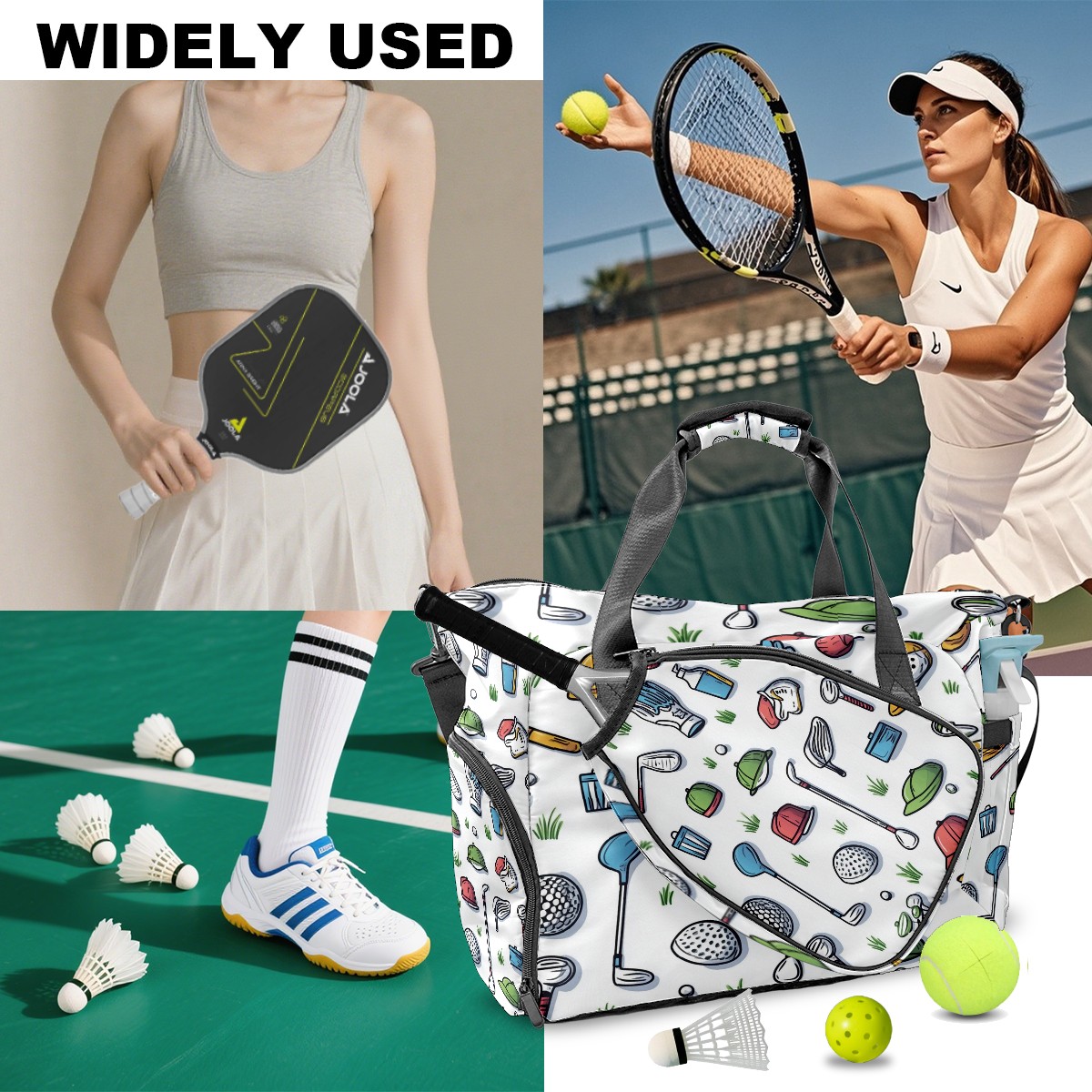 Pickleball Tote Bag Carryall for Paddles Balls and Accessories, Portable Lightweight Gear Bag for Players(Golf Elements)