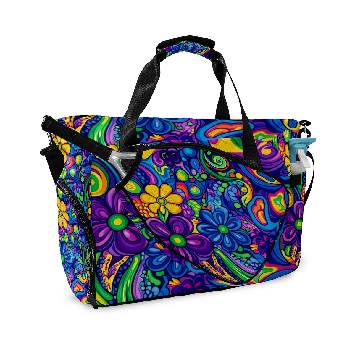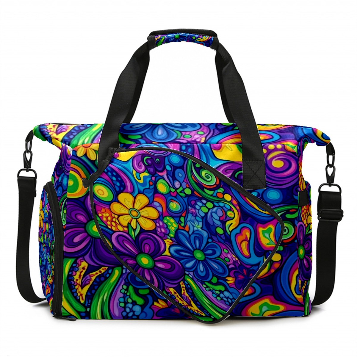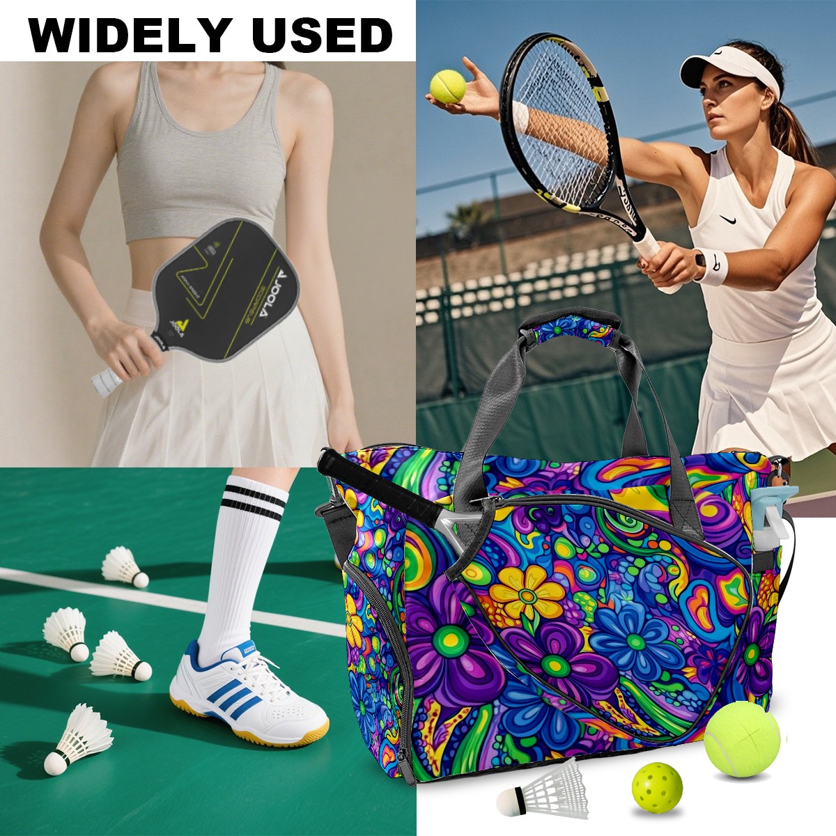 Pickleball Tote Bag Carryall for Paddles Balls and Accessories, Portable Lightweight Gear Bag for Players(Psychedelic Patterns)