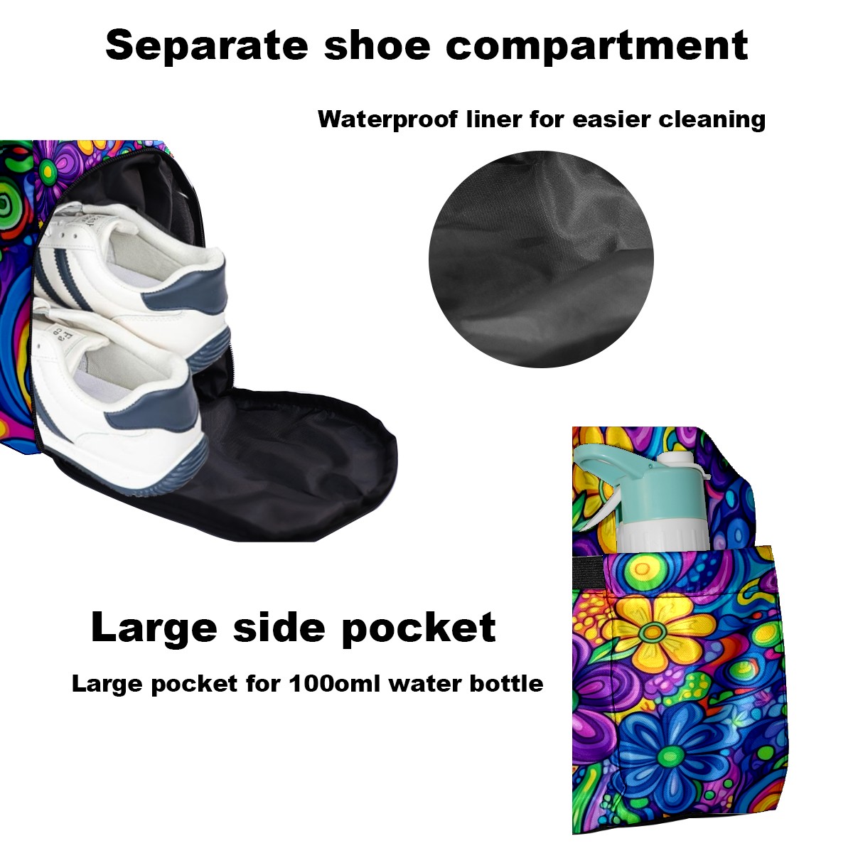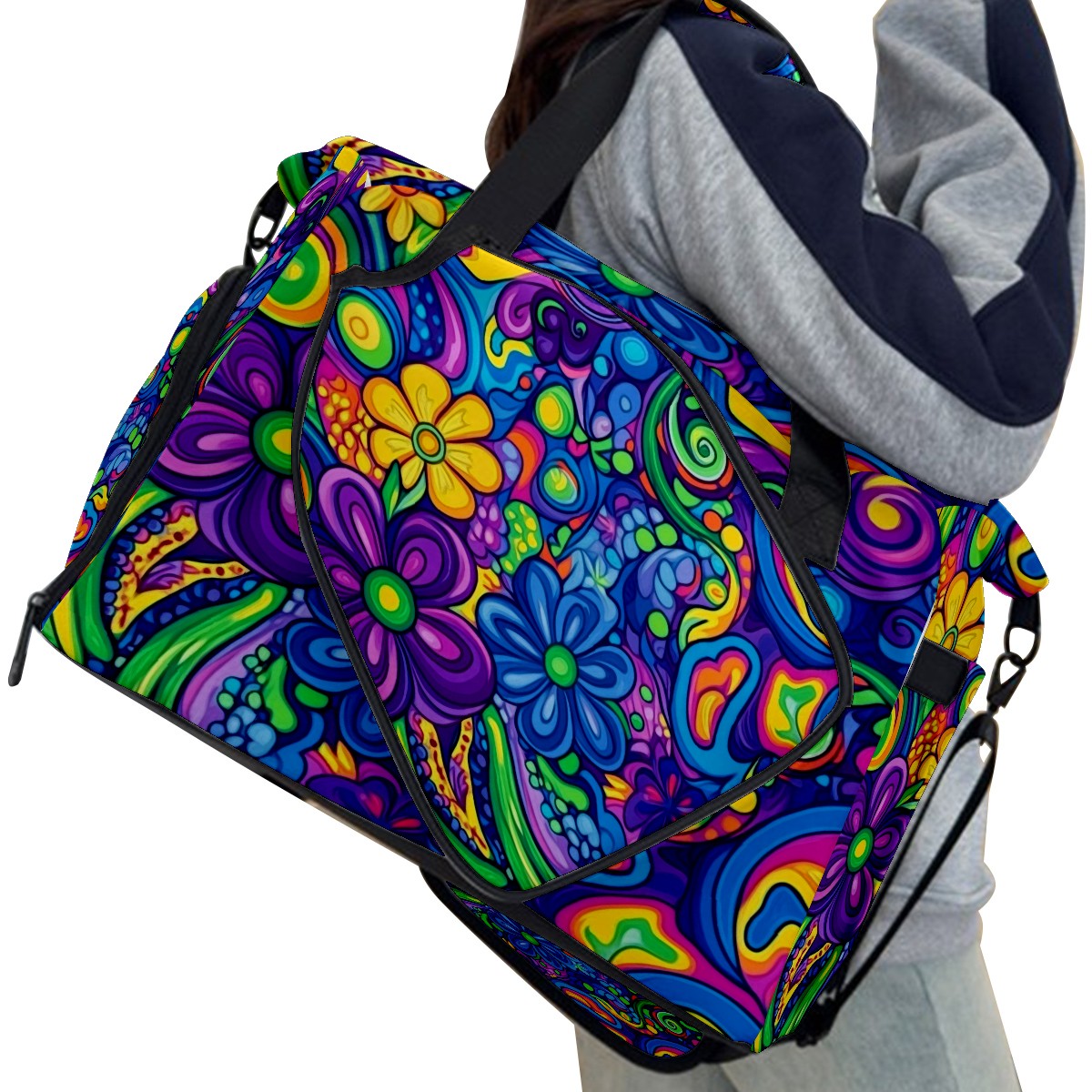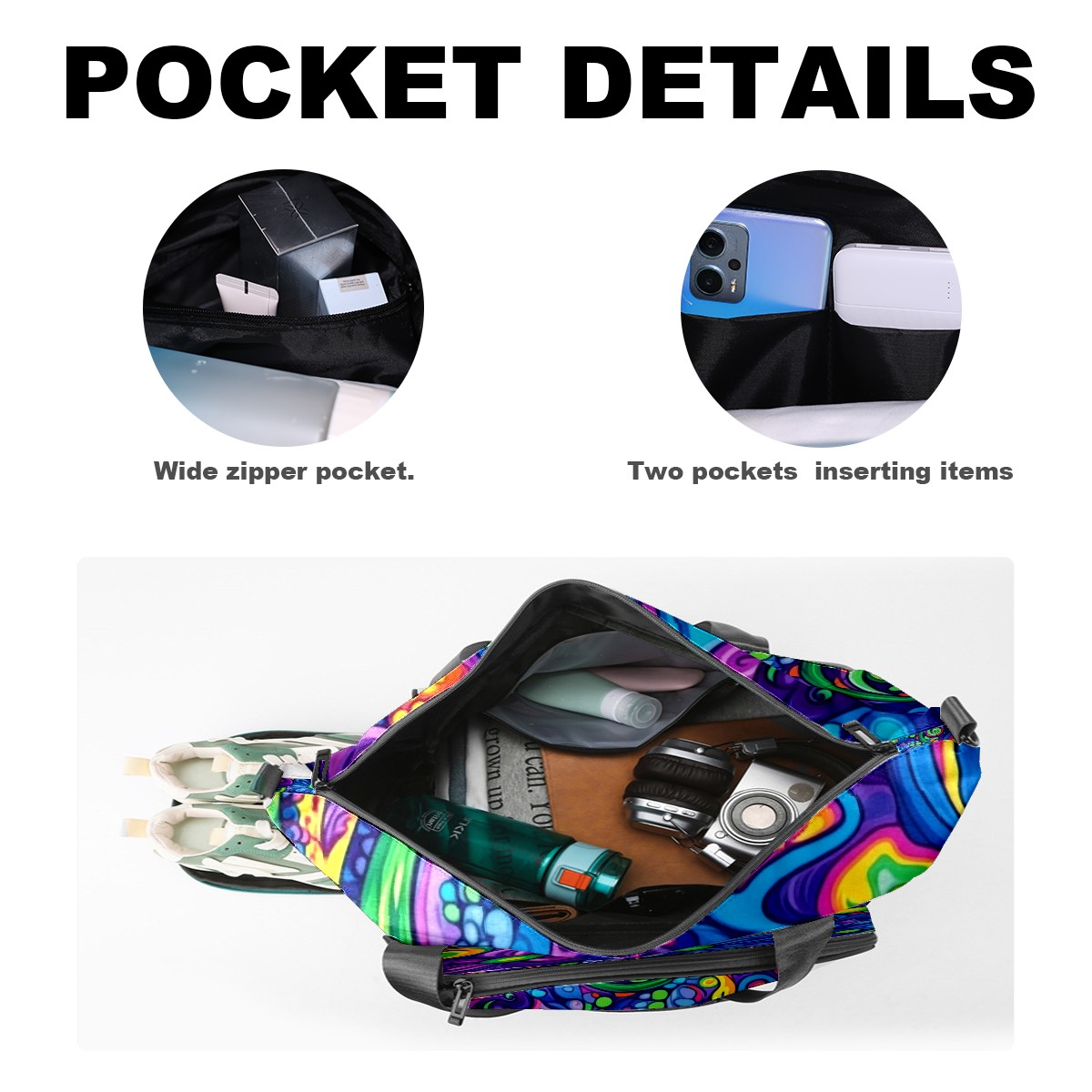 Pickleball Tote Bag Carryall for Paddles Balls and Accessories, Portable Lightweight Gear Bag for Players(Psychedelic Patterns)