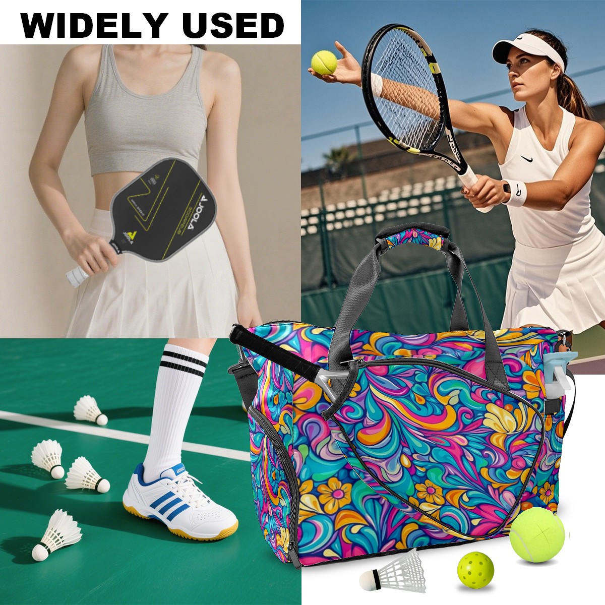 <p>Meet your ultimate court companion – the premium pickleball bag designed for players who demand durability and smart organization. Whether you're heading to a local tournament or a casual game with friends, our meticulously crafted bag keeps your gear secure, accessible, and tournament-ready.</p> <p><b>Built for the Active Lifestyle:</b></p> <p>From casual pickleball games to competitive leagues, this bag adapts to your needs. Store paddles, balls, towels, water bottles, and phones in intelligently placed pockets. The nylon fabric construction withstands court abrasions and daily use season after season.</p>