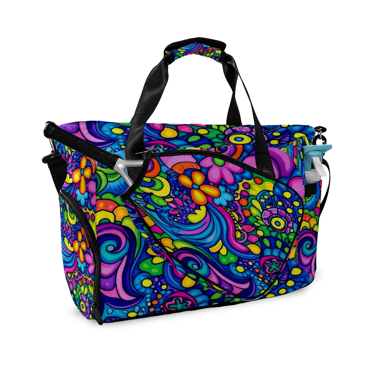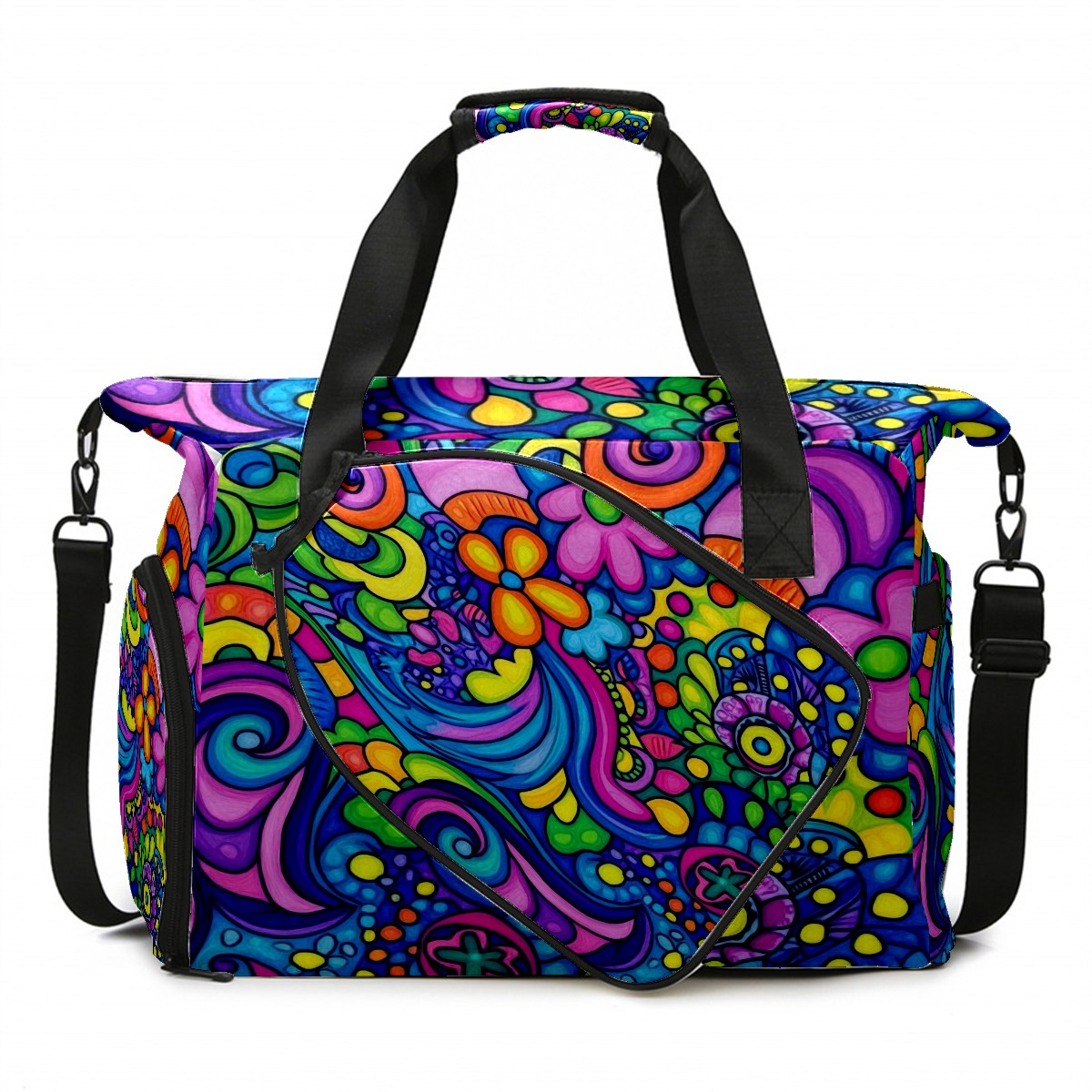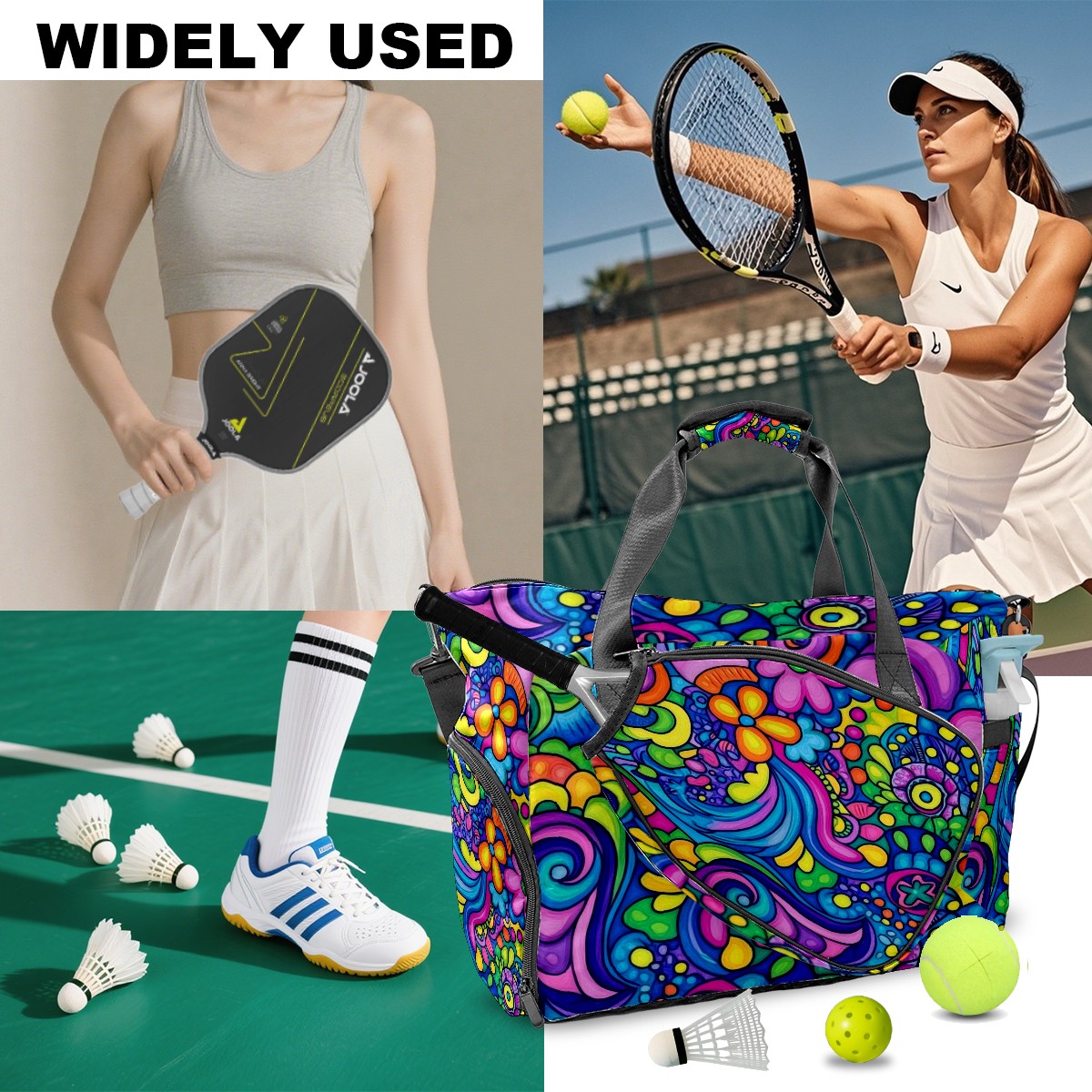 Pickleball Tote Bag Carryall for Paddles Balls and Accessories, Portable Lightweight Gear Bag for Players(Psychedelic Pattern)