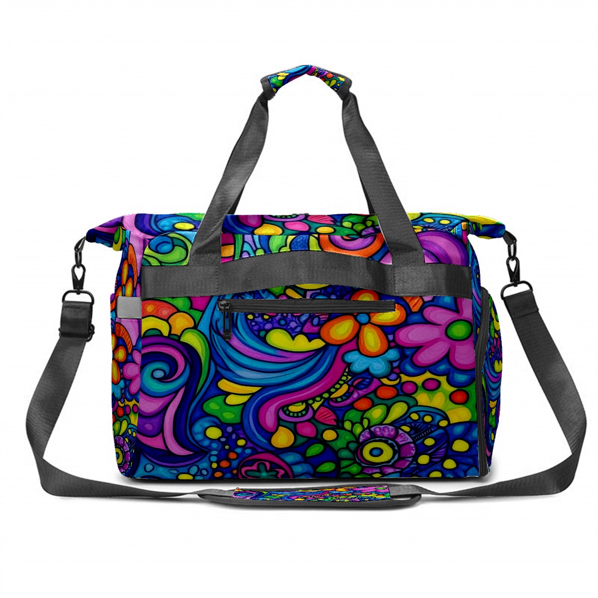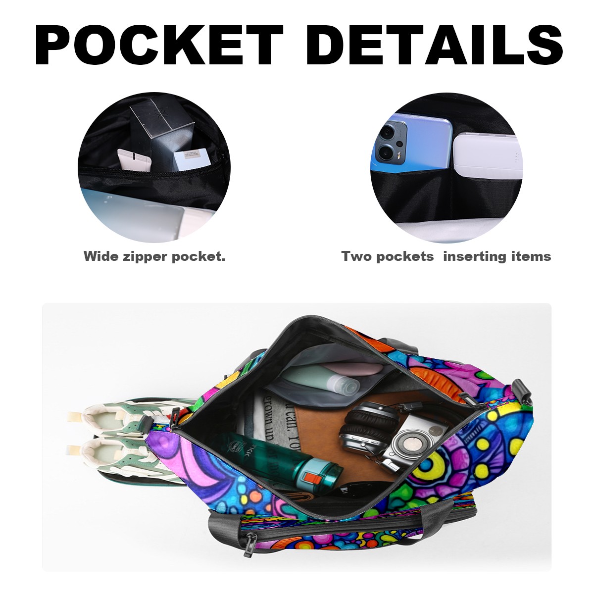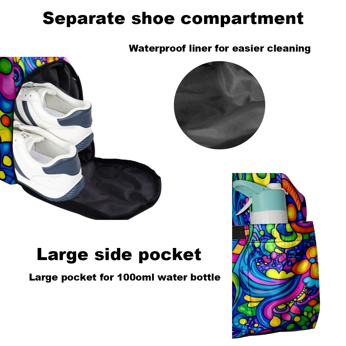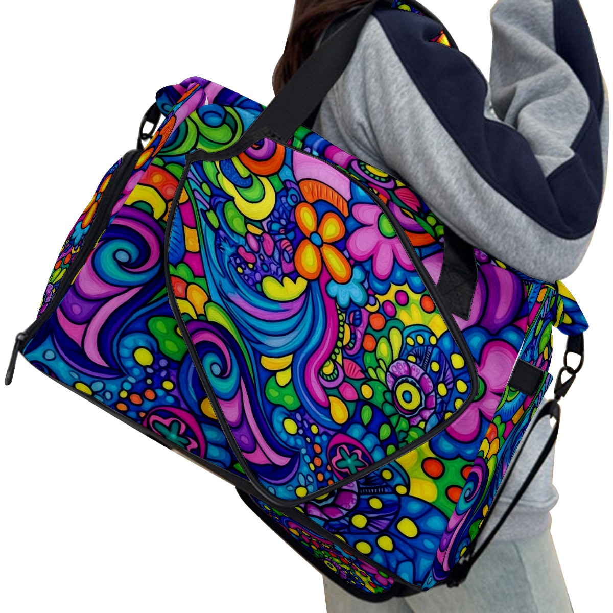 Pickleball Tote Bag Carryall for Paddles Balls and Accessories, Portable Lightweight Gear Bag for Players(Psychedelic Pattern)