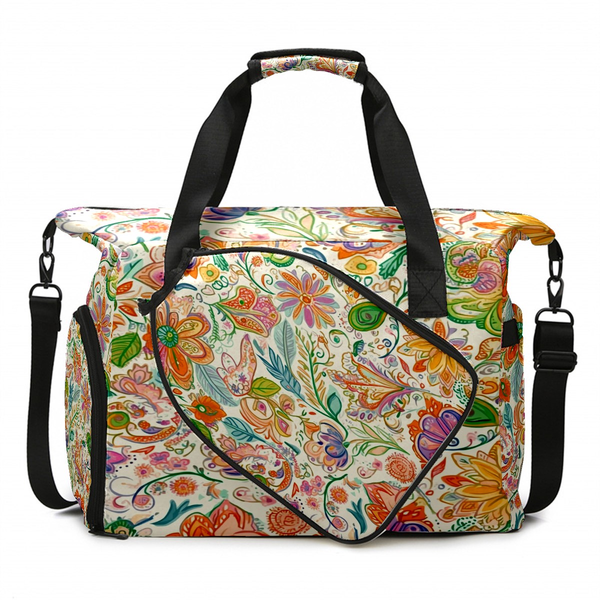 Pickleball Tote Bag Carryall for Paddles Balls and Accessories, Portable Lightweight Gear Bag for Players(Intricate Doodle)