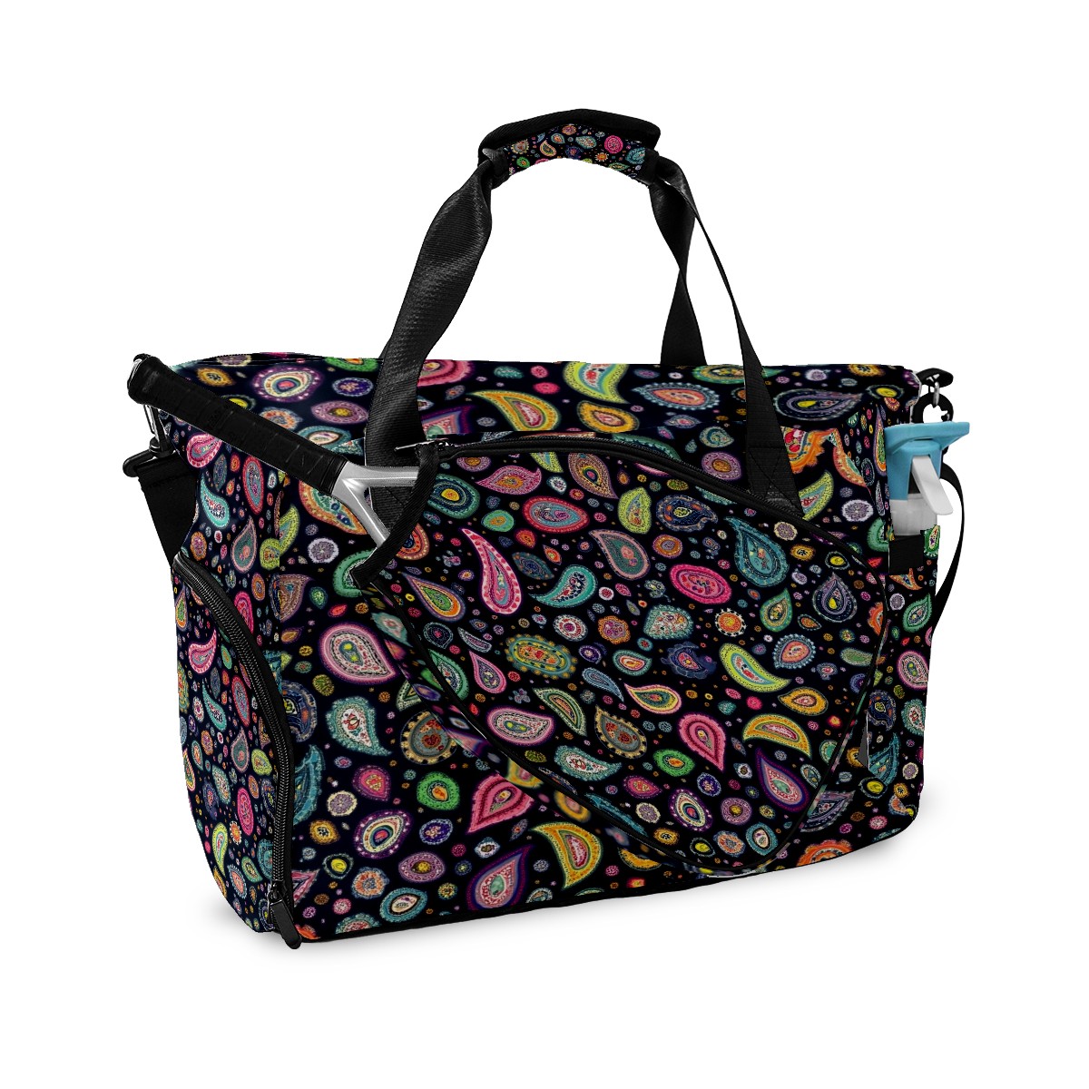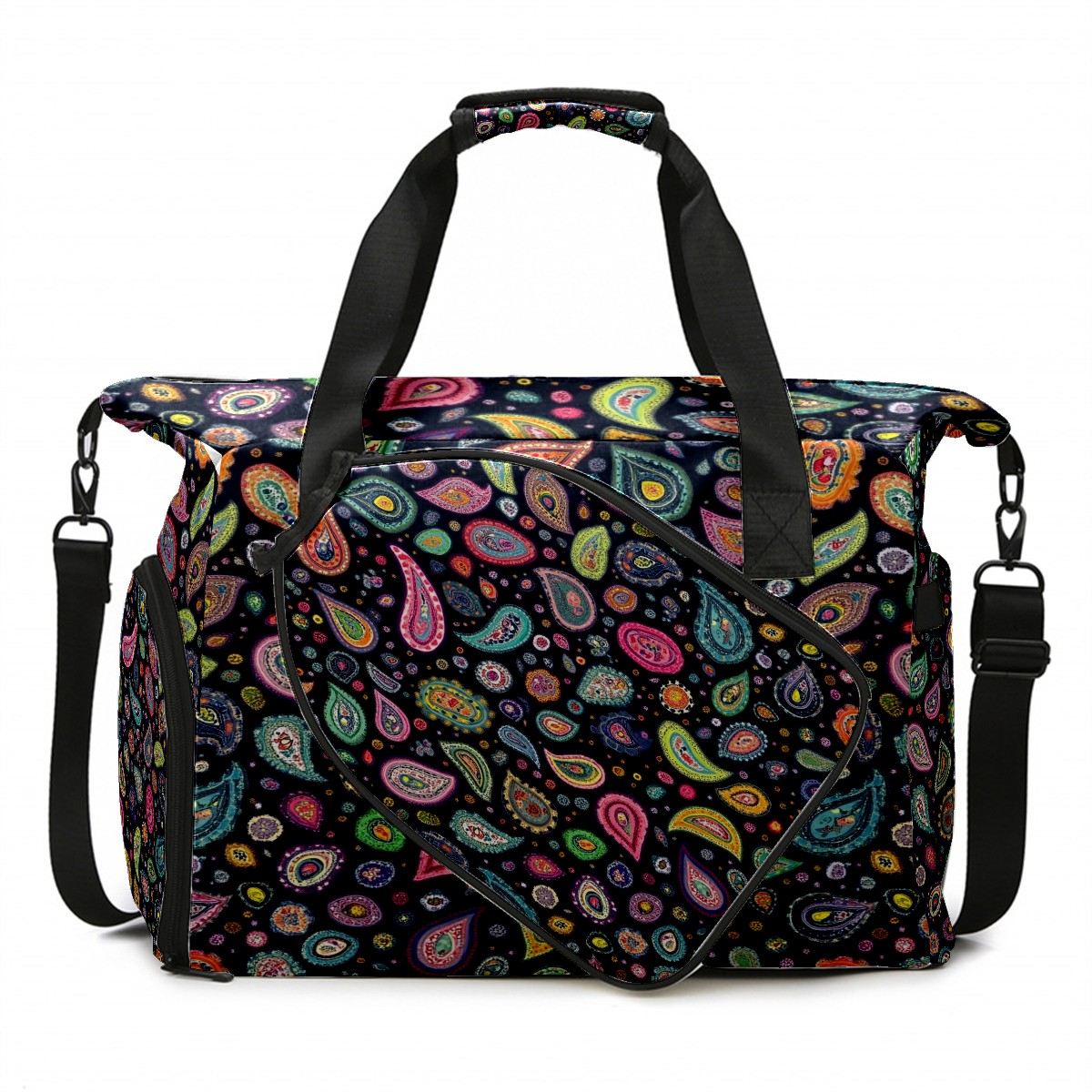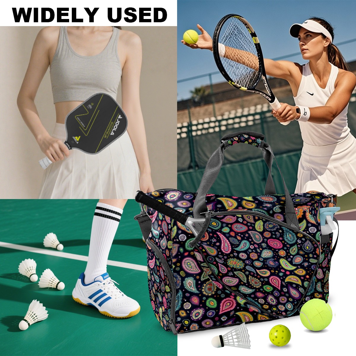 Pickleball Tote Bag Carryall for Paddles Balls and Accessories, Portable Lightweight Gear Bag for Players(Colorful Paisley Designs)