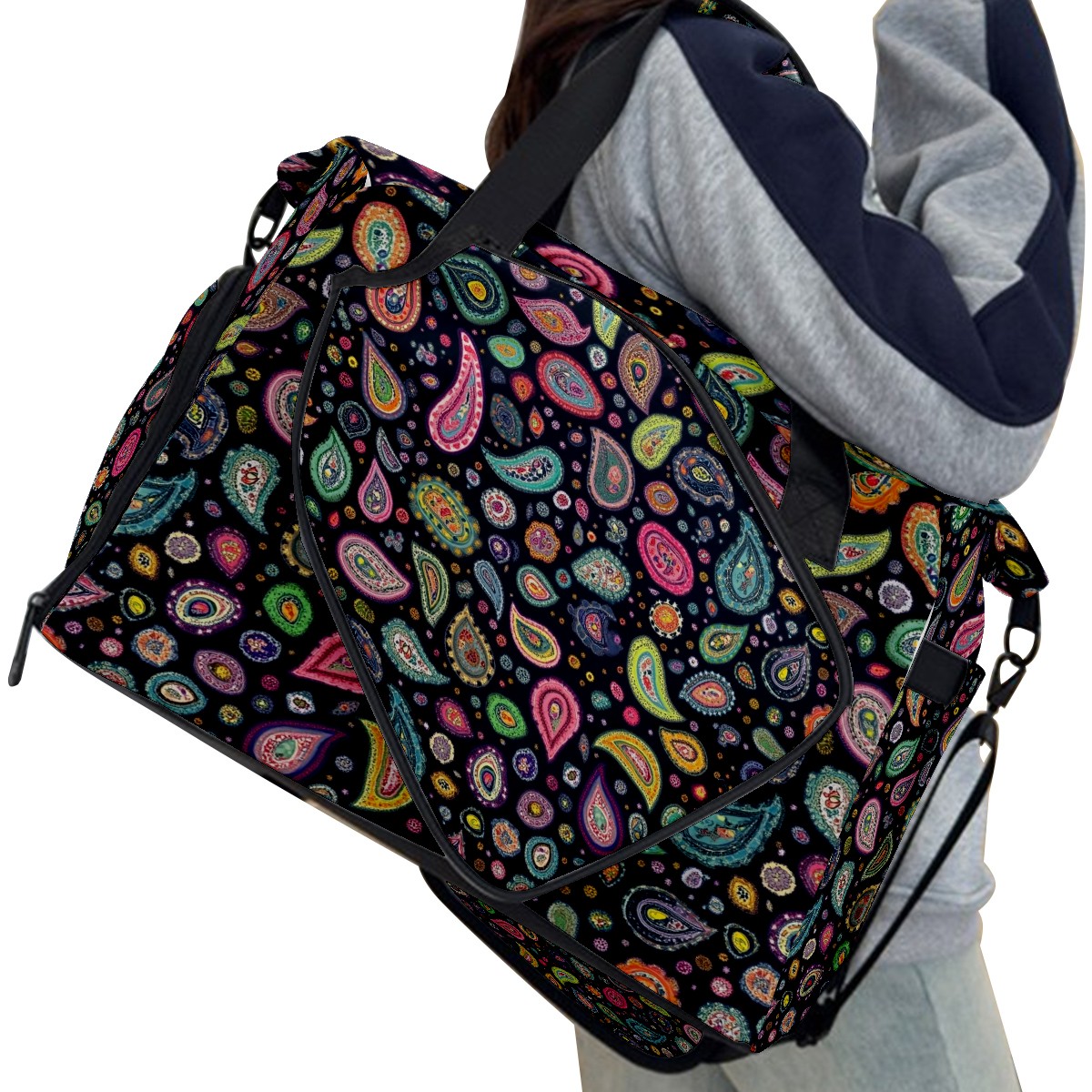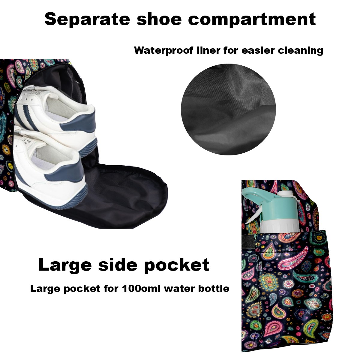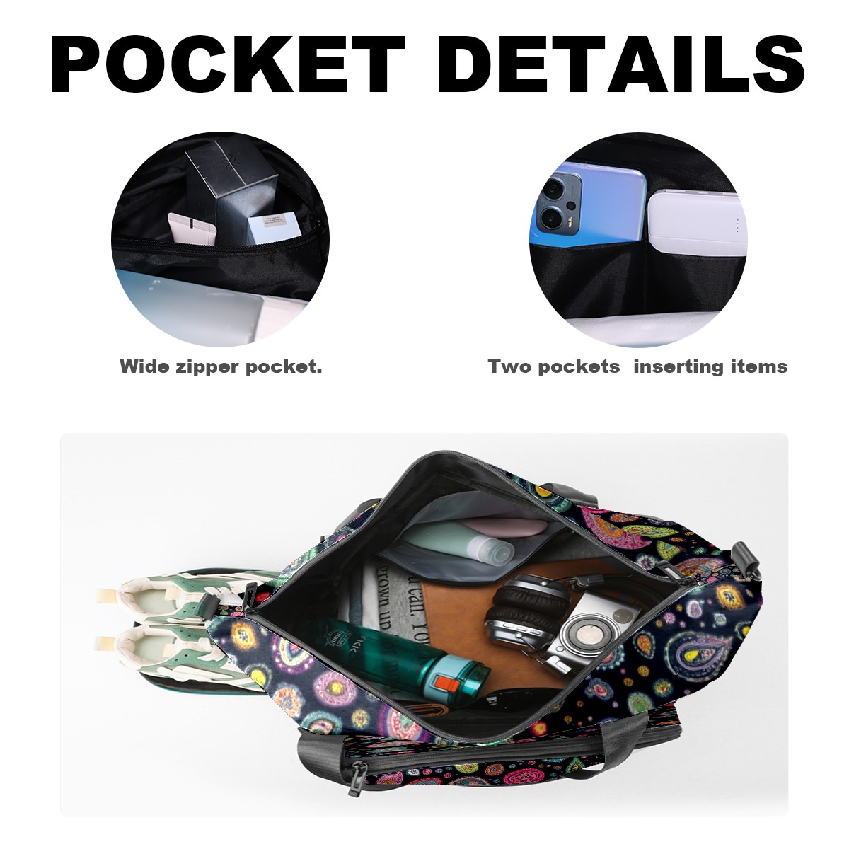 Pickleball Tote Bag Carryall for Paddles Balls and Accessories, Portable Lightweight Gear Bag for Players(Colorful Paisley Designs)