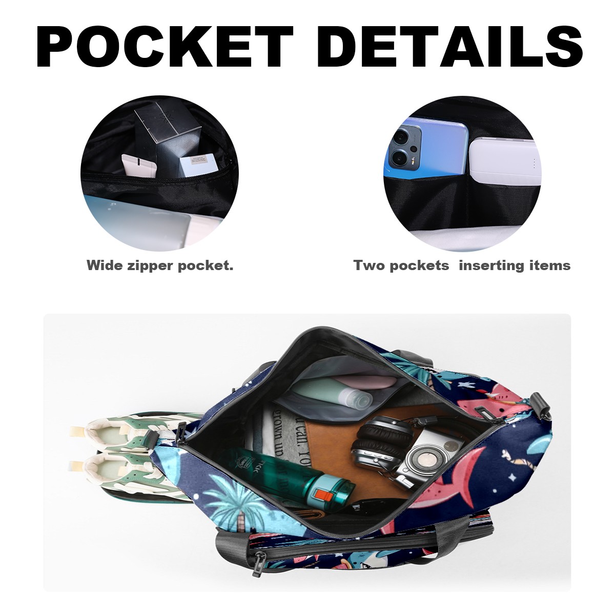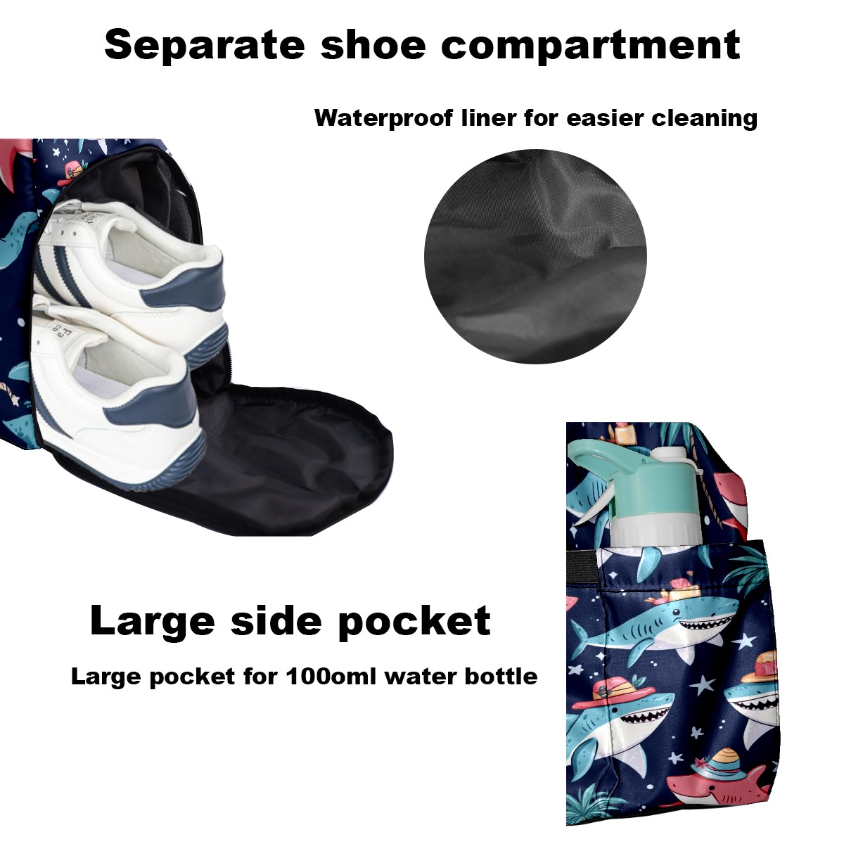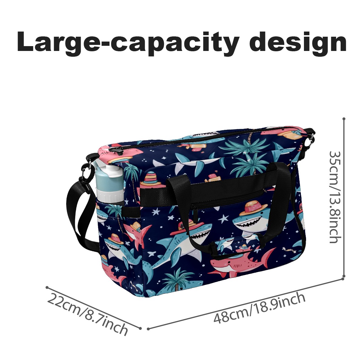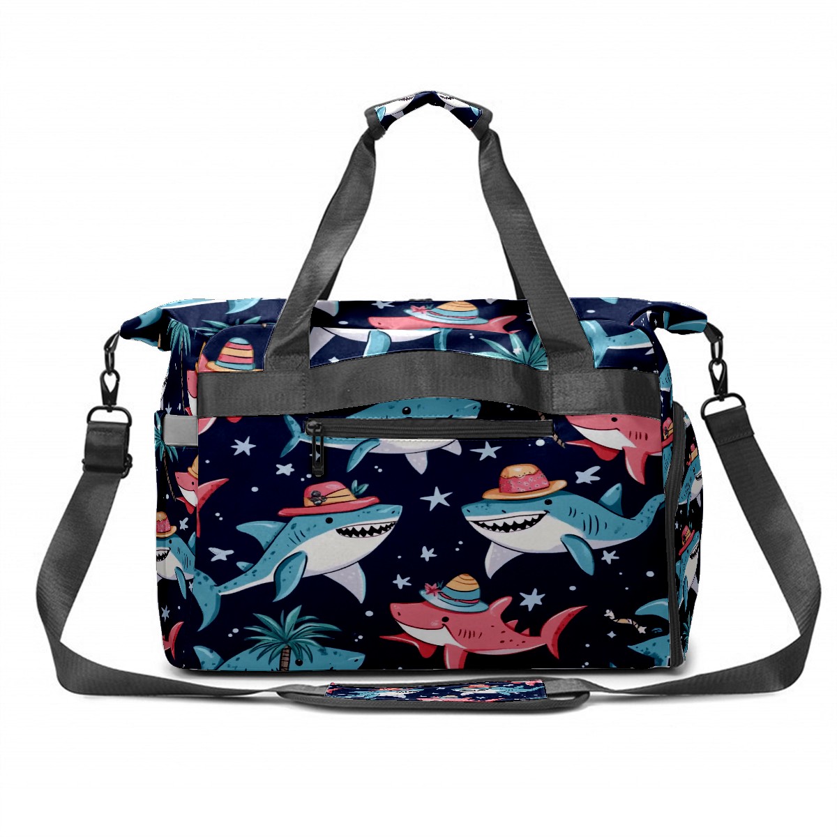 Pickleball Tote Bag Carryall for Paddles Balls and Accessories, Portable Lightweight Gear Bag for Players(Sharks Wearing Hats)