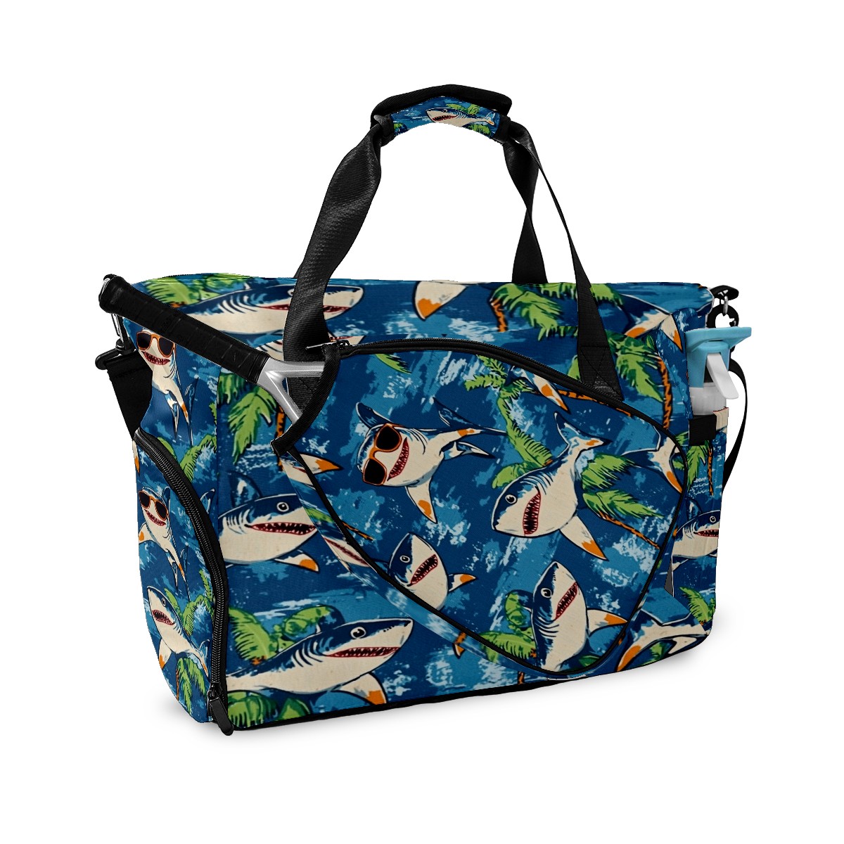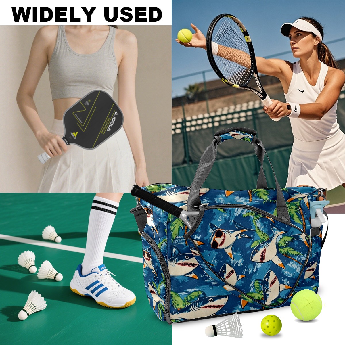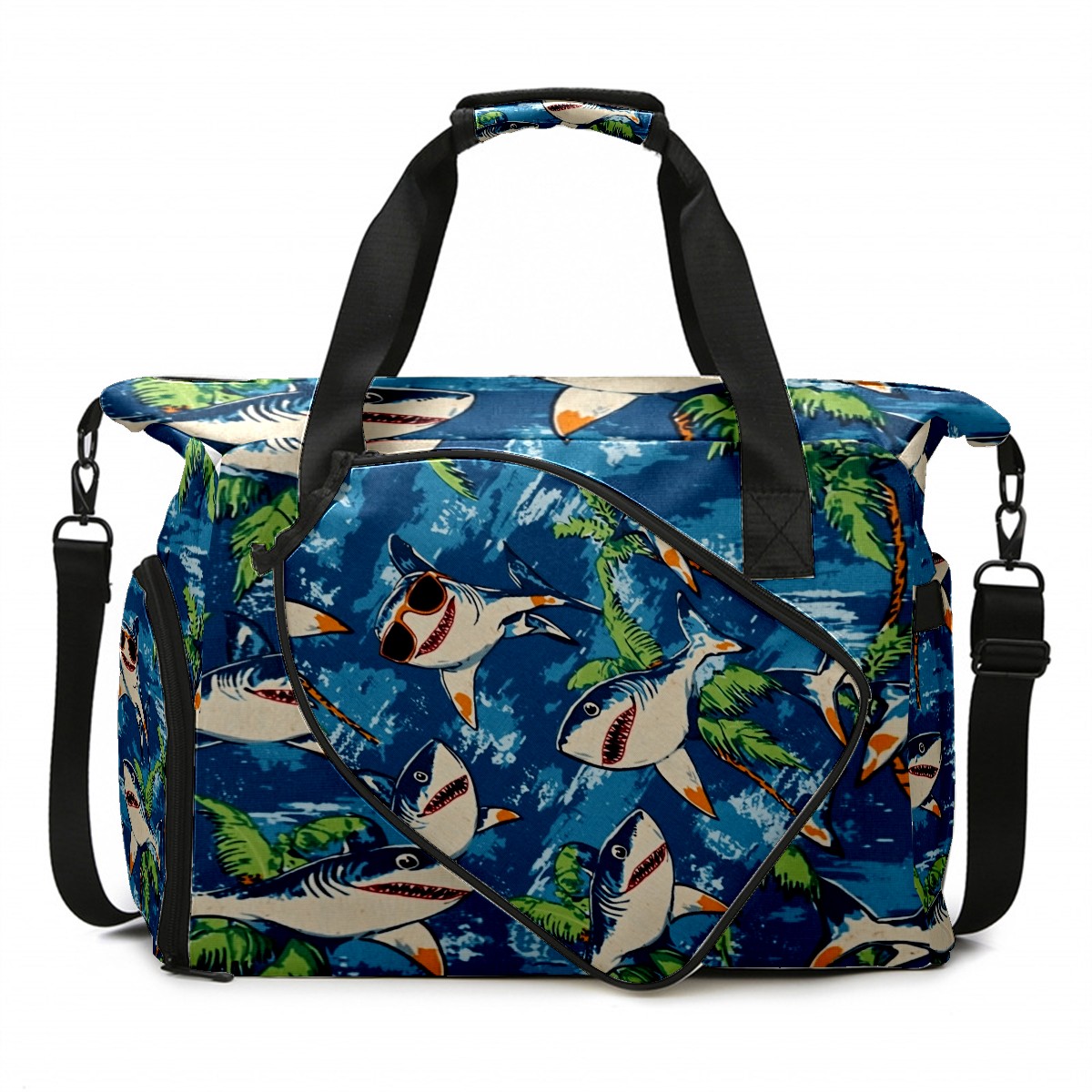 Pickleball Tote Bag Carryall for Paddles Balls and Accessories, Portable Lightweight Gear Bag for Players(Shark Wearing Sunglasses)