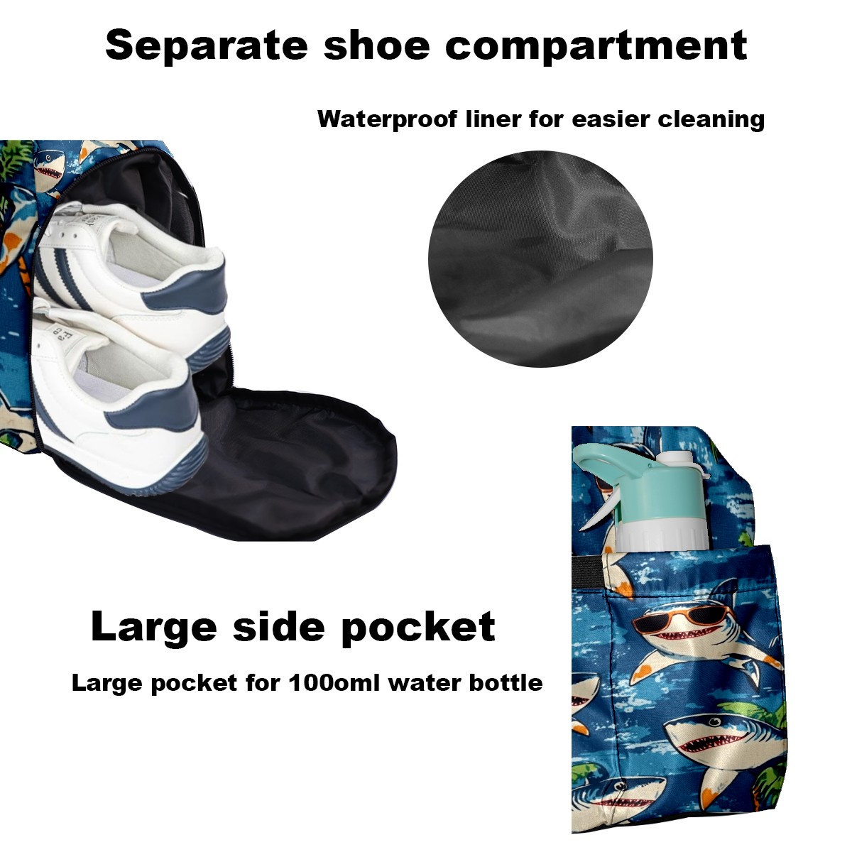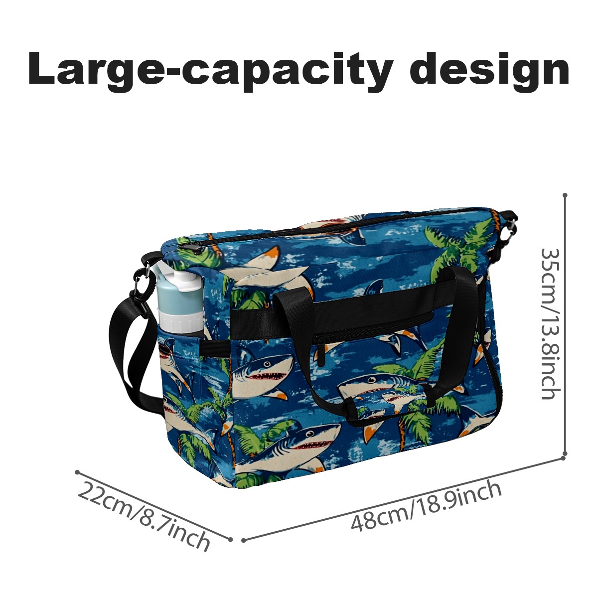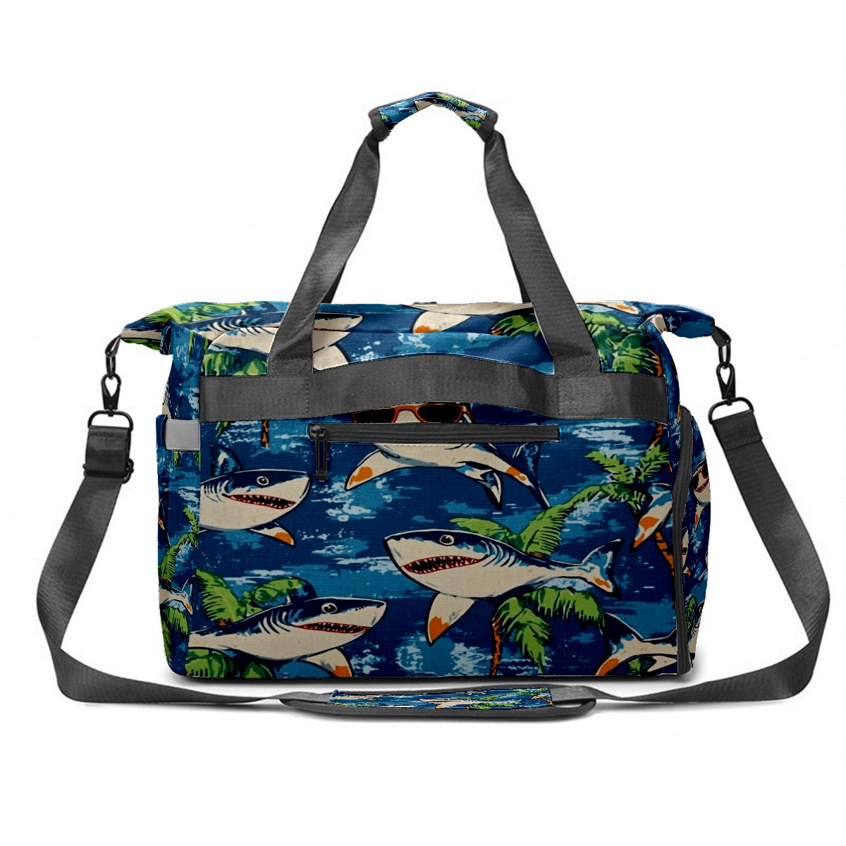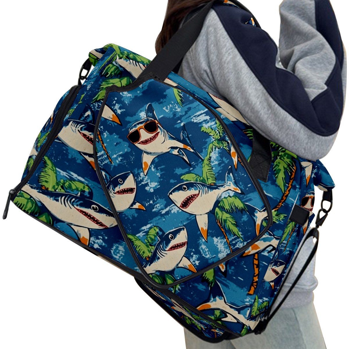 Pickleball Tote Bag Carryall for Paddles Balls and Accessories, Portable Lightweight Gear Bag for Players(Shark Wearing Sunglasses)